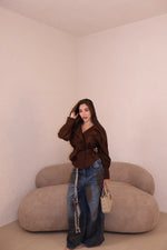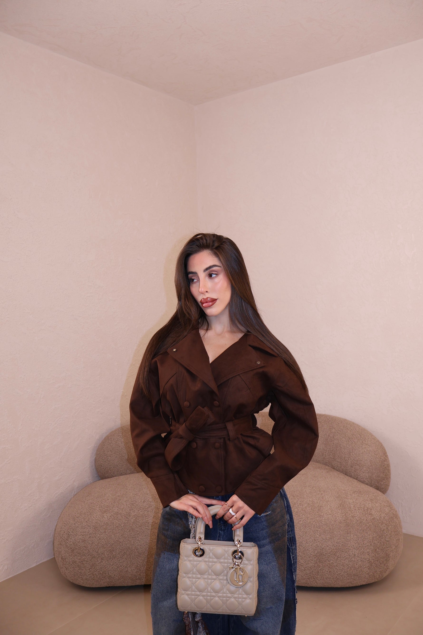 Prezzo unitario / perGiacca in camoscio con doppi bottoni e cintura in vita. Taglia unica.