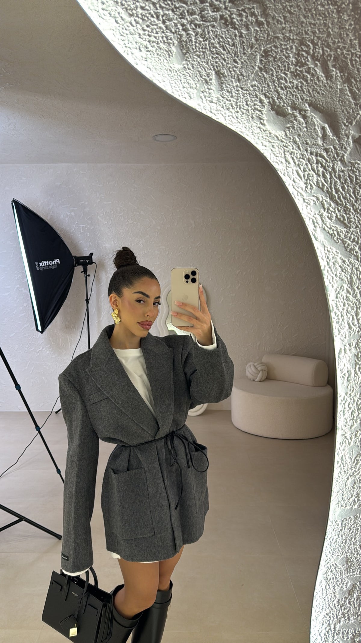 Prezzo unitario / perGiacca over in cashmere con tasconi frontali,spalline imbottite e cintura in vita in ecopelle. Taglia unica.