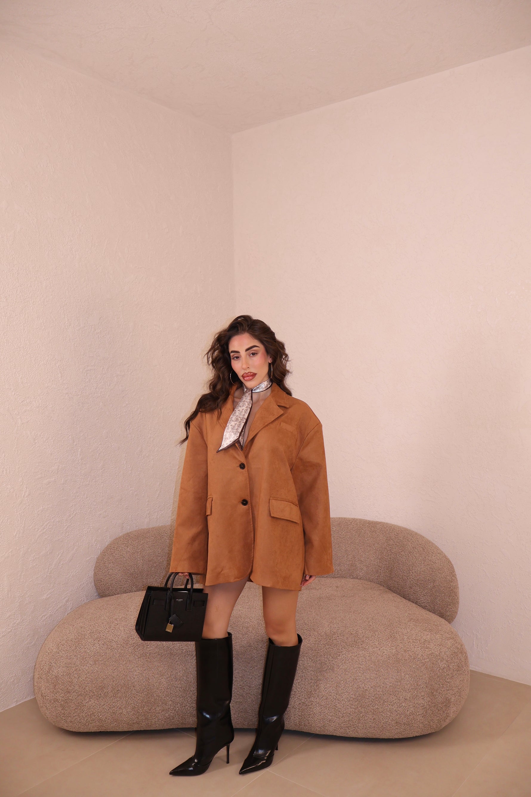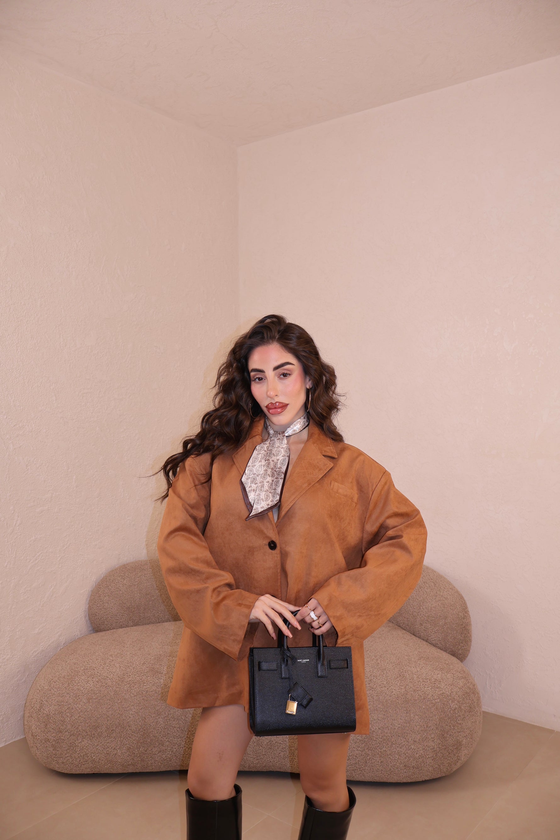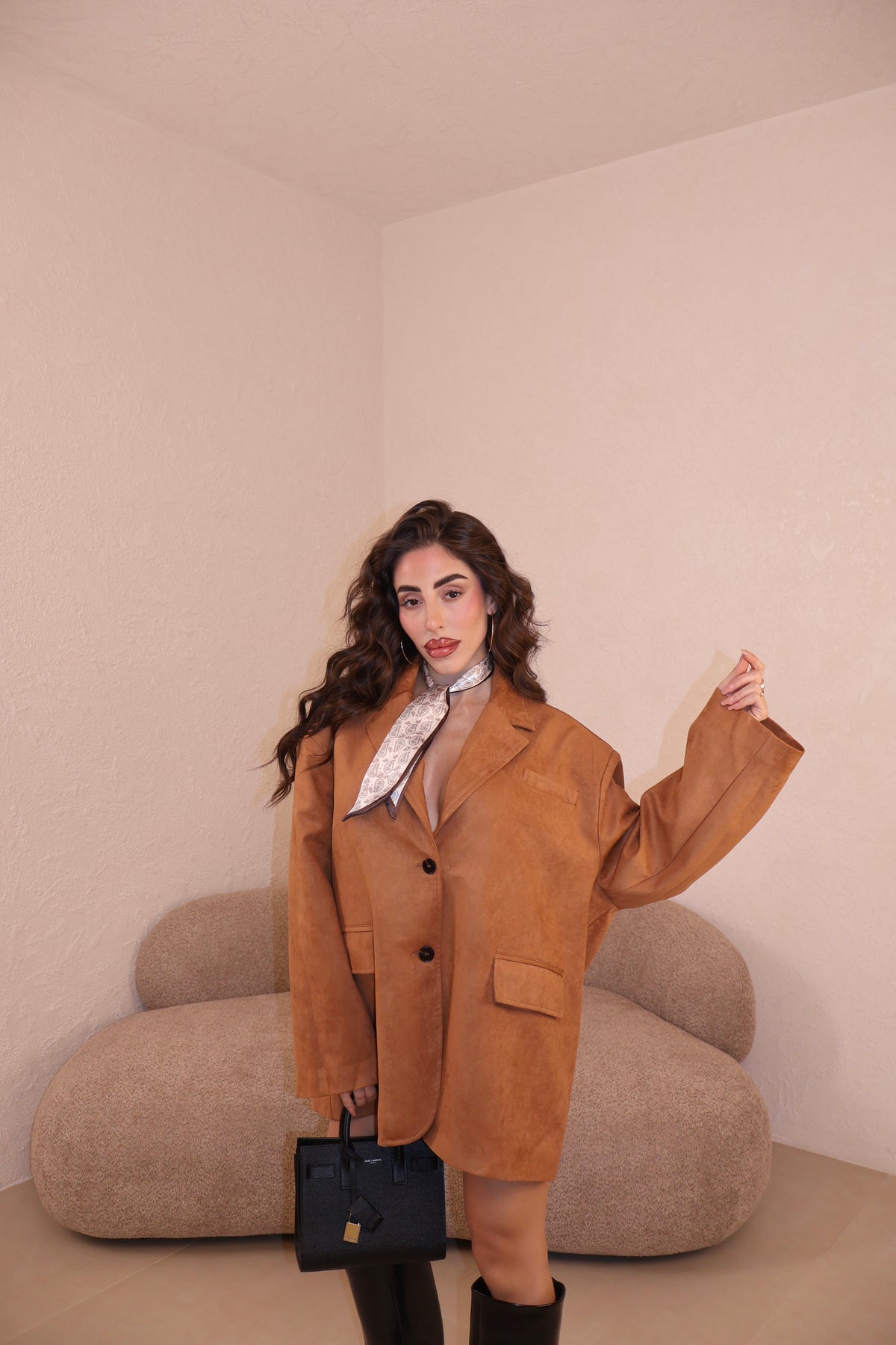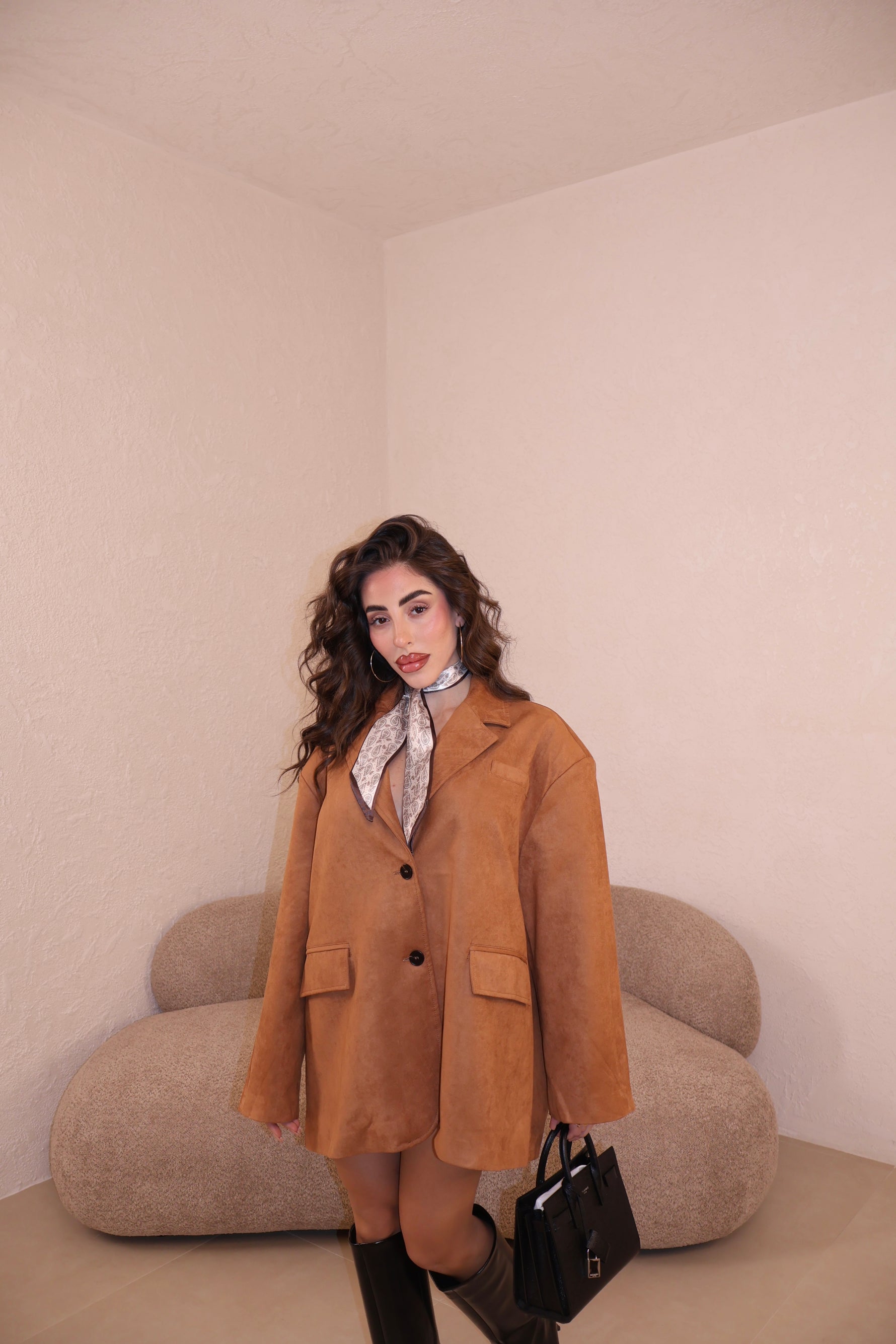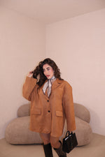Giacca over in camoscio con spalline imbottite e bottoni frontali. Taglia unica.