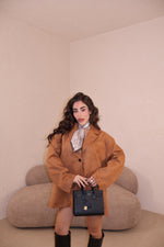 Prezzo unitario / perGiacca over in camoscio con spalline imbottite e bottoni frontali. Taglia unica.