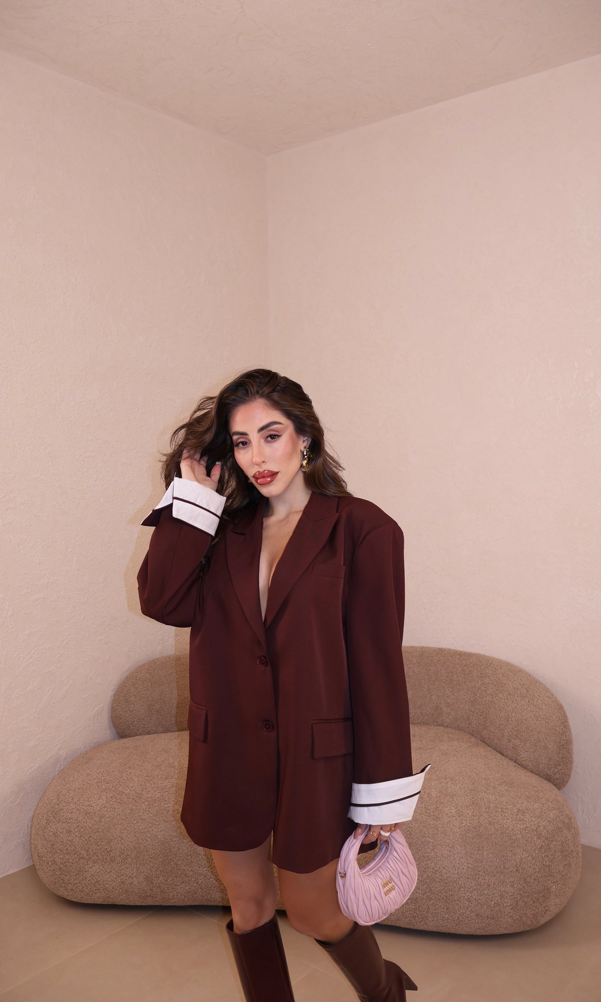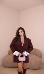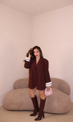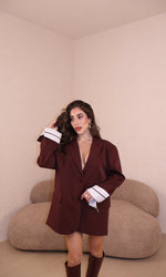Giacca modello over con dettagli risvolti alle maniche. Taglia unica.