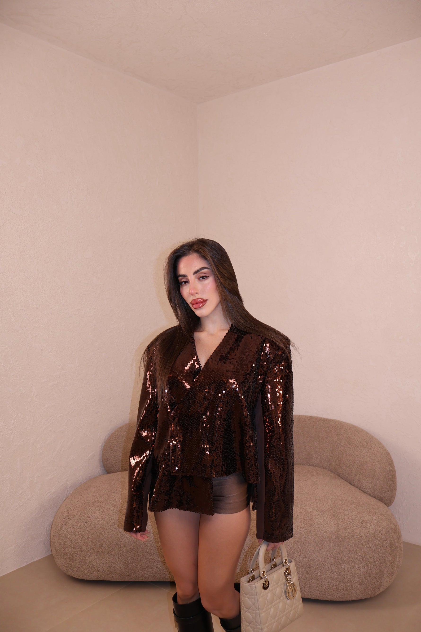 Giacca over in paillettes con doppi bottoni interni. Taglia unica.