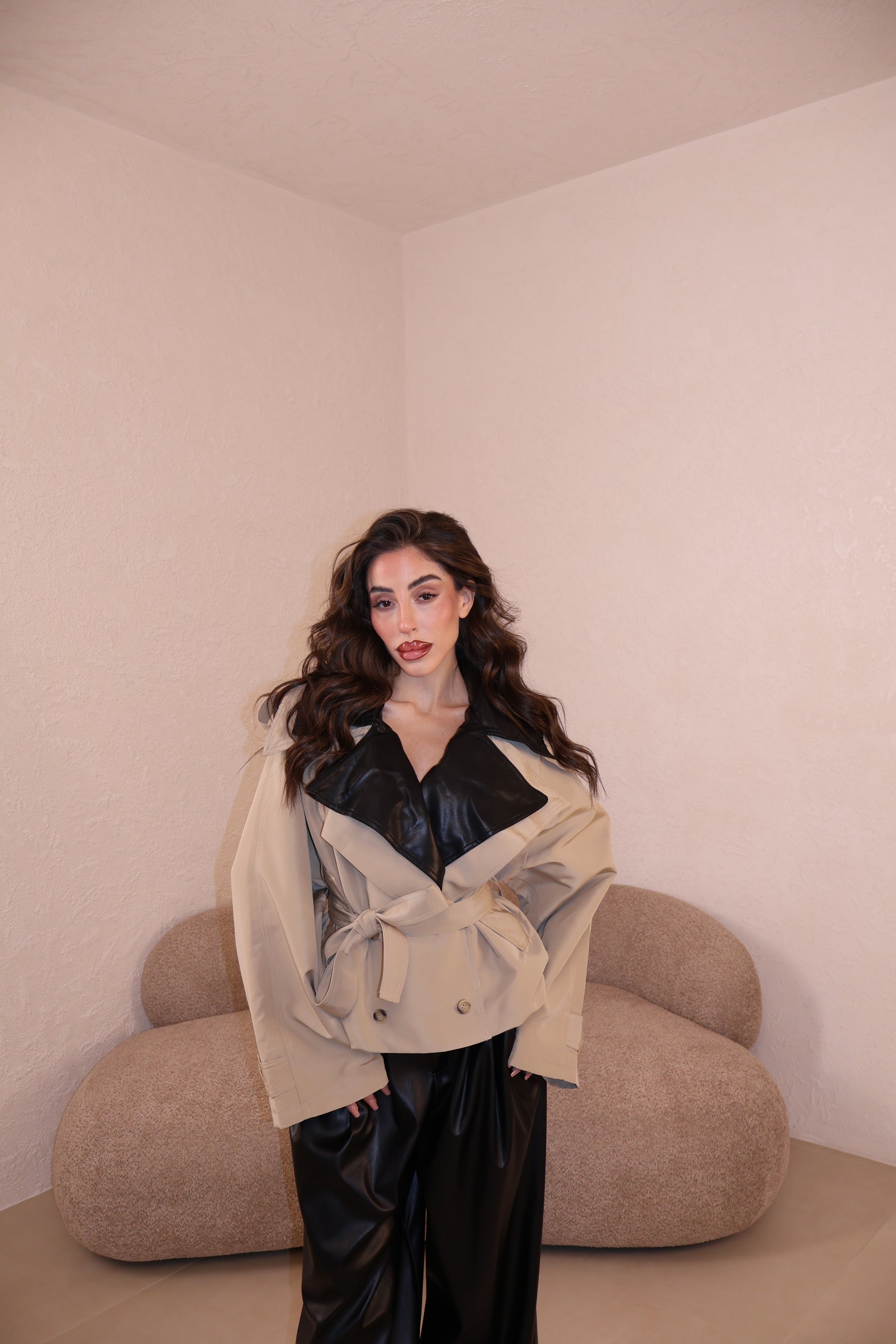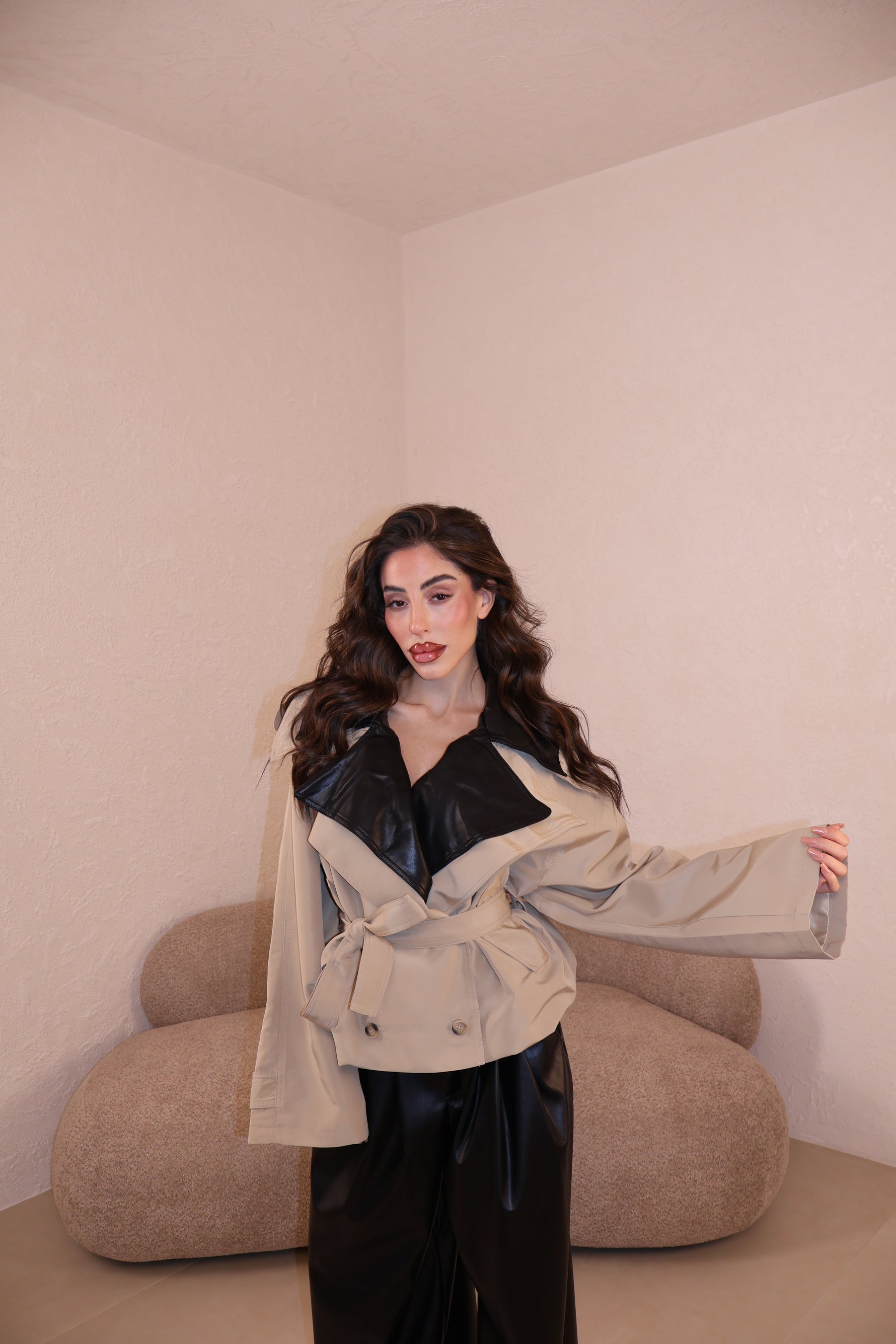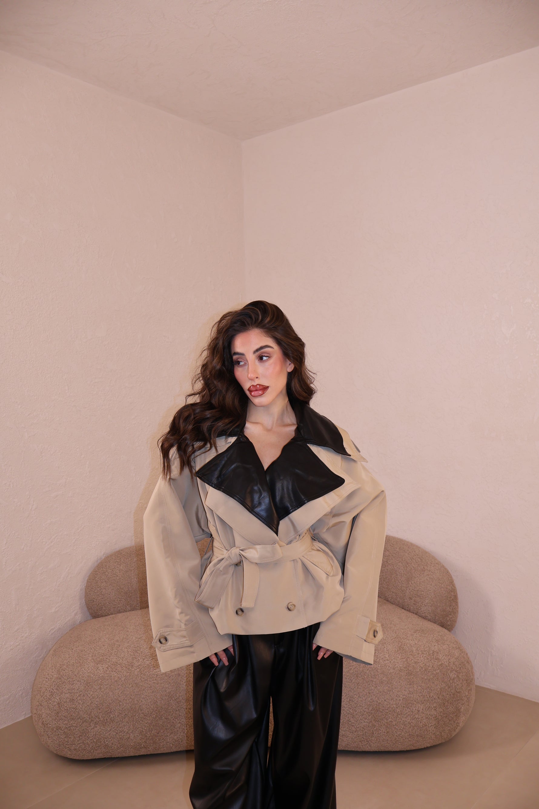 Prezzo unitario / perTrench over in tessuto con collo in similpelle e cintura in vita. Taglia unica.