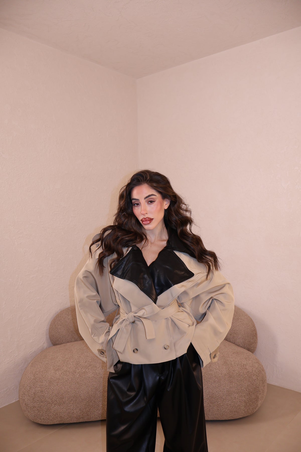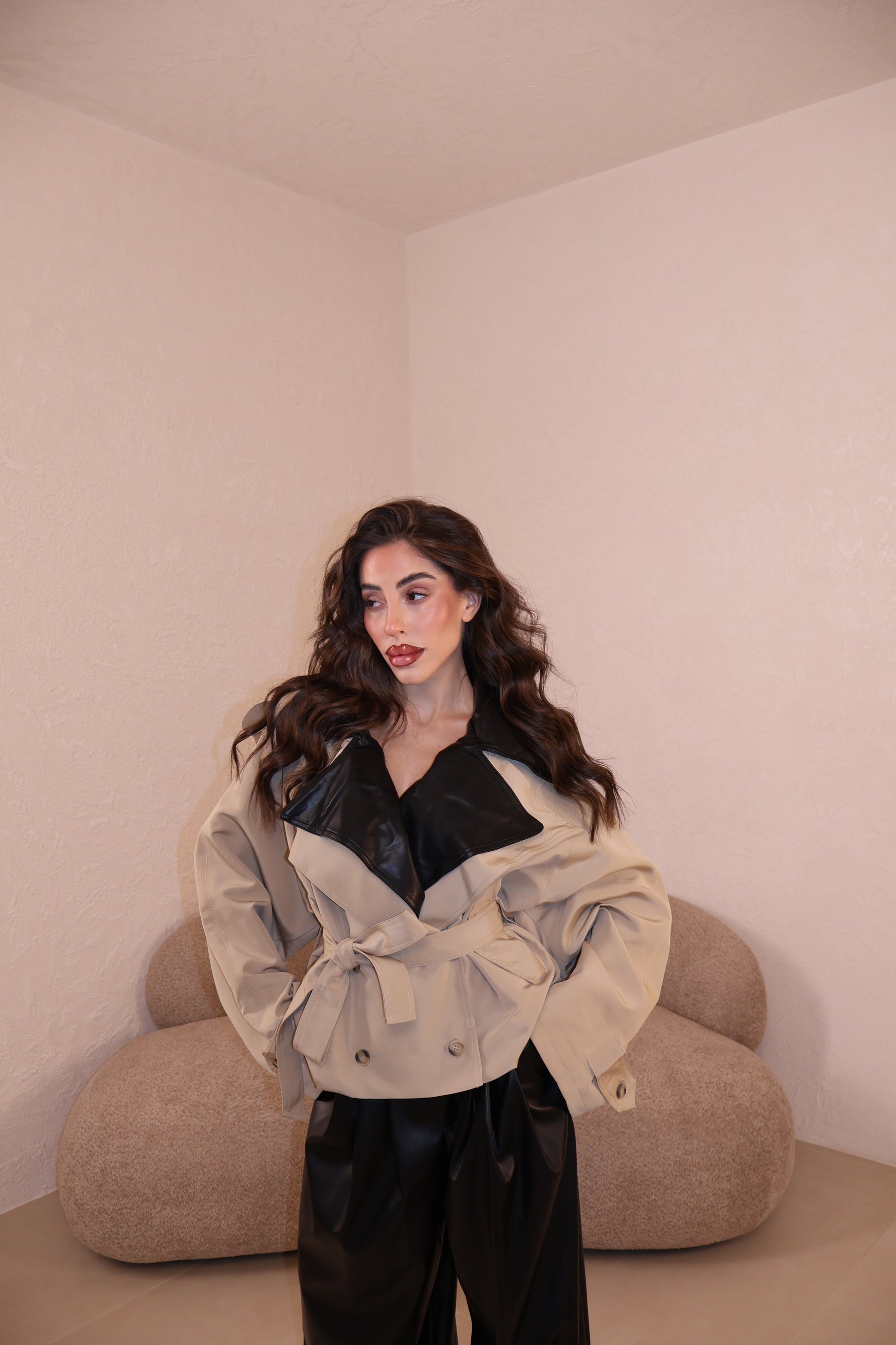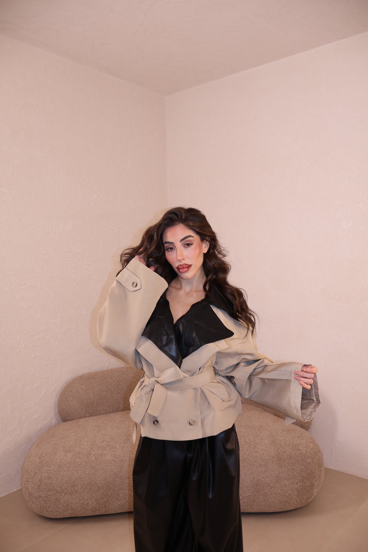 Prezzo unitario / perTrench over in tessuto con collo in similpelle e cintura in vita. Taglia unica.