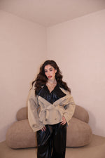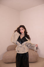 La giacca veste leggermente over ma con la cinta stretta in vita, è perfetta.