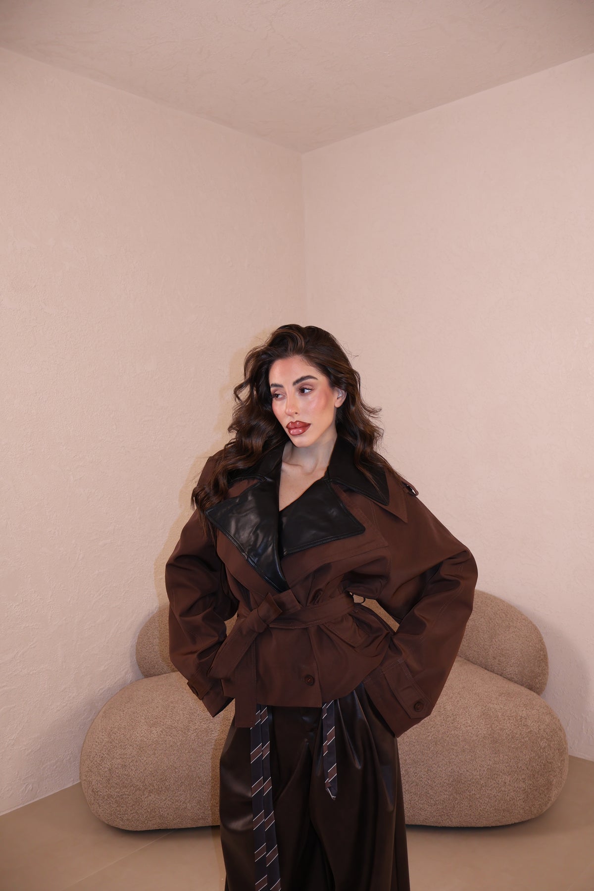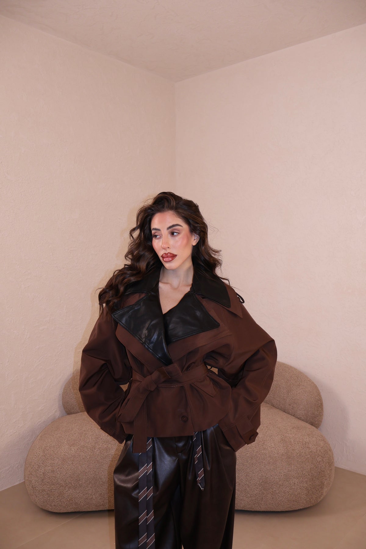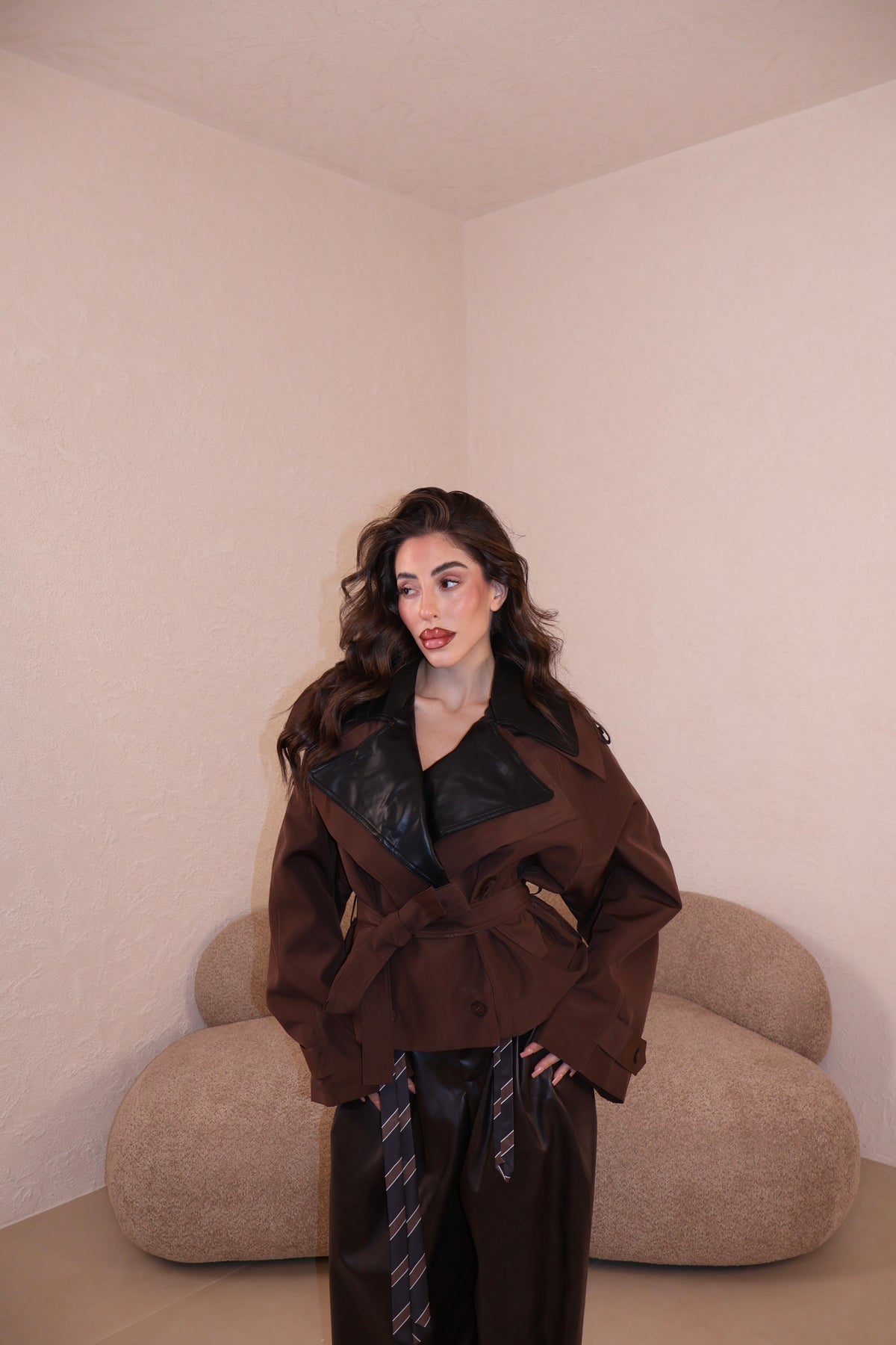 Prezzo unitario / perTrench over in tessuto con collo in similpelle e cintura in vita. Taglia unica.