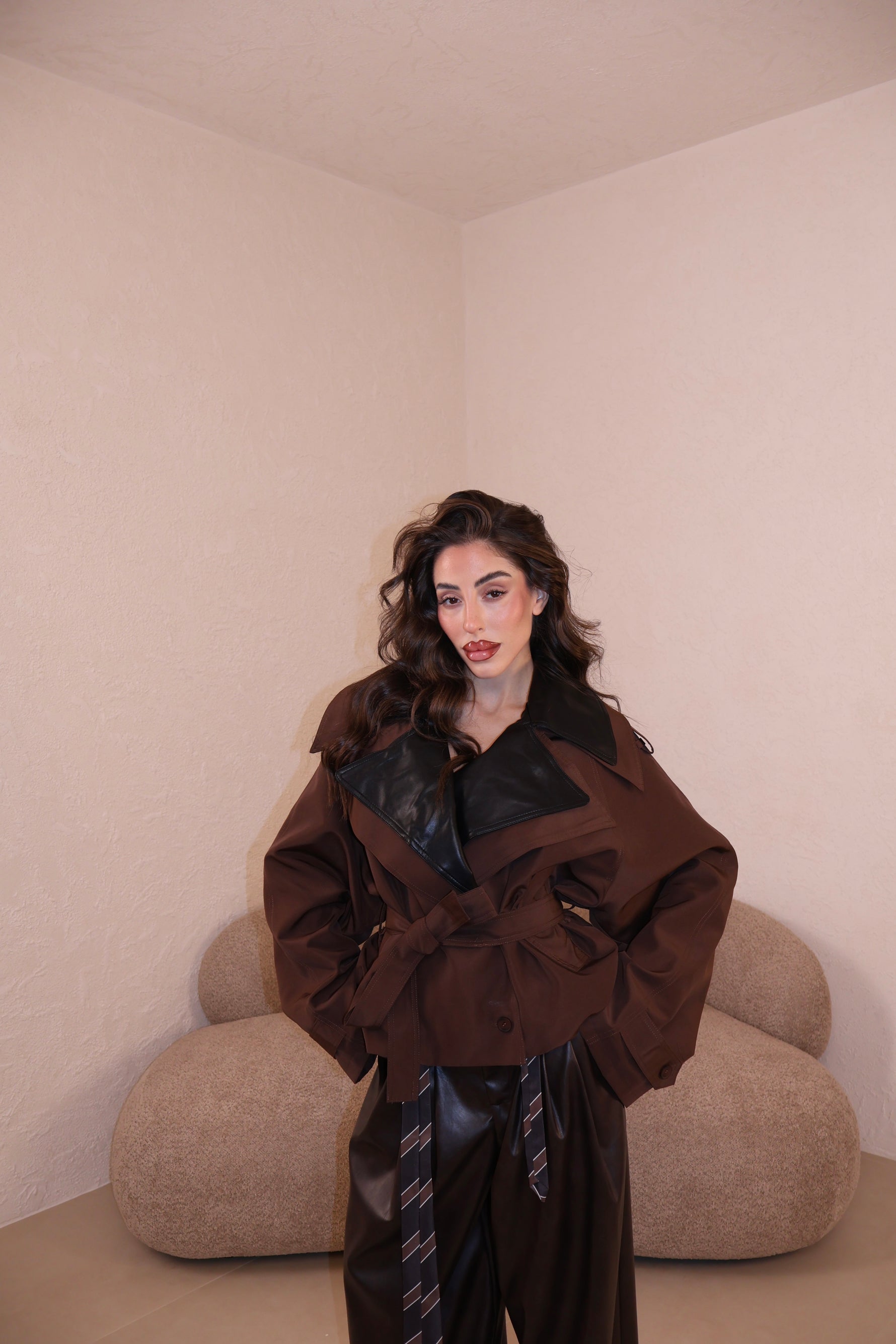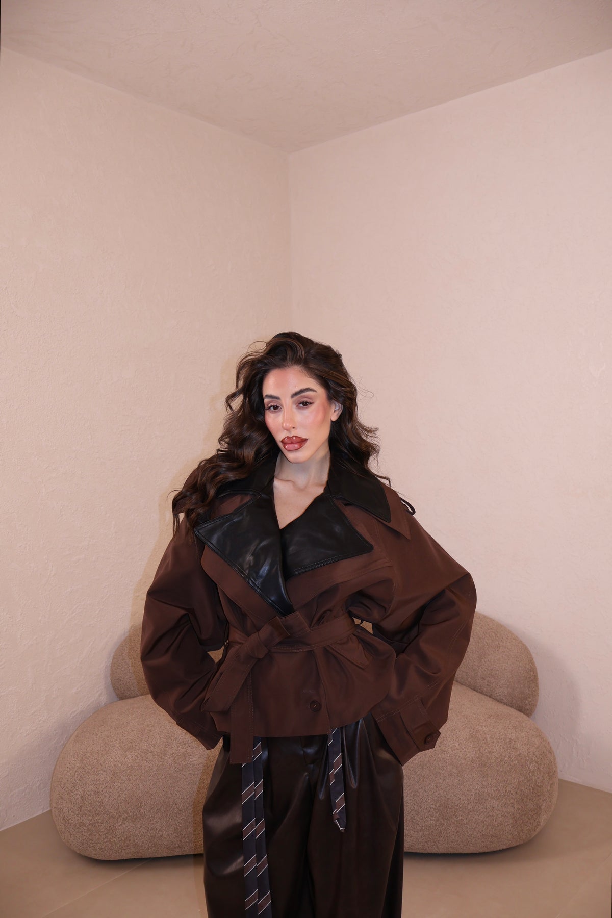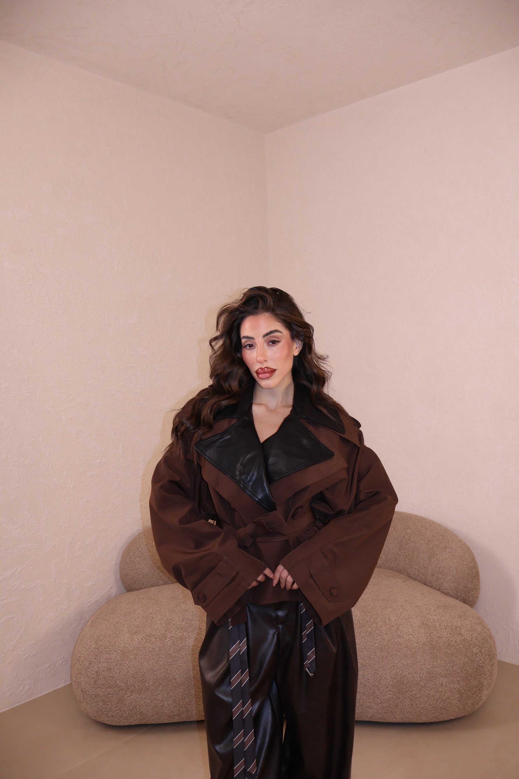 Prezzo unitario / perTrench over in tessuto con collo in similpelle e cintura in vita. Taglia unica.