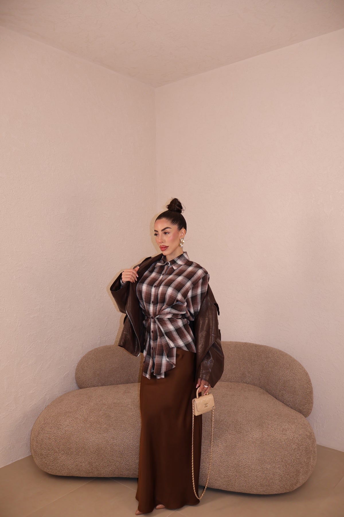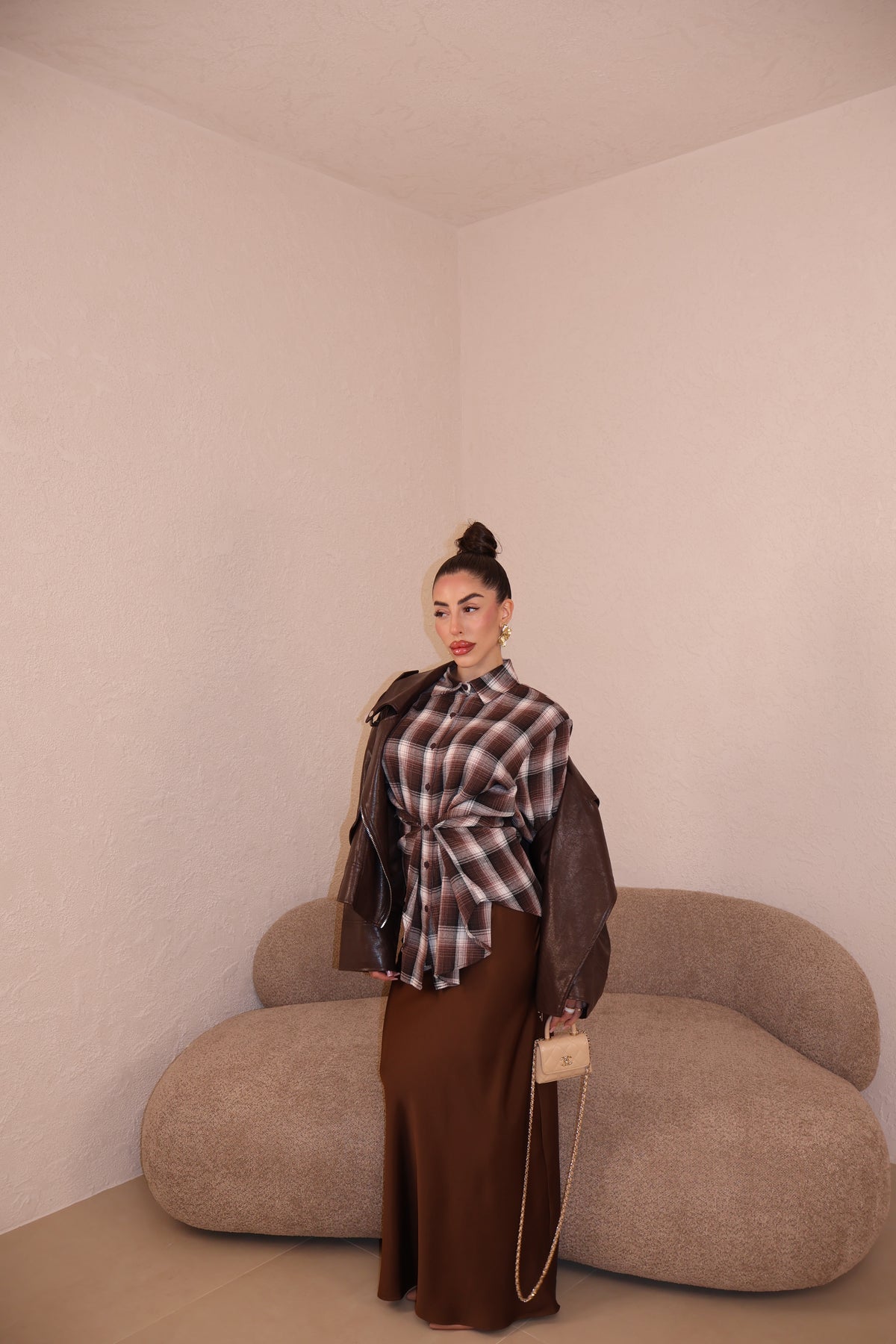 La giacca veste leggermente over ma con la cinta stretta in vita, è perfetta.