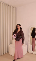 Prezzo unitario / perGonna lunga in raso con elastico in vita. La modella indossa taglia S/M