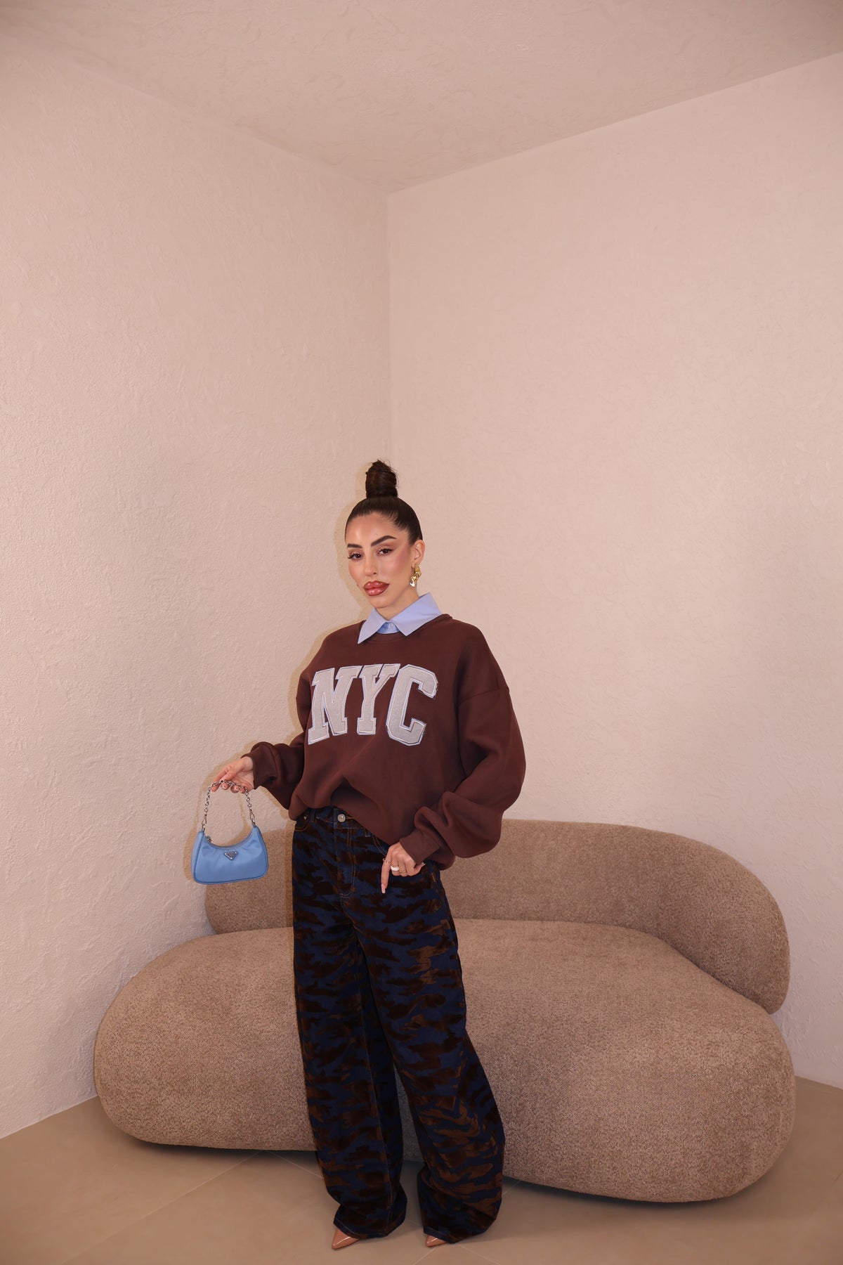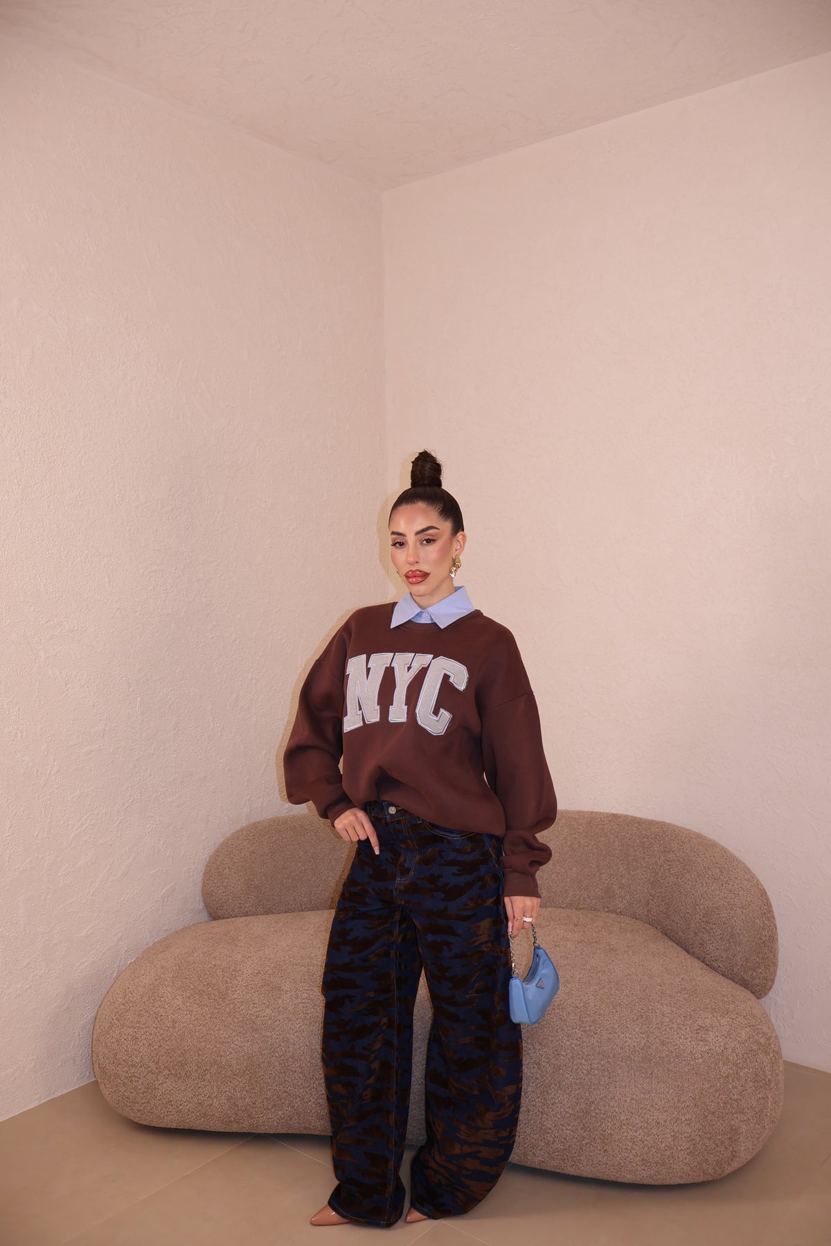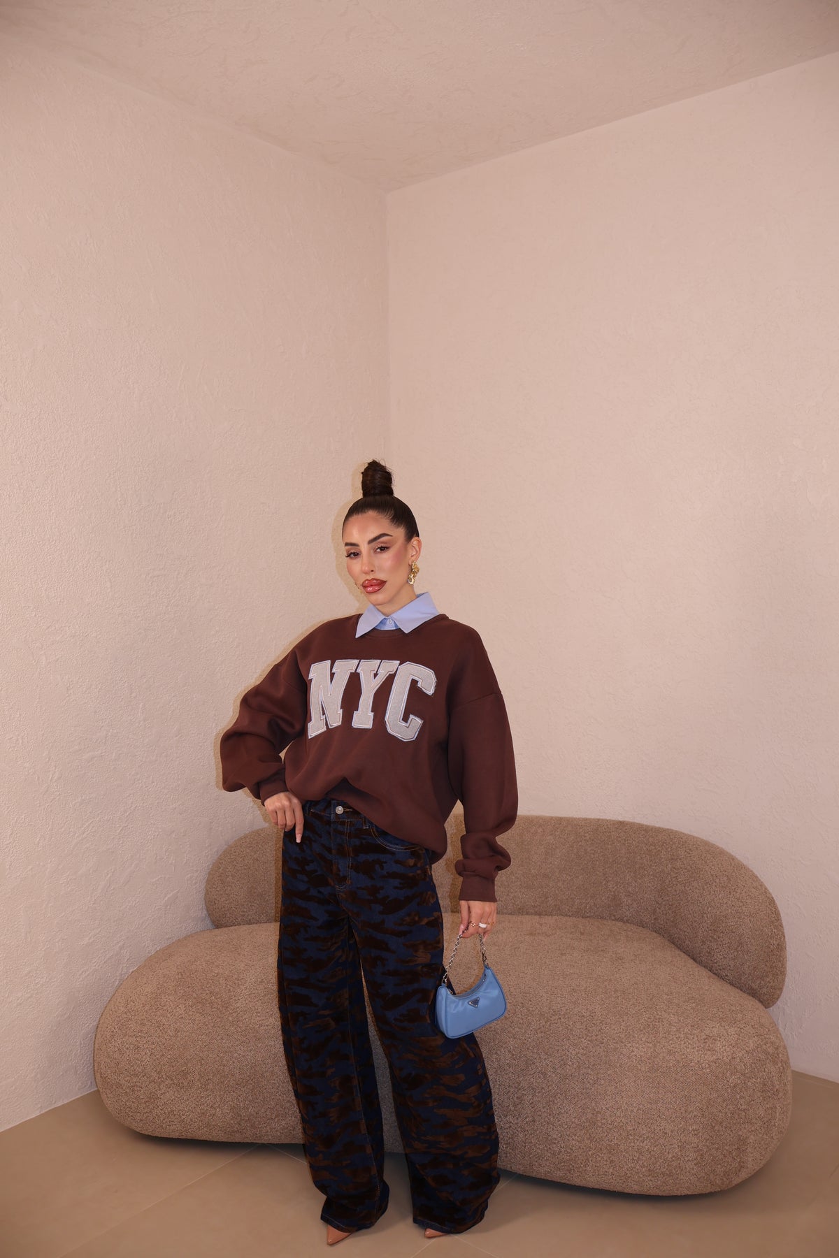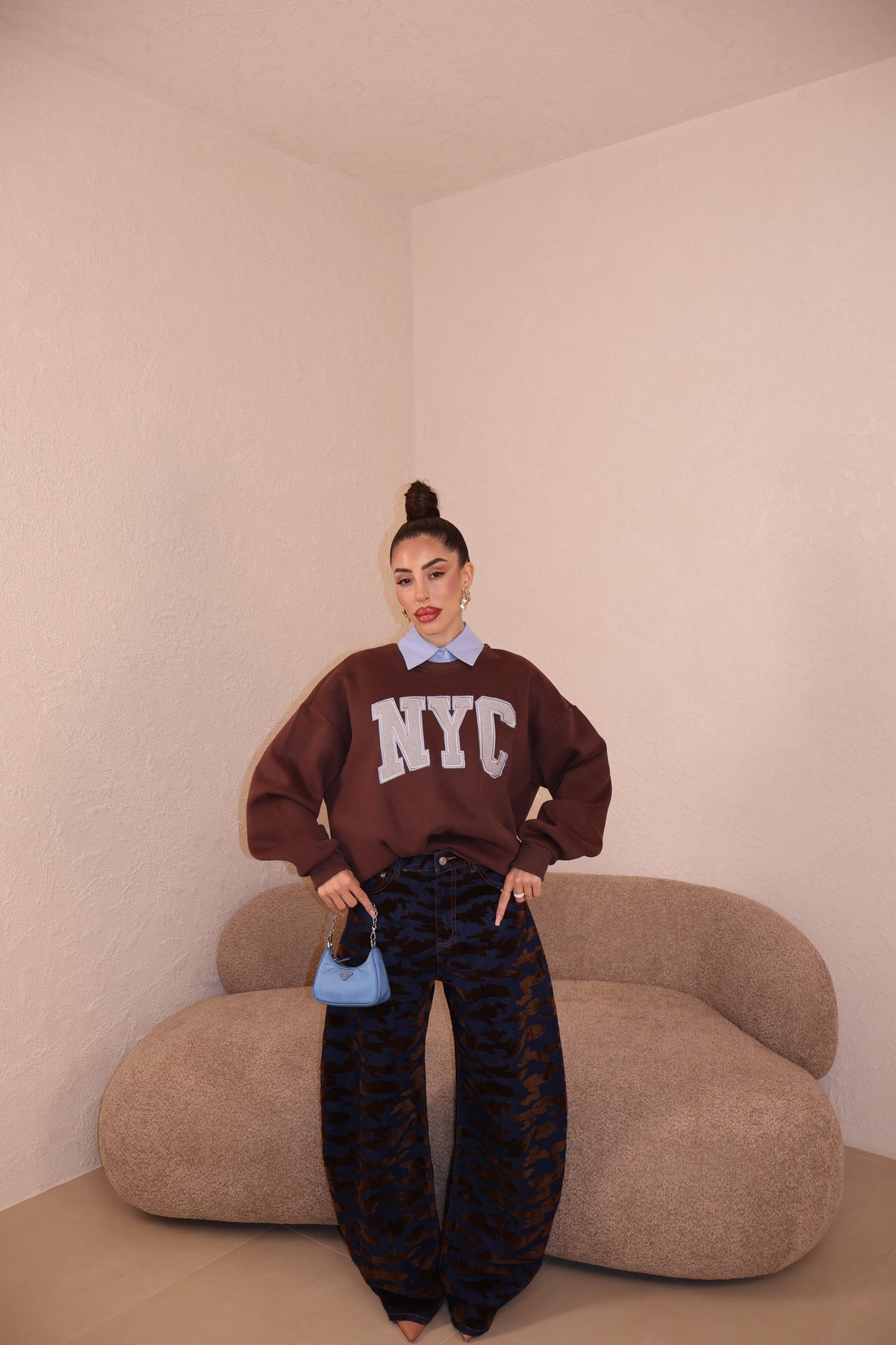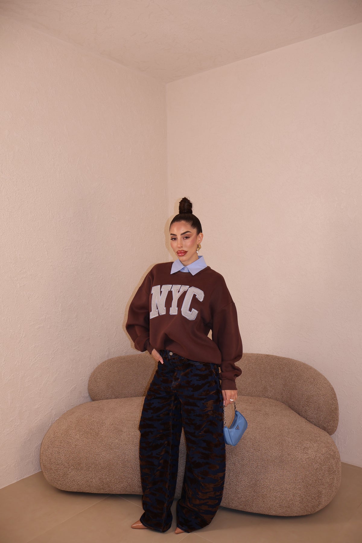 Jeans modello balloon con sfumature in ciniglia a contrasto. Vestiilità regolare. La modella indossa taglia S.