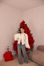 Jeans vita media felpati all'interno gamba larga. Vestibilità regolare. La modella indossa taglia XS.