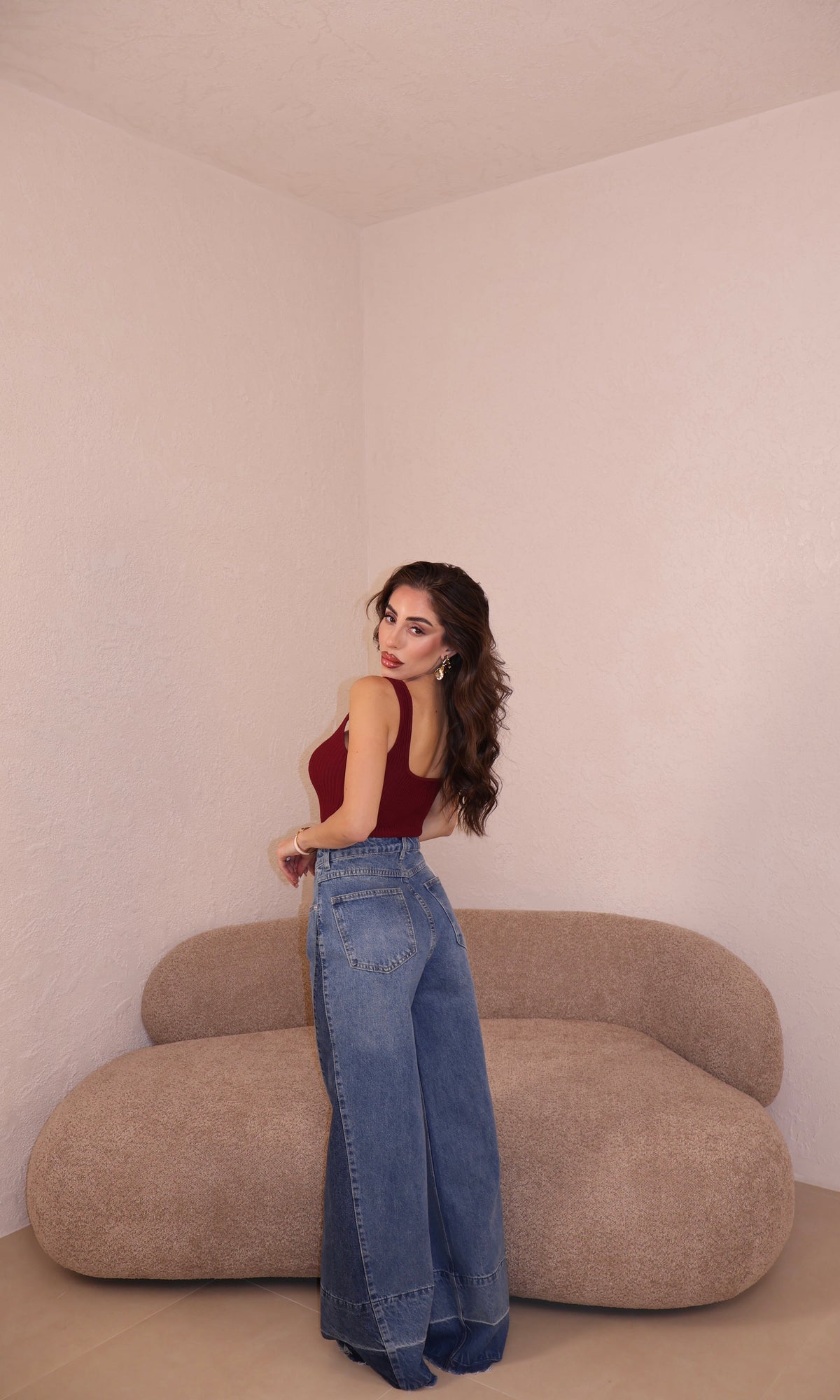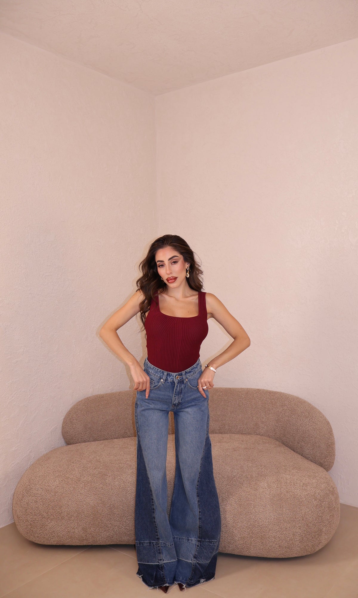 Il pantalone a palazzo ha passanti, l’elastico e piccoli spacchi lateralmente. Veste morbido/ leggermente largo. Con i tacchi è pazzesco. Grazie di tutto.❤️