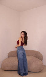 Prezzo unitario / perJeans vita alta con sfumature blu a contrasto. Vestibilità regolare.