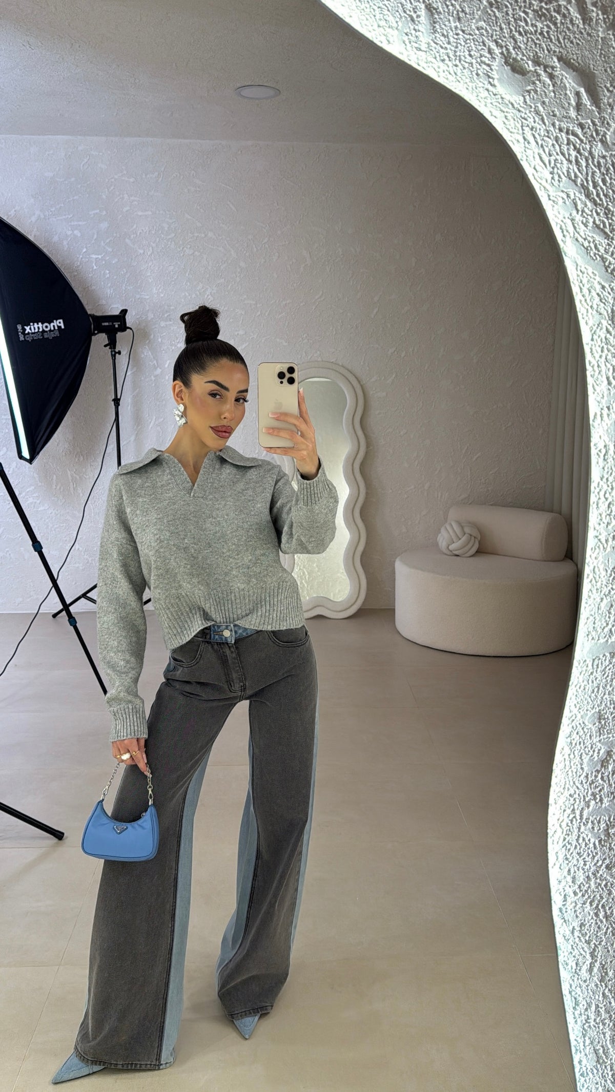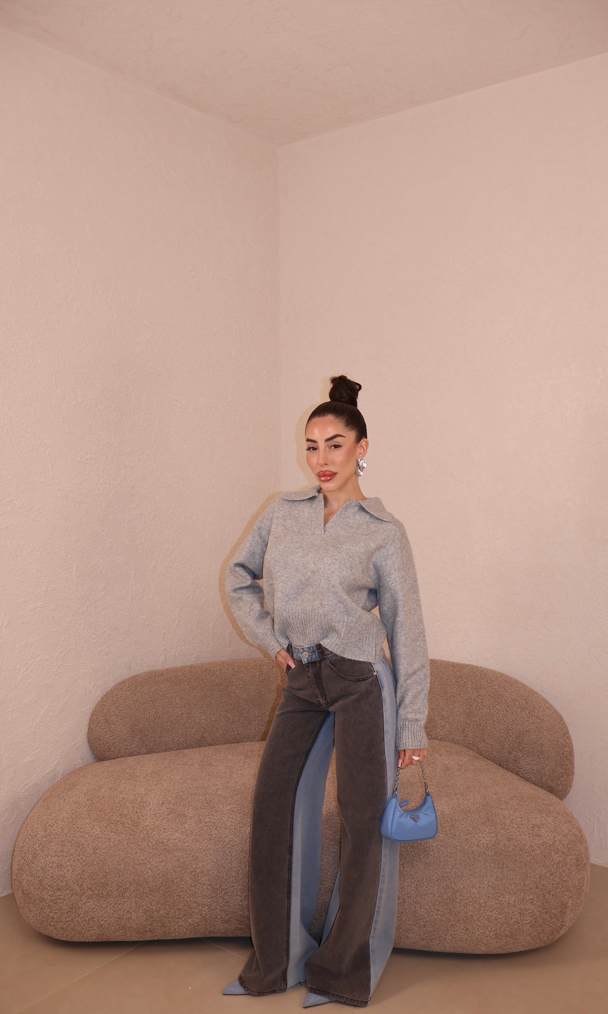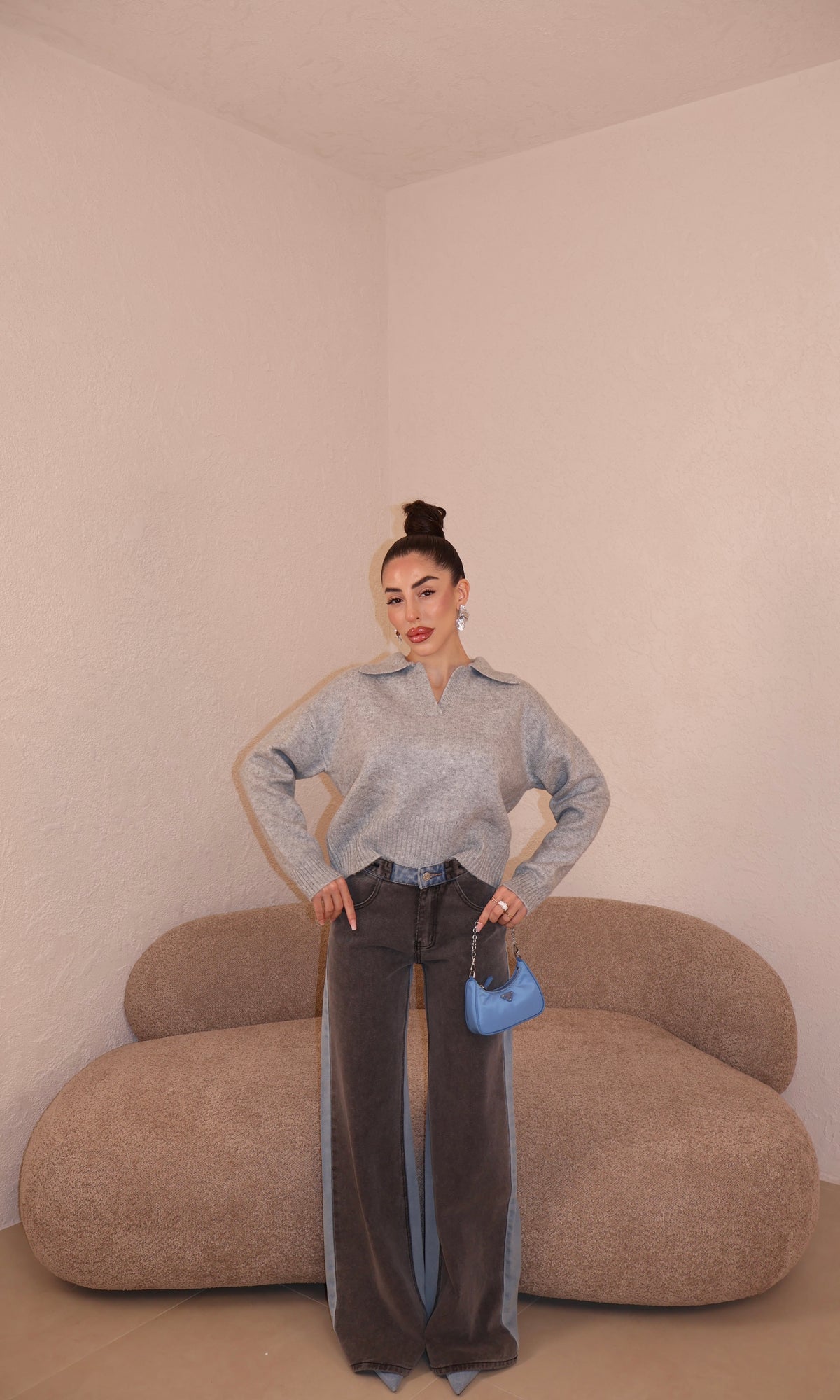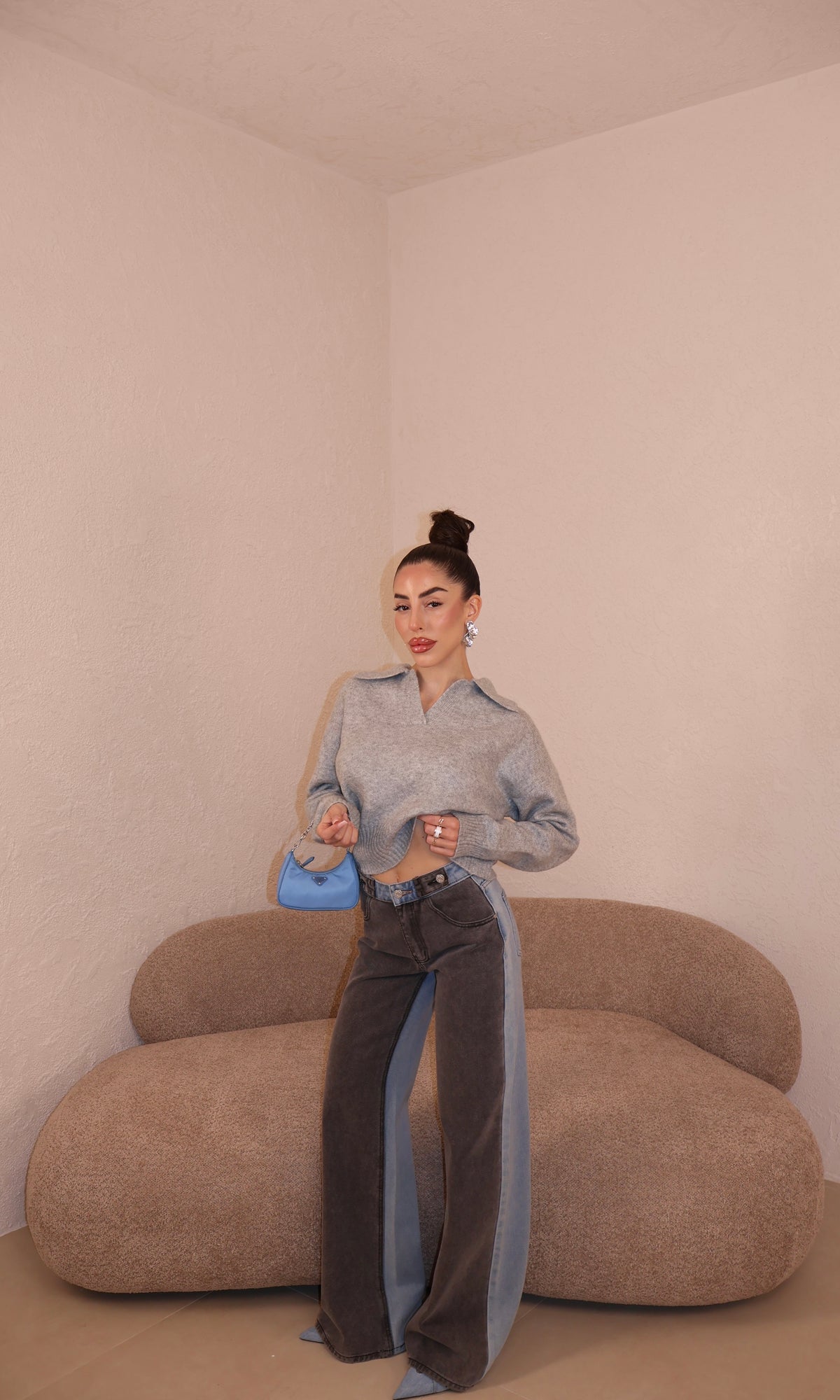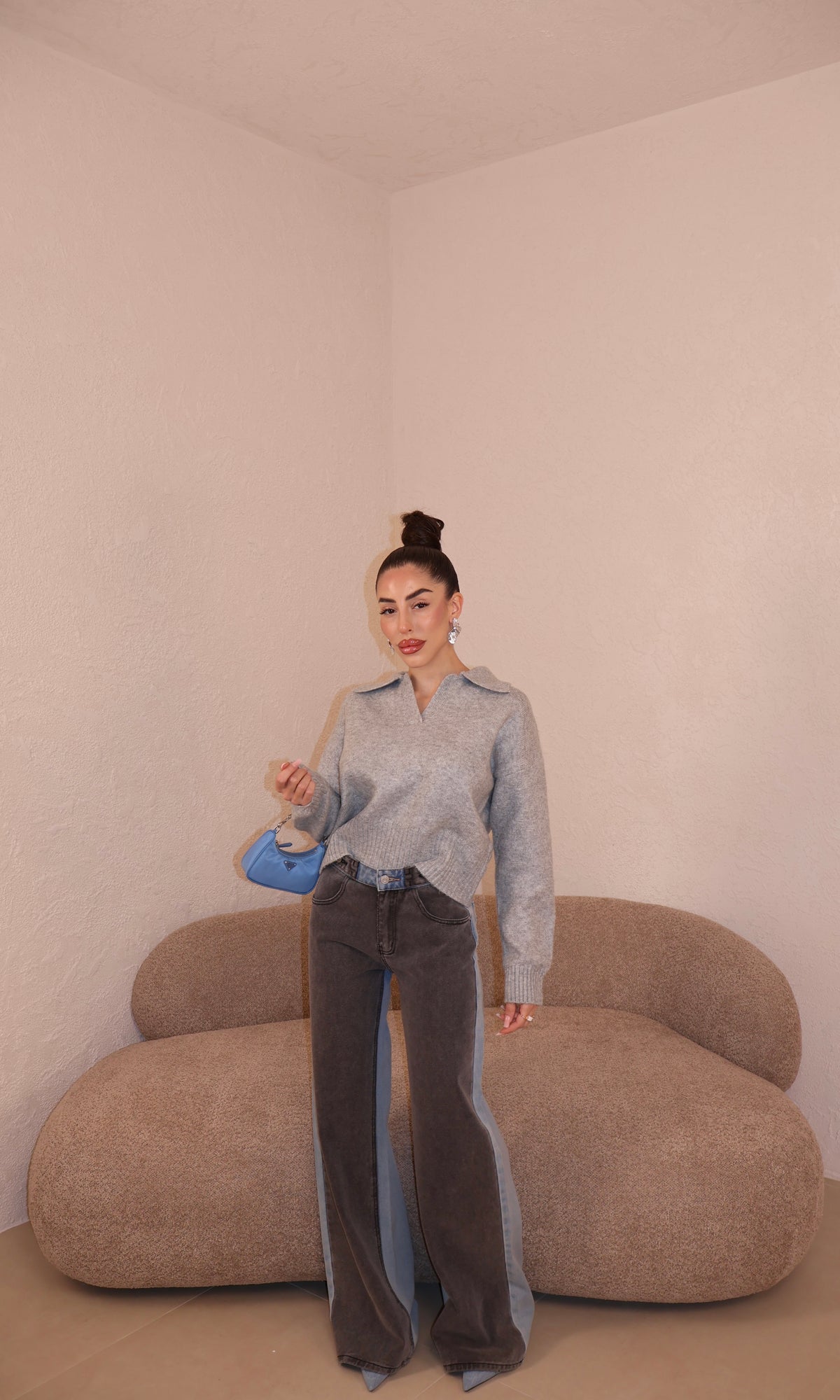 Prezzo unitario / perJeans vita alta gamba dritta con effetto denim chiaro sul retro. Doppi bottoni frontali. Vestibilità regolare.