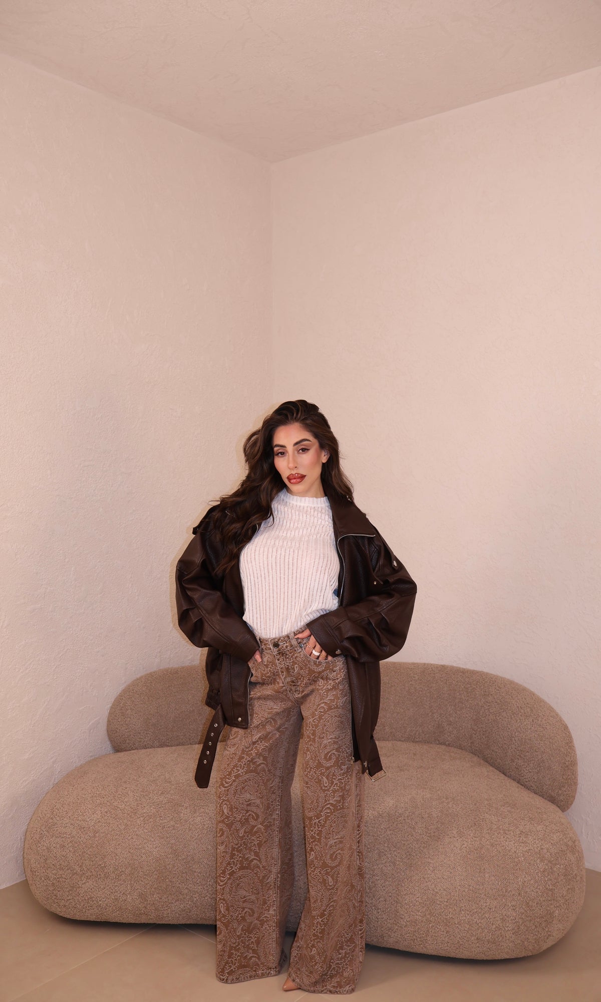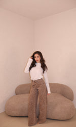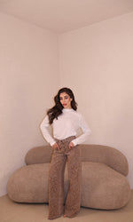 Il pantalone a palazzo ha passanti, l’elastico e piccoli spacchi lateralmente. Veste morbido/ leggermente largo. Con i tacchi è pazzesco. Grazie di tutto.❤️