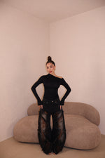 Il pantalone a palazzo ha passanti, l’elastico e piccoli spacchi lateralmente. Veste morbido/ leggermente largo. Con i tacchi è pazzesco. Grazie di tutto.❤️