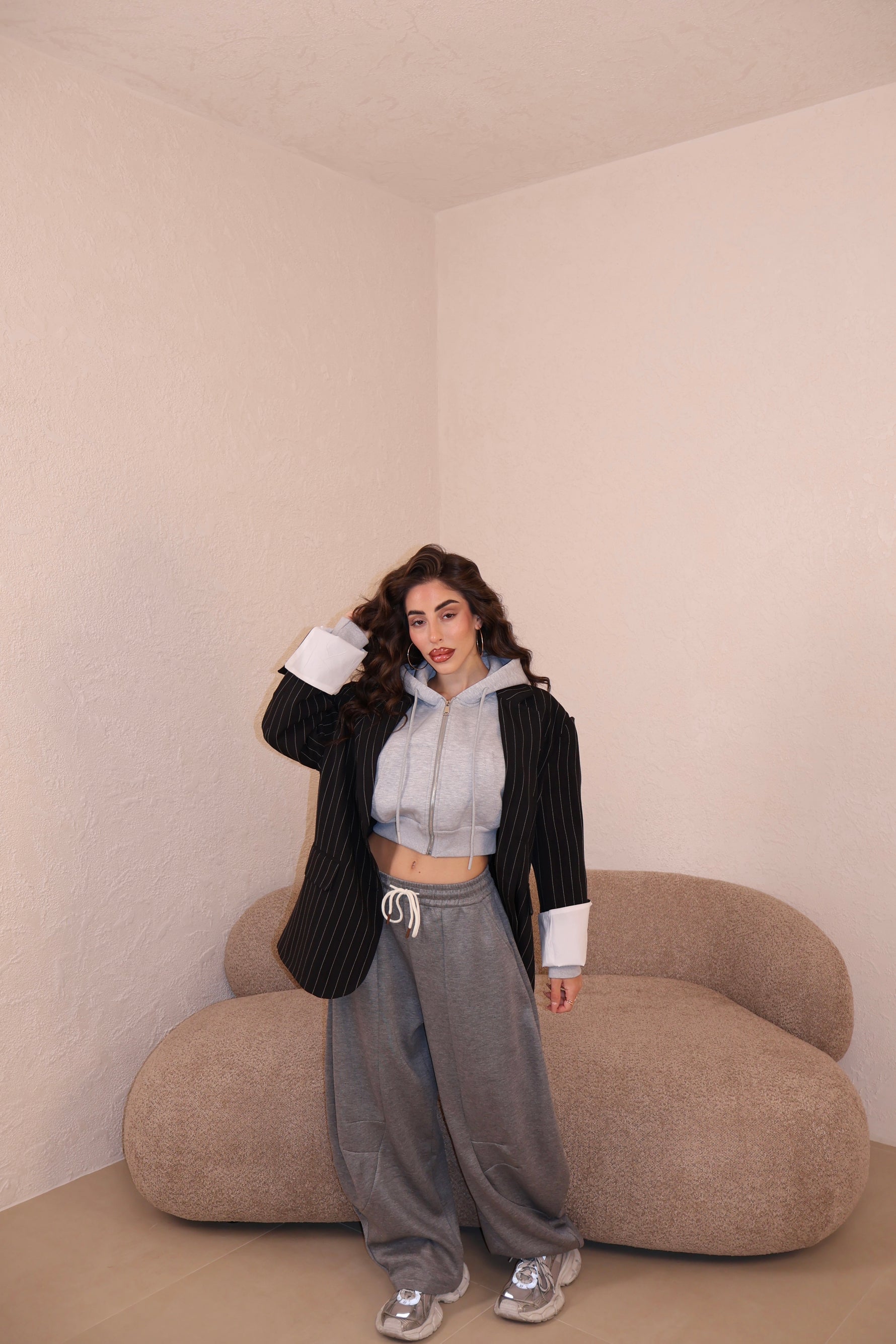 Pantaloni di tuta modello balloon con elastico e laccetti regolabili.