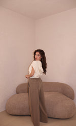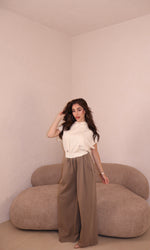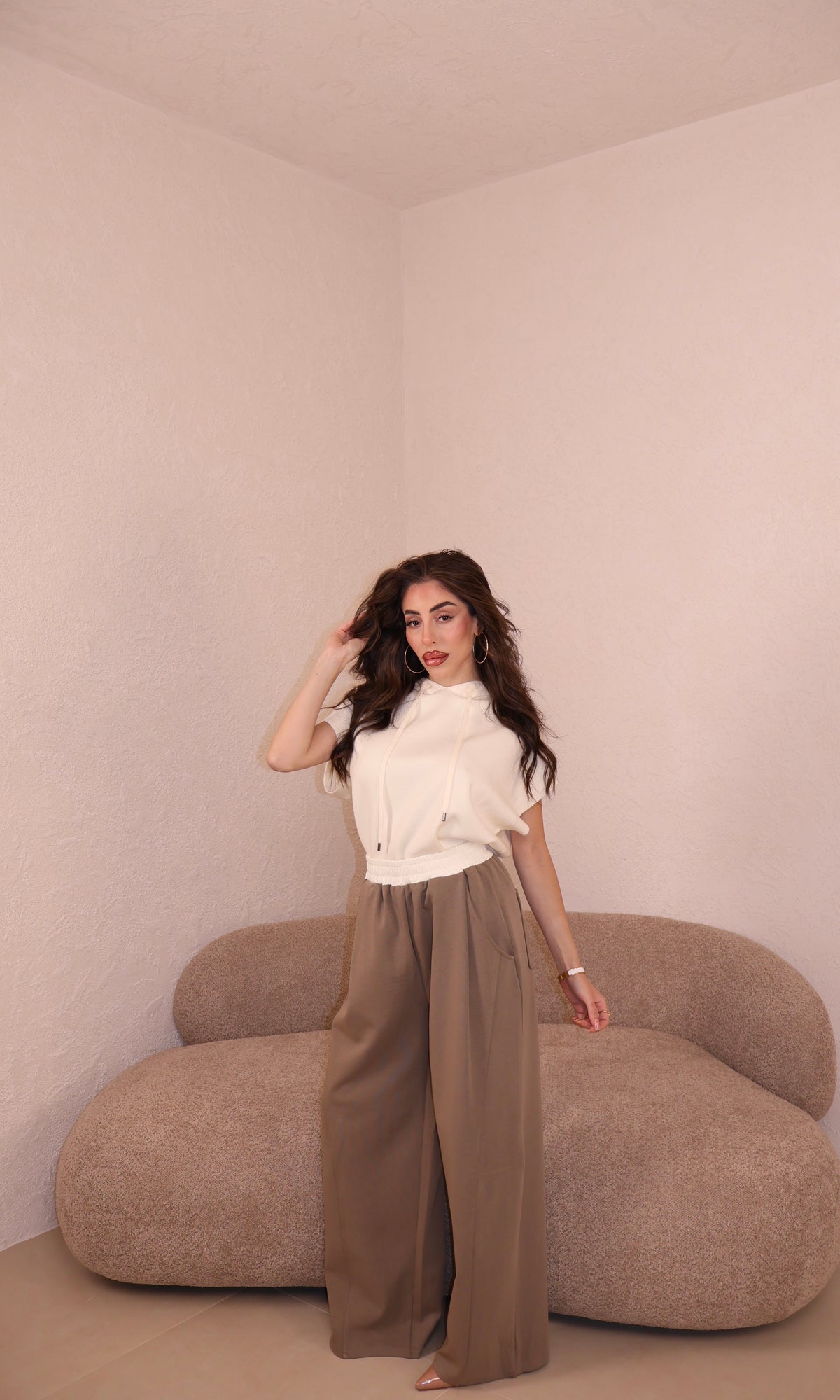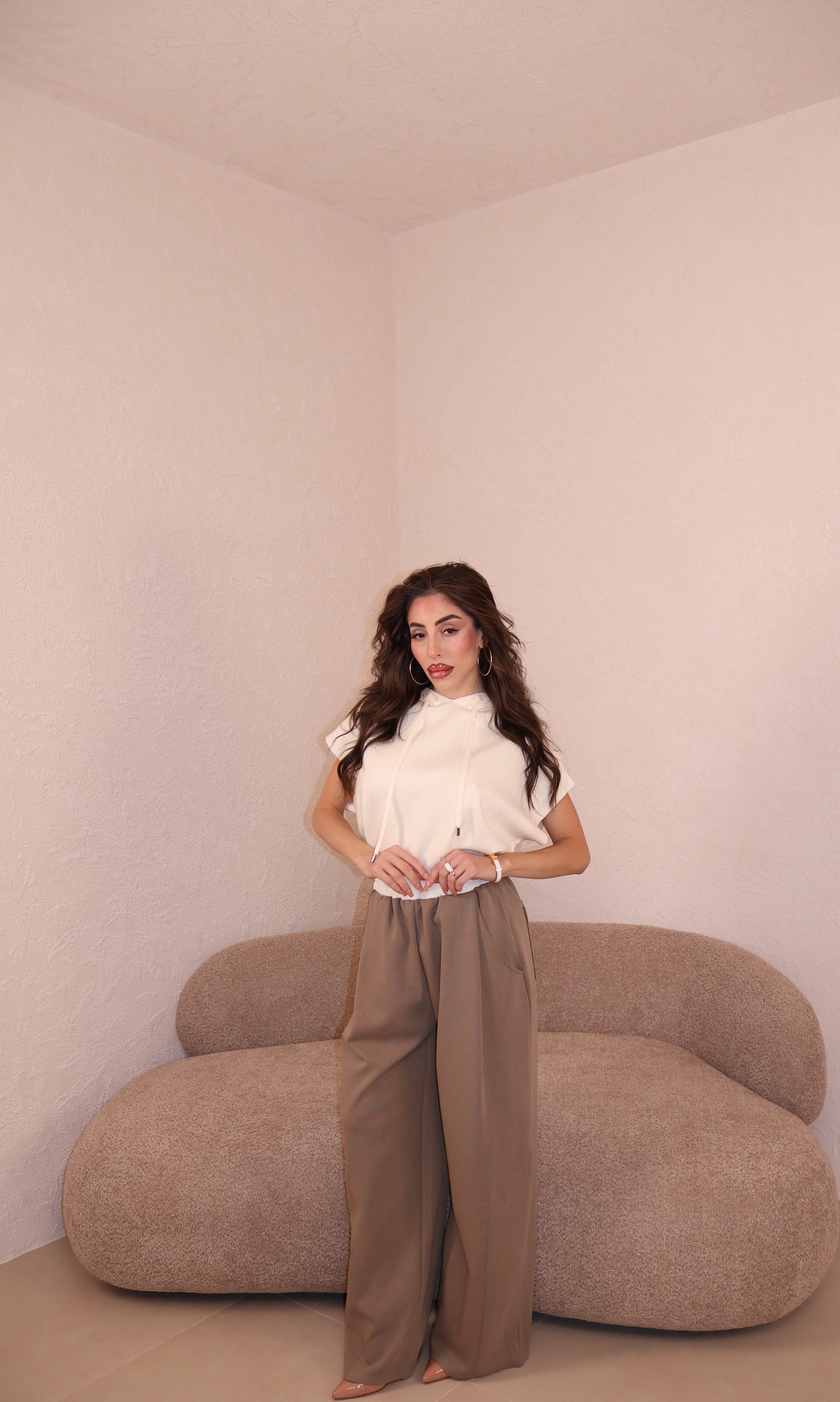Il pantalone a palazzo ha passanti, l’elastico e piccoli spacchi lateralmente. Veste morbido/ leggermente largo. Con i tacchi è pazzesco. Grazie di tutto.❤️