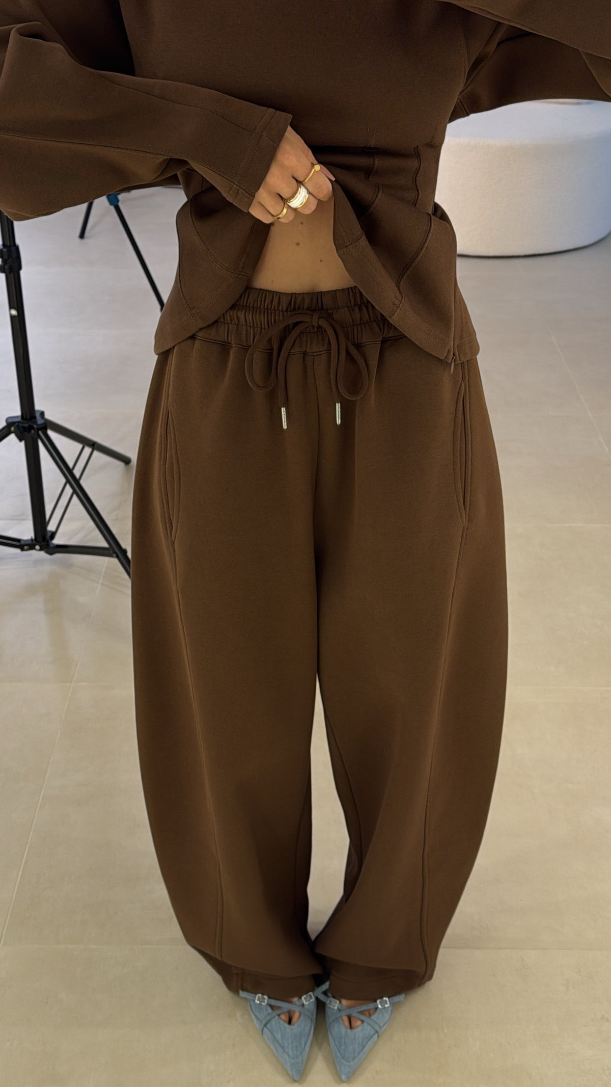 Prezzo unitario / perPantatura modello balloon con elastico in vita e laccetti regolabili. La modella indossa taglia S/M.
