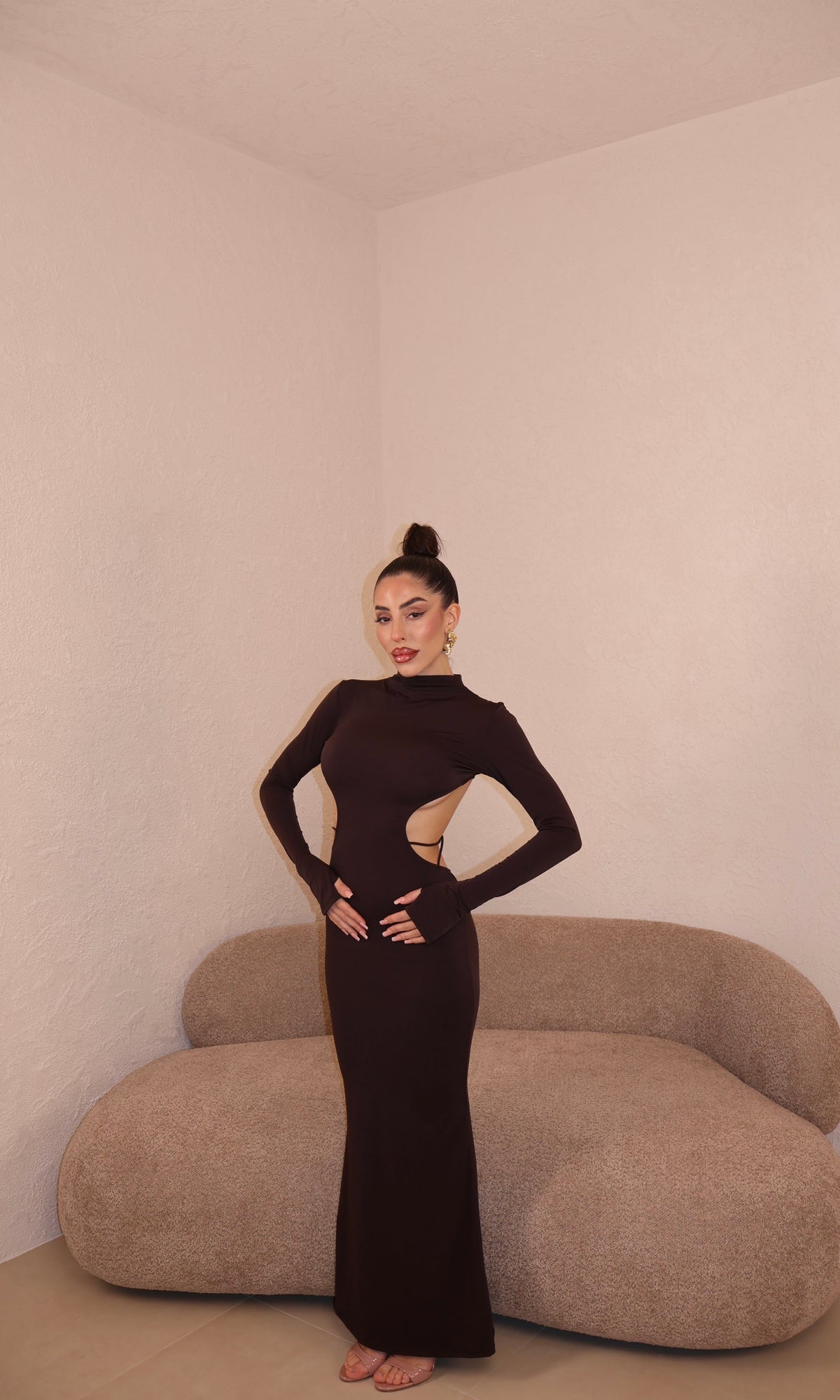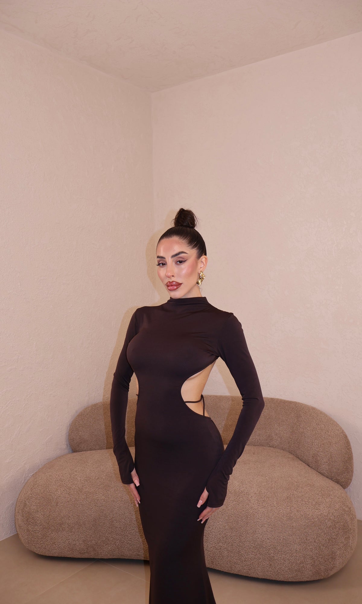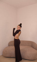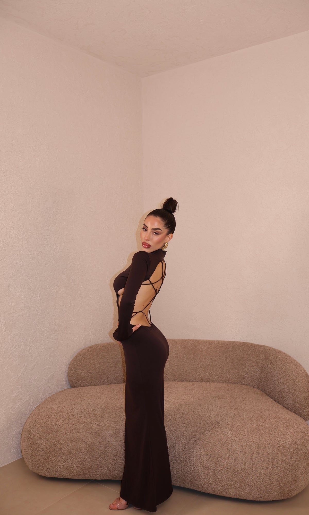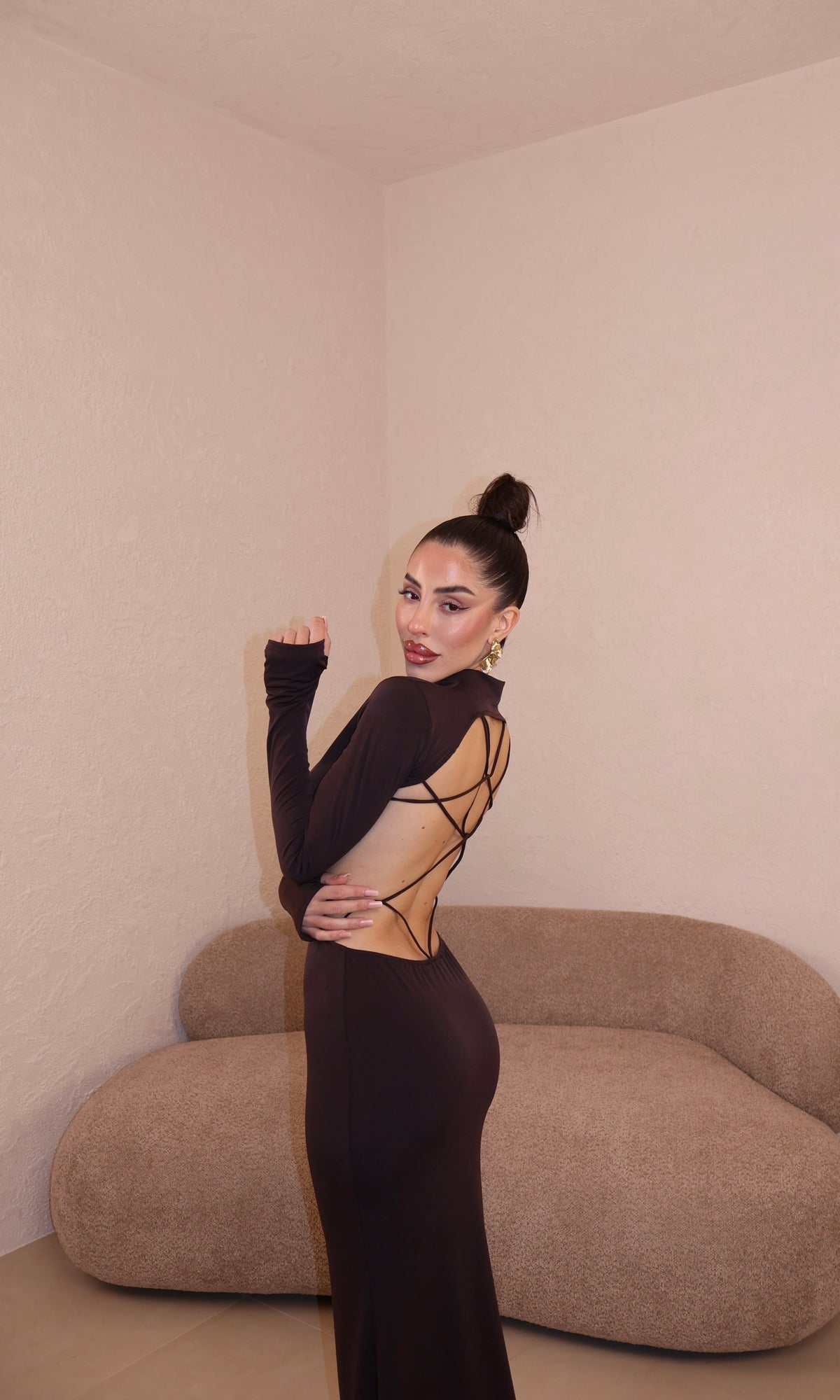Abito lungo in lycra con incrocio sul retro. Taglia unica.