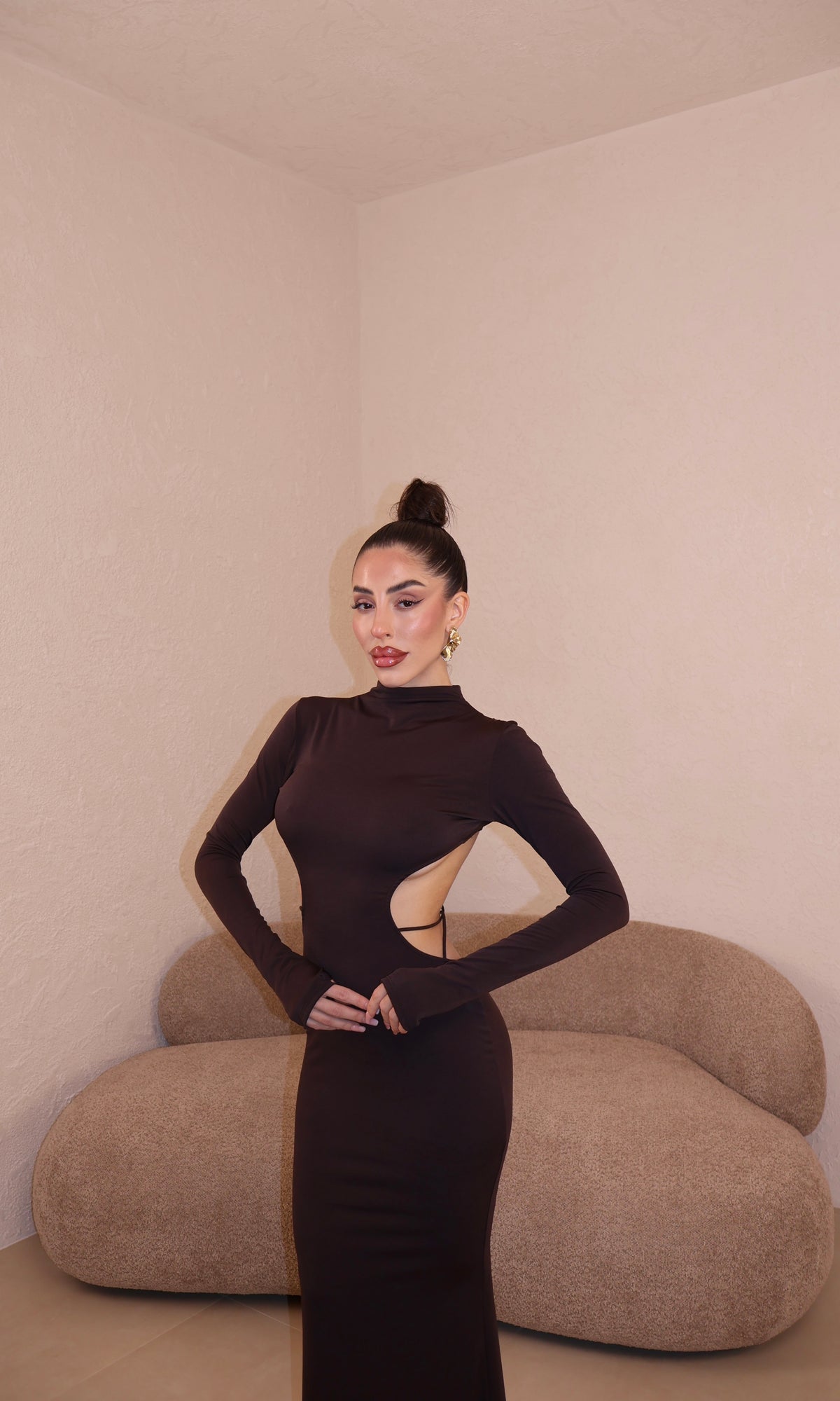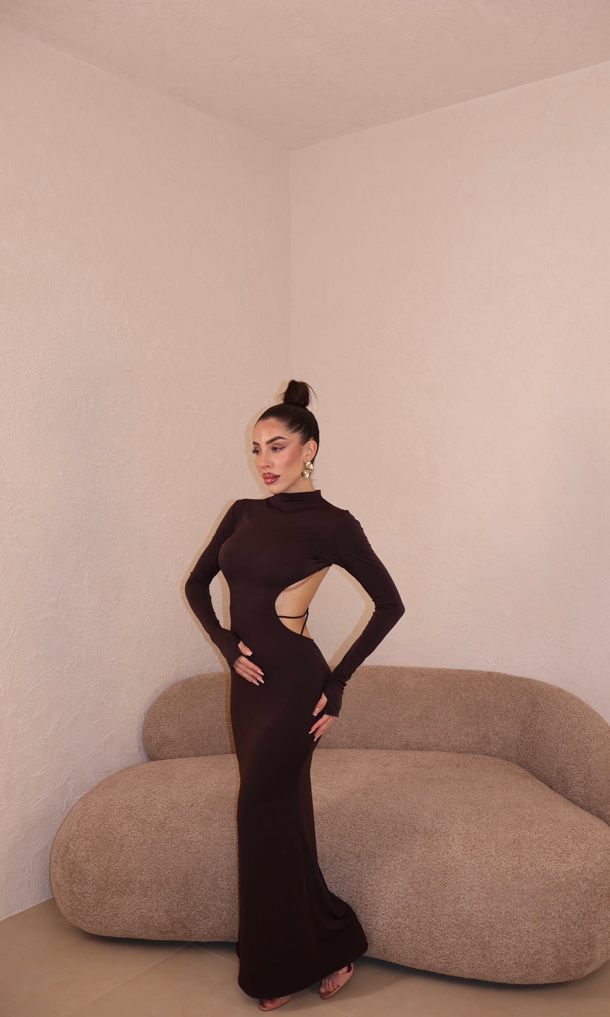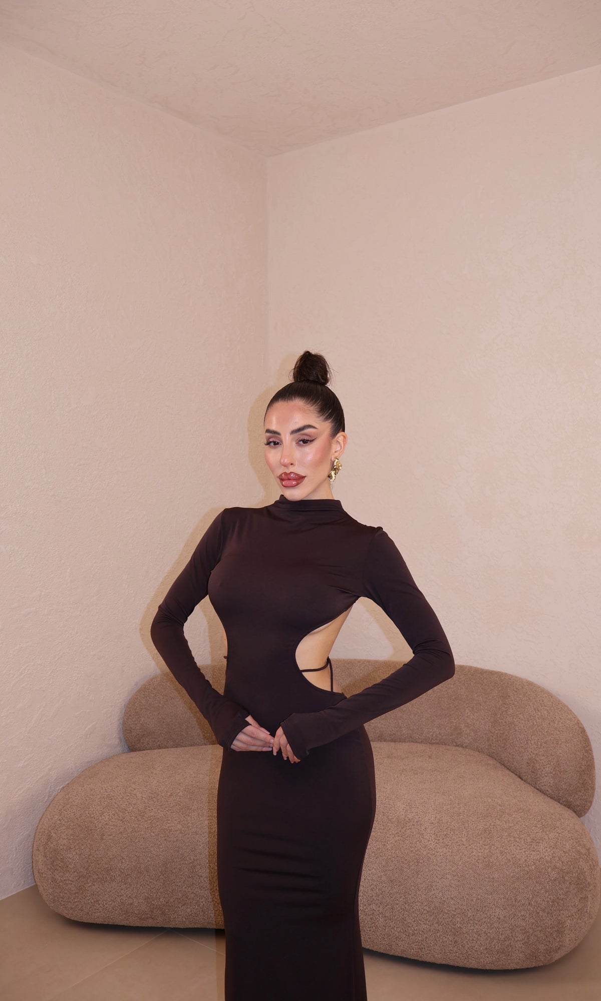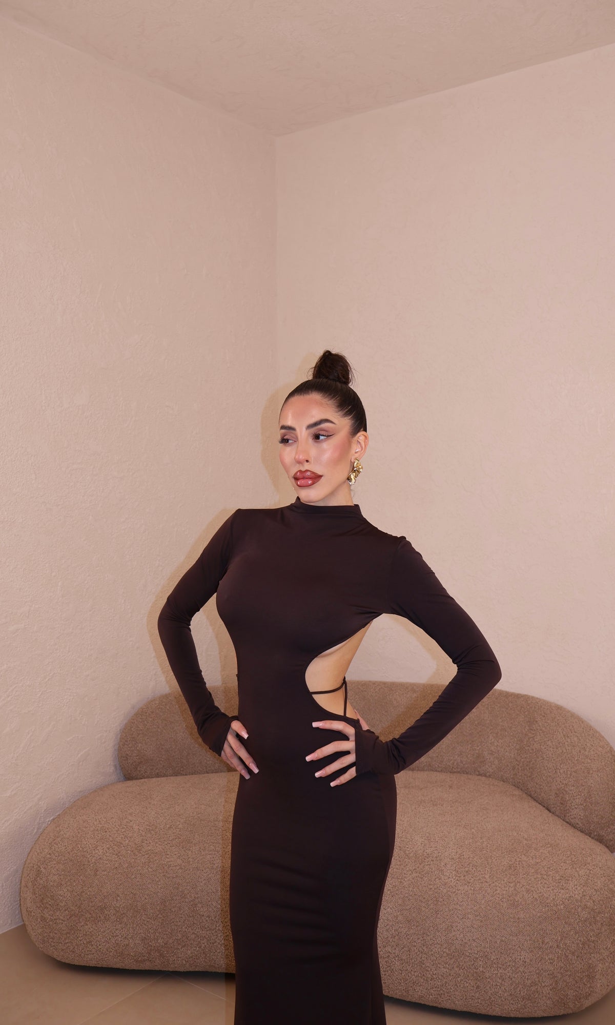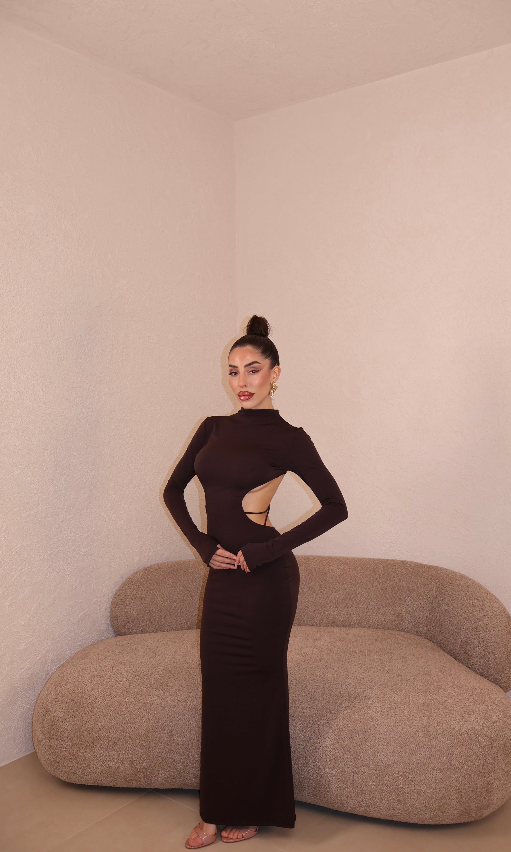 Abito lungo in lycra con incrocio sul retro. Taglia unica.