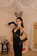Prezzo unitario / perJumpsuit in lycra con bustino in pizzo. Taglia Unica.