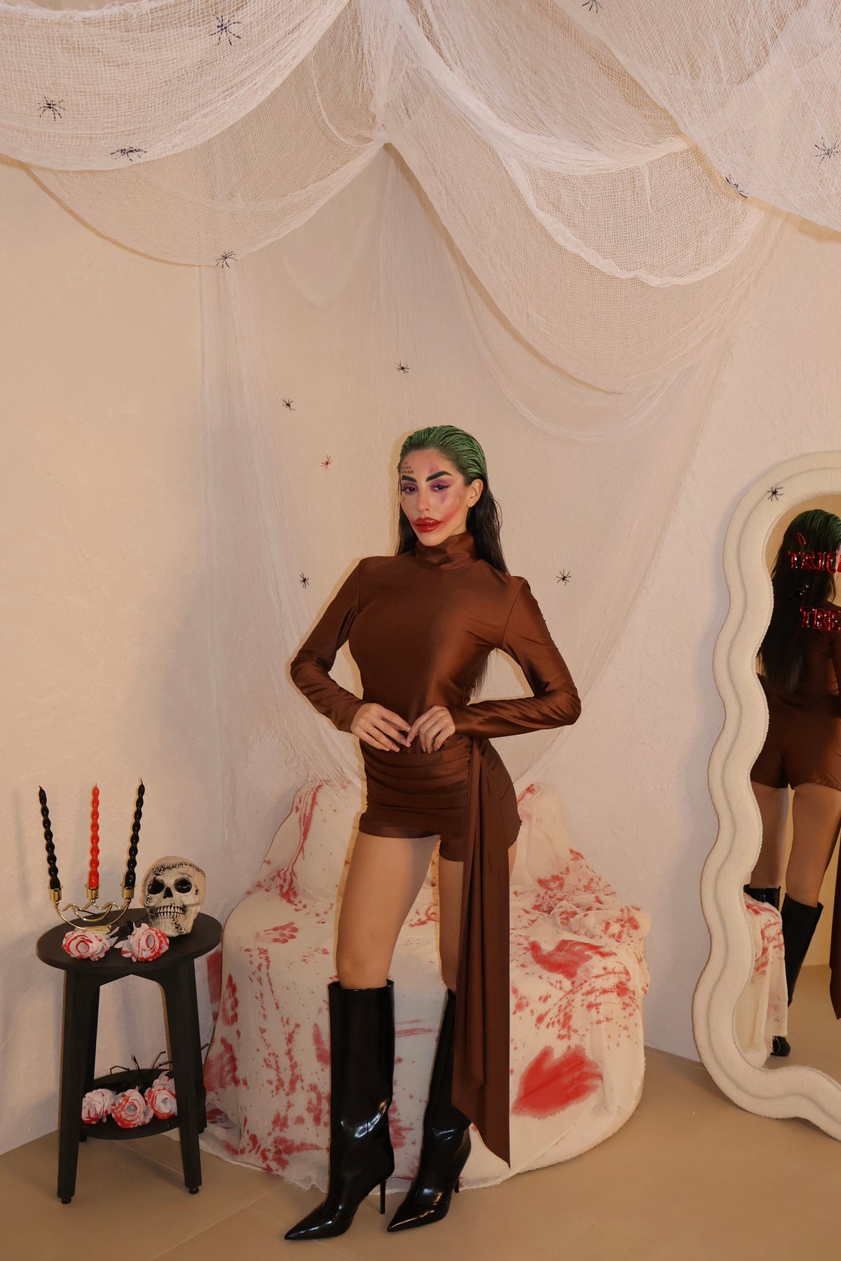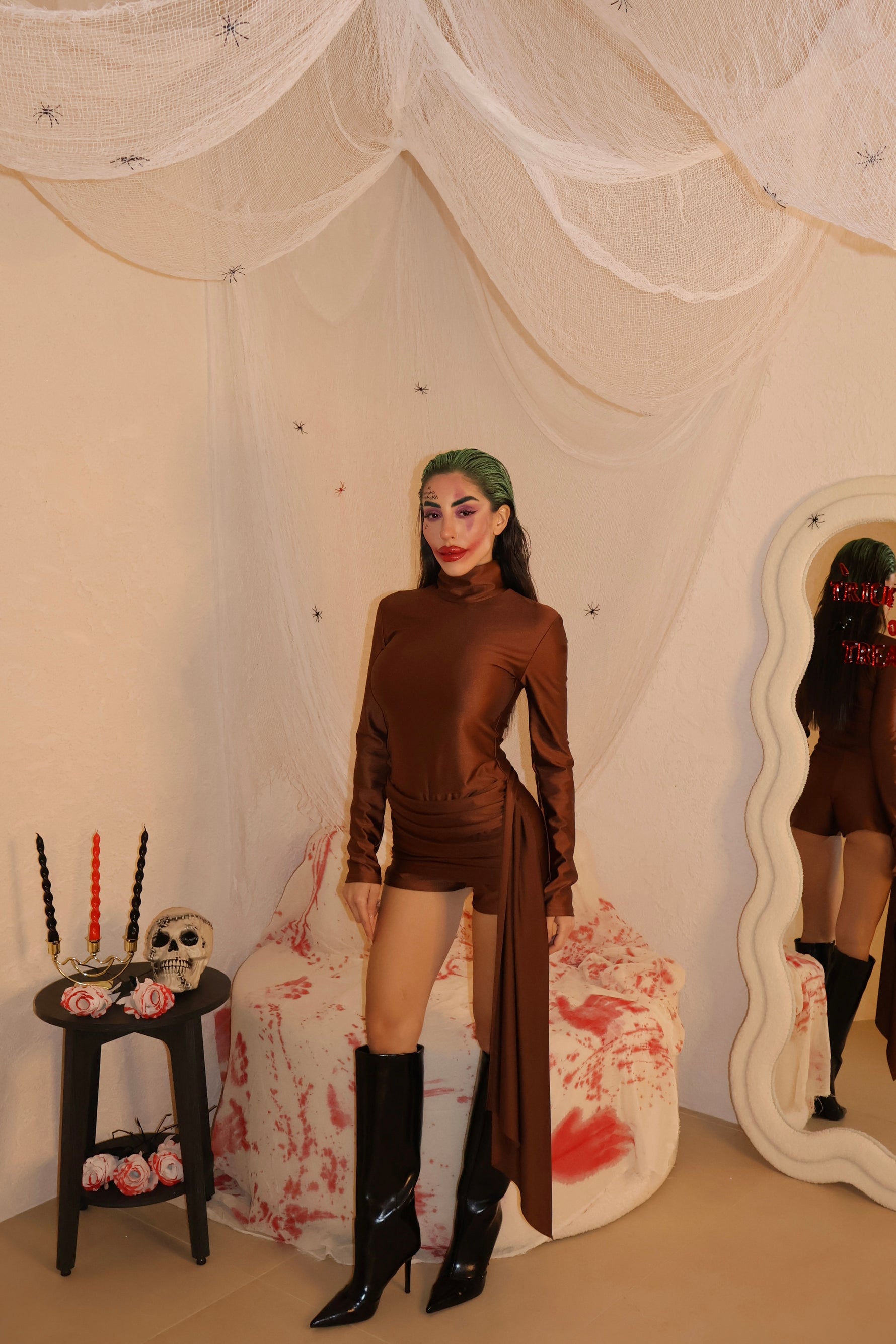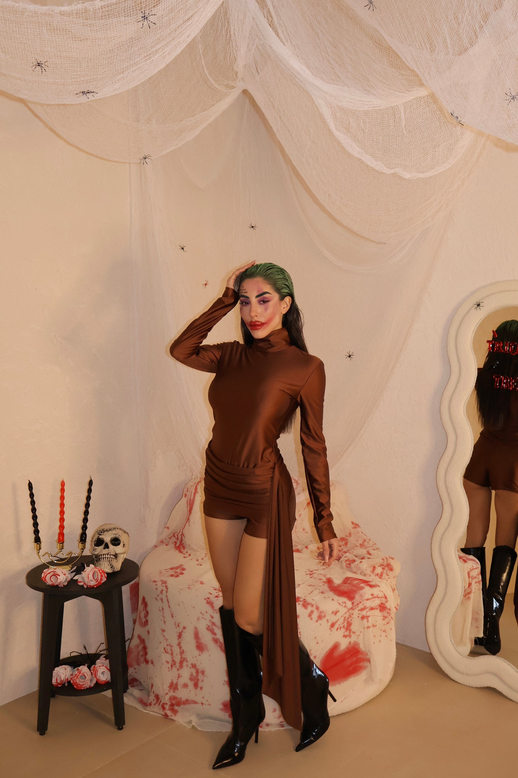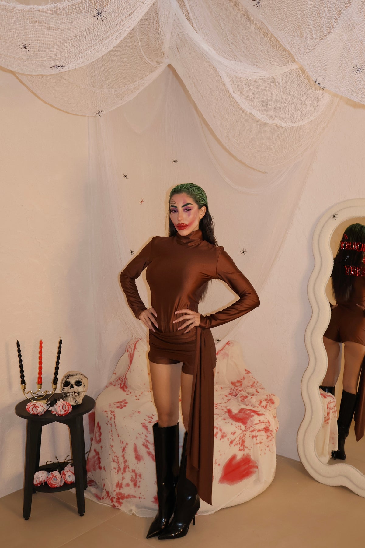 Jumpsuit corta in lycra con fascia pendente laterale. Taglia Unica.