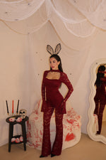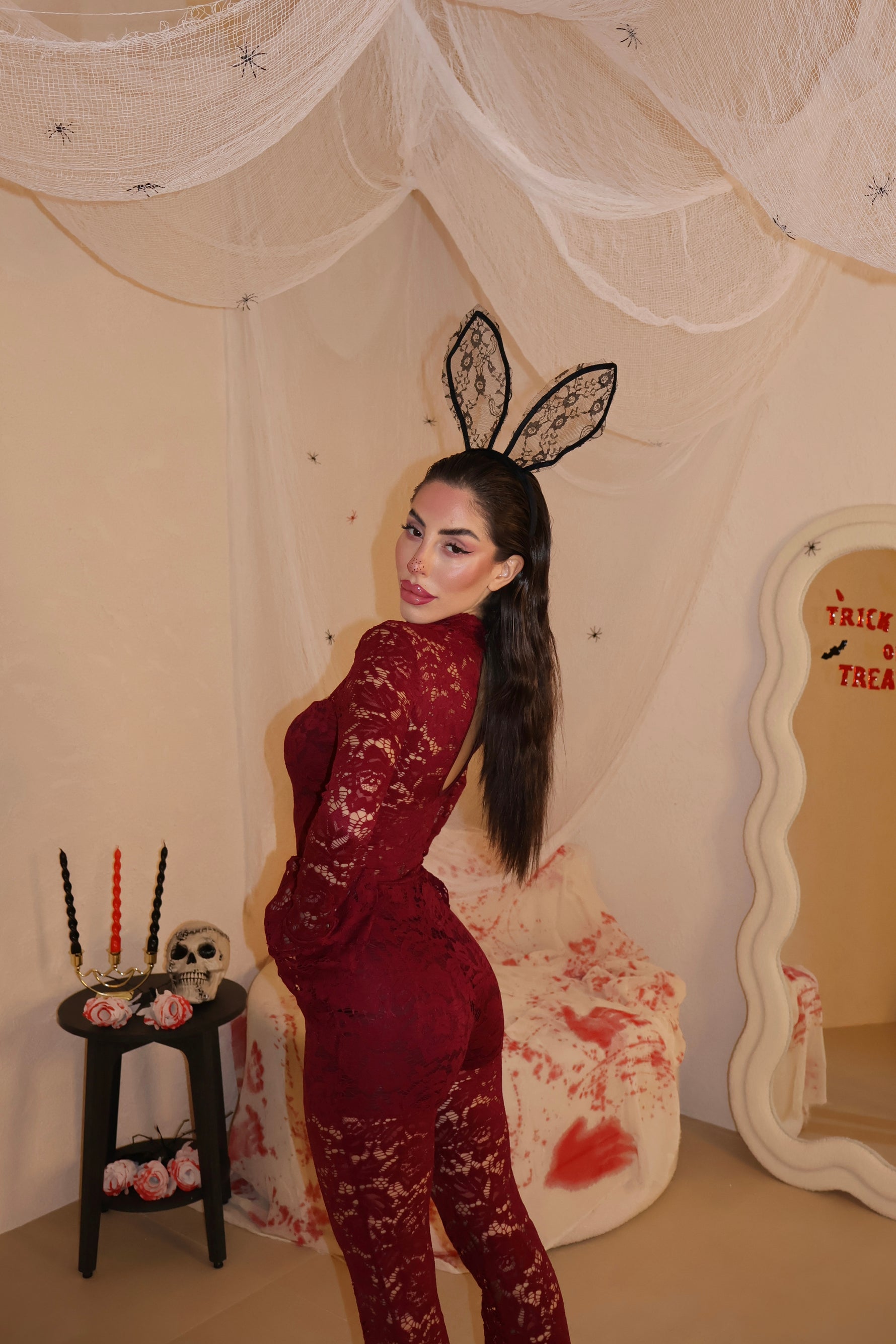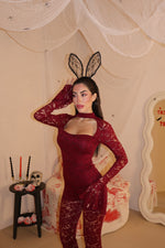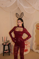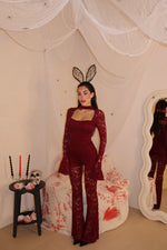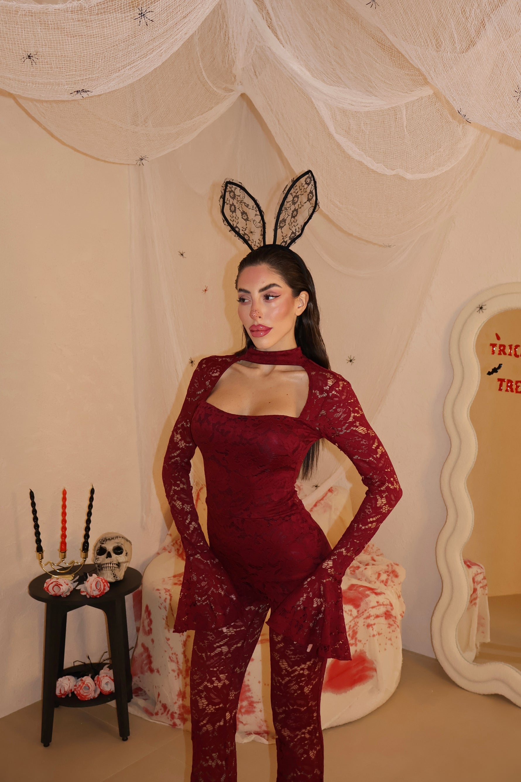 Jumpsuit in pizzo con culotte interna e manica a campana. Taglia Unica.