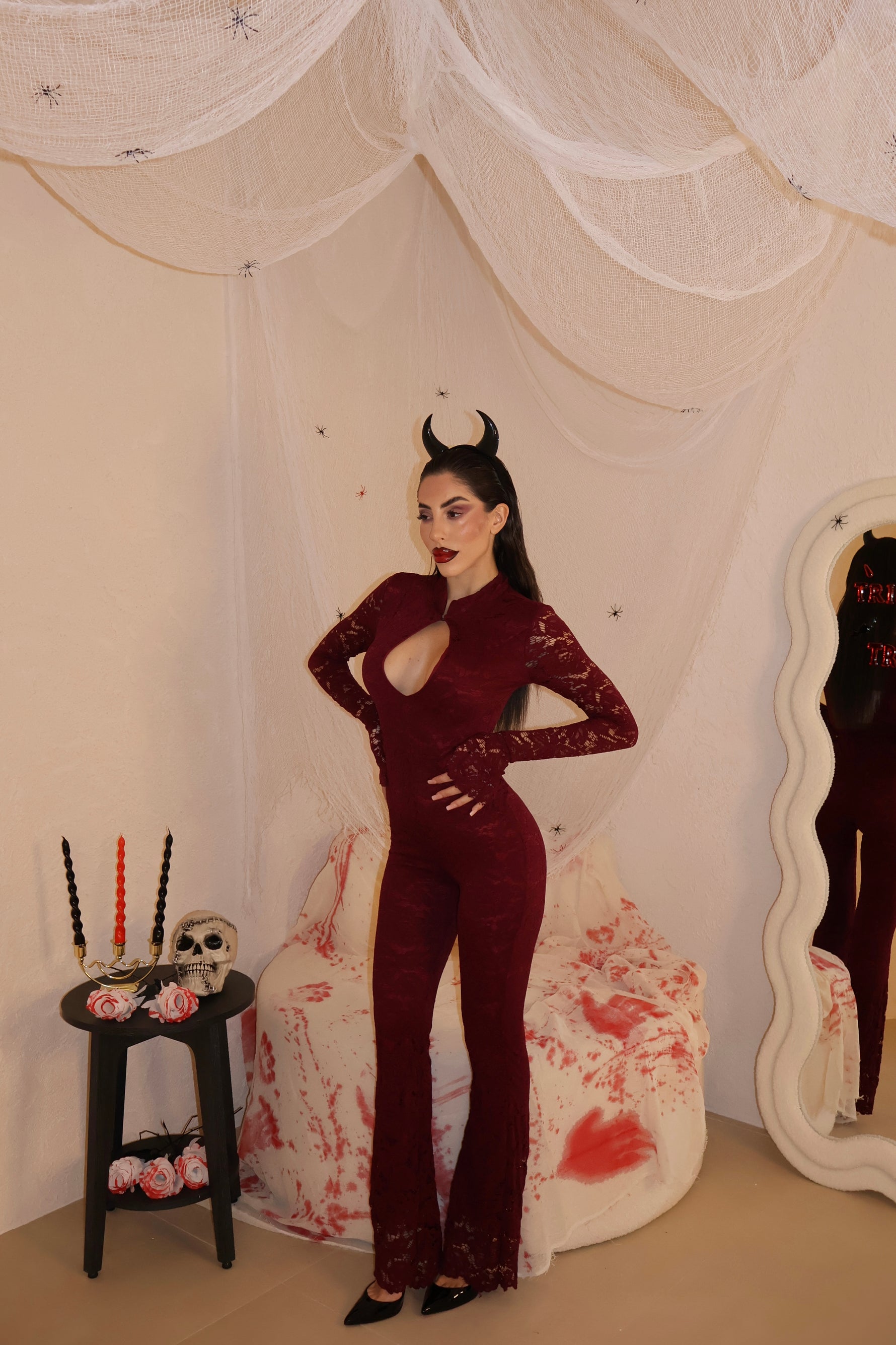 Jumpsuit in pizzo con apertura frontale. Taglia Unica.