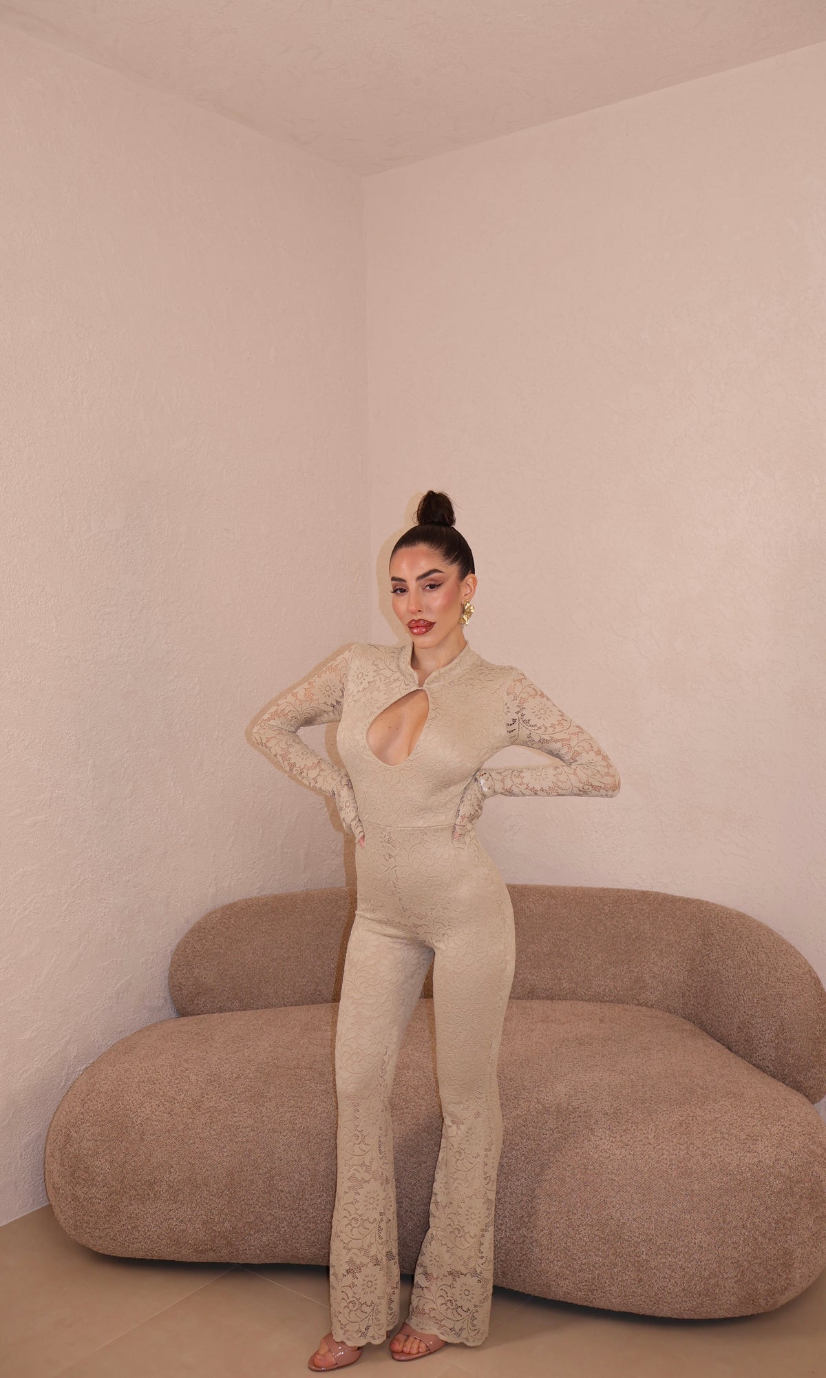 Prezzo unitario / perJumpsuit in pizzo con apertura frontale. Taglia unica.