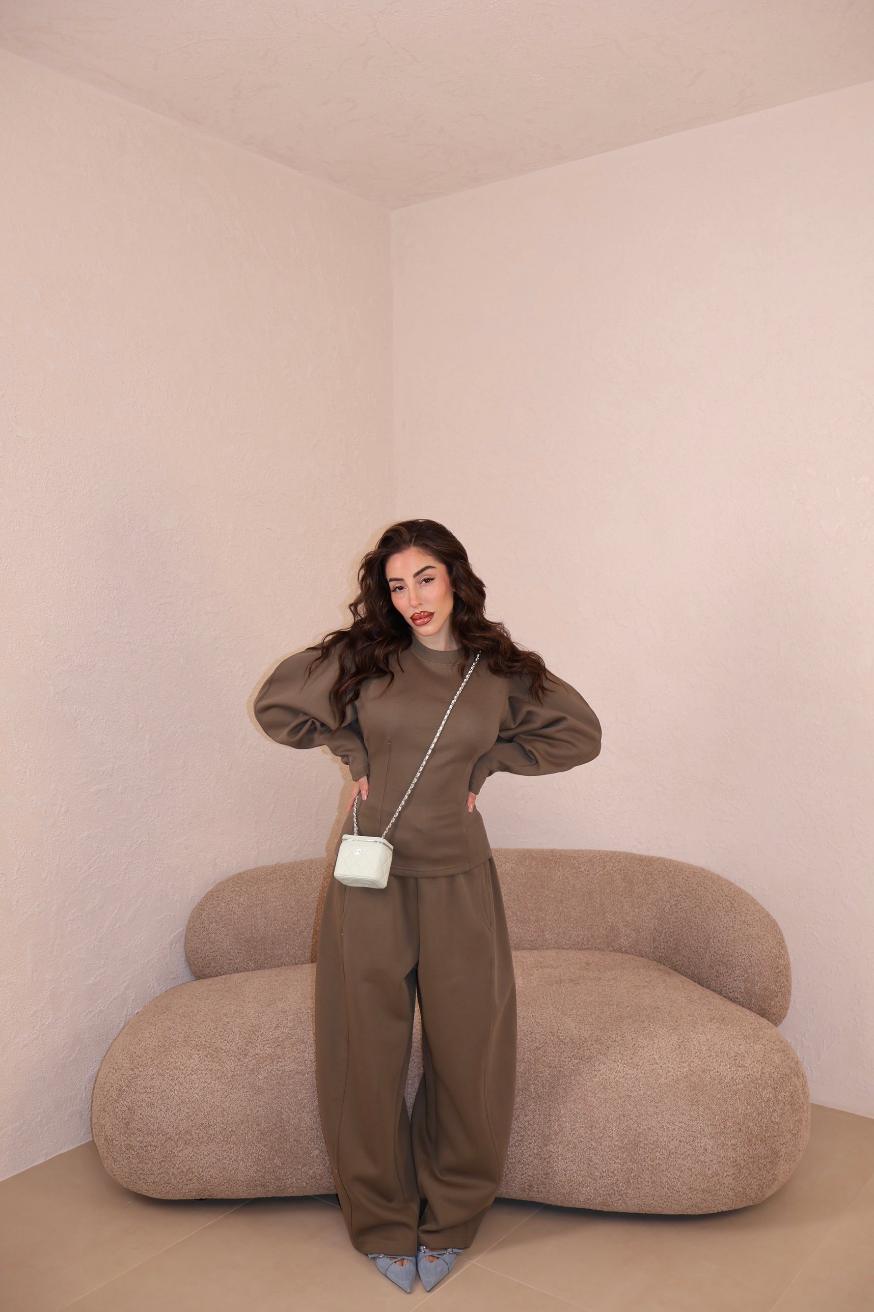 Il pantalone a palazzo ha passanti, l’elastico e piccoli spacchi lateralmente. Veste morbido/ leggermente largo. Con i tacchi è pazzesco. Grazie di tutto.❤️