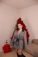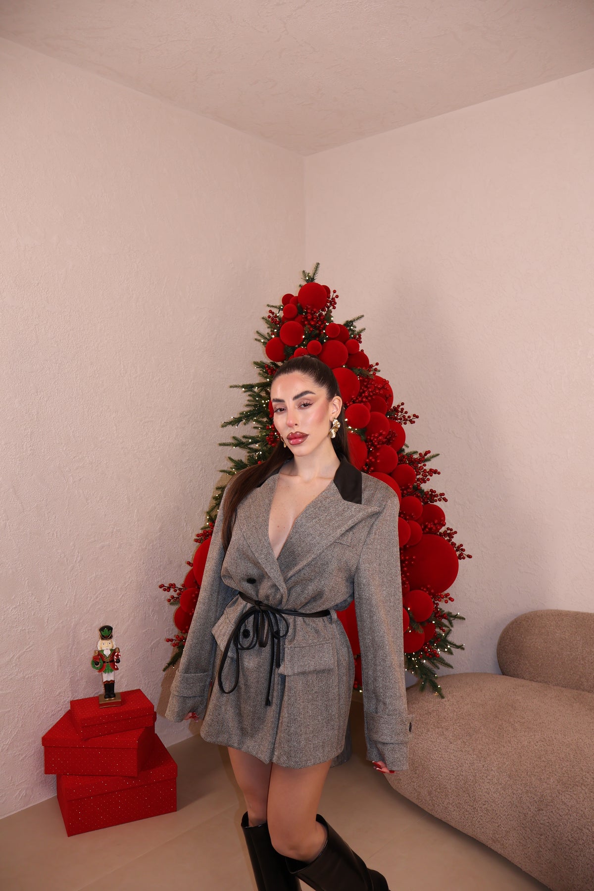 Blazer in panno doppio petto con collo e cinturina in ecopelle. Taglia unica.