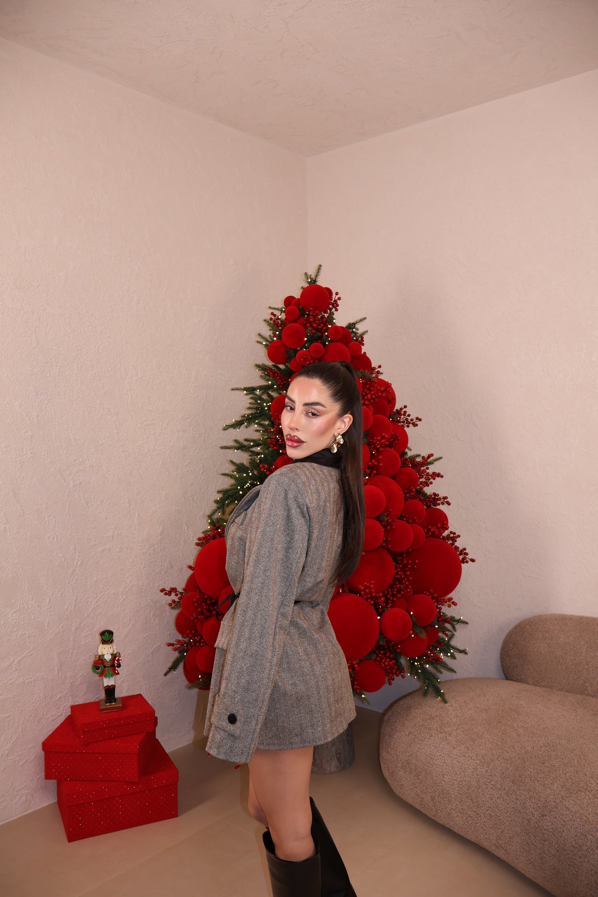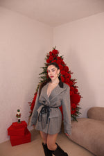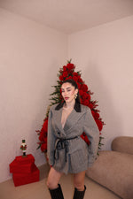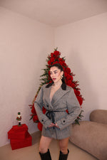Prezzo unitario / perBlazer in panno doppio petto con collo e cinturina in ecopelle. Taglia unica.