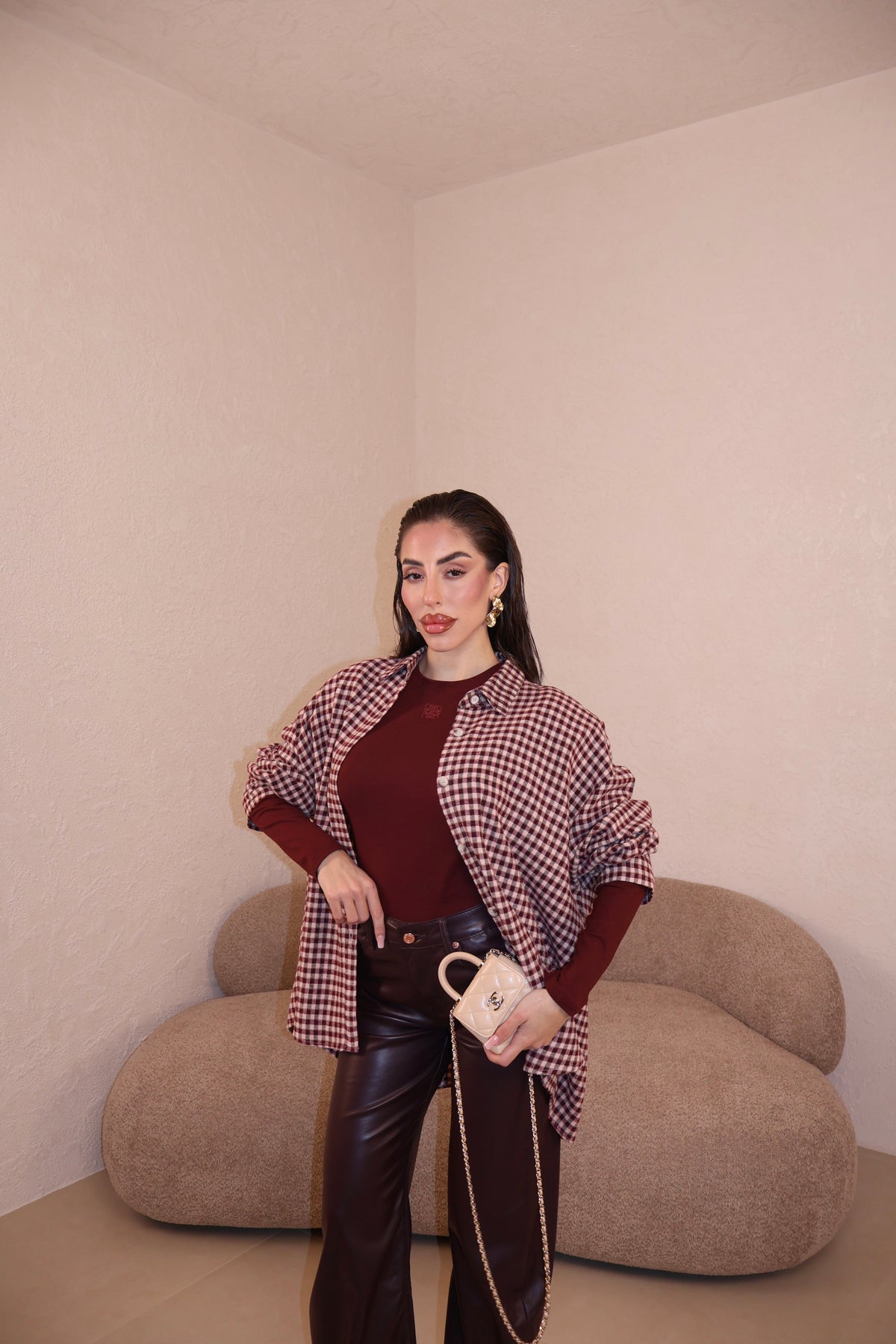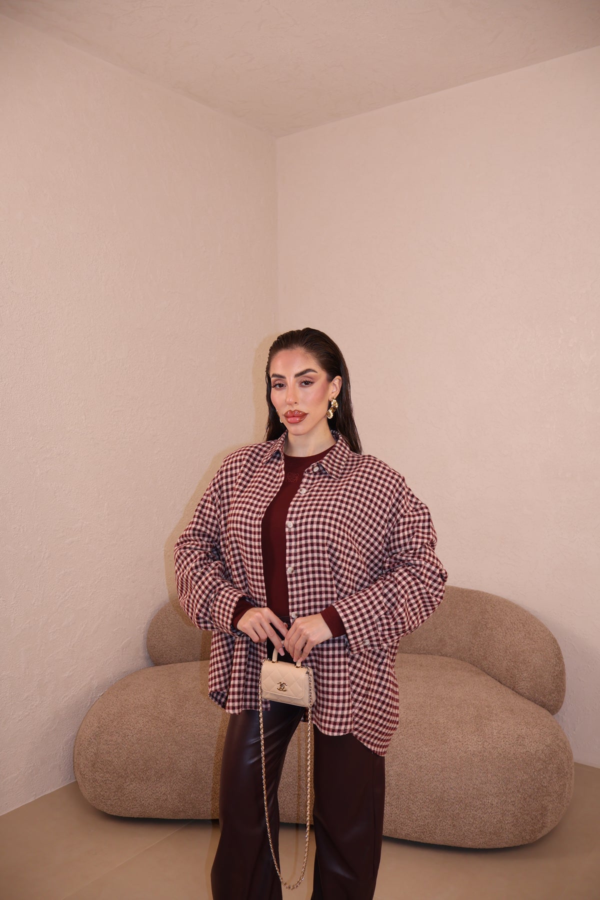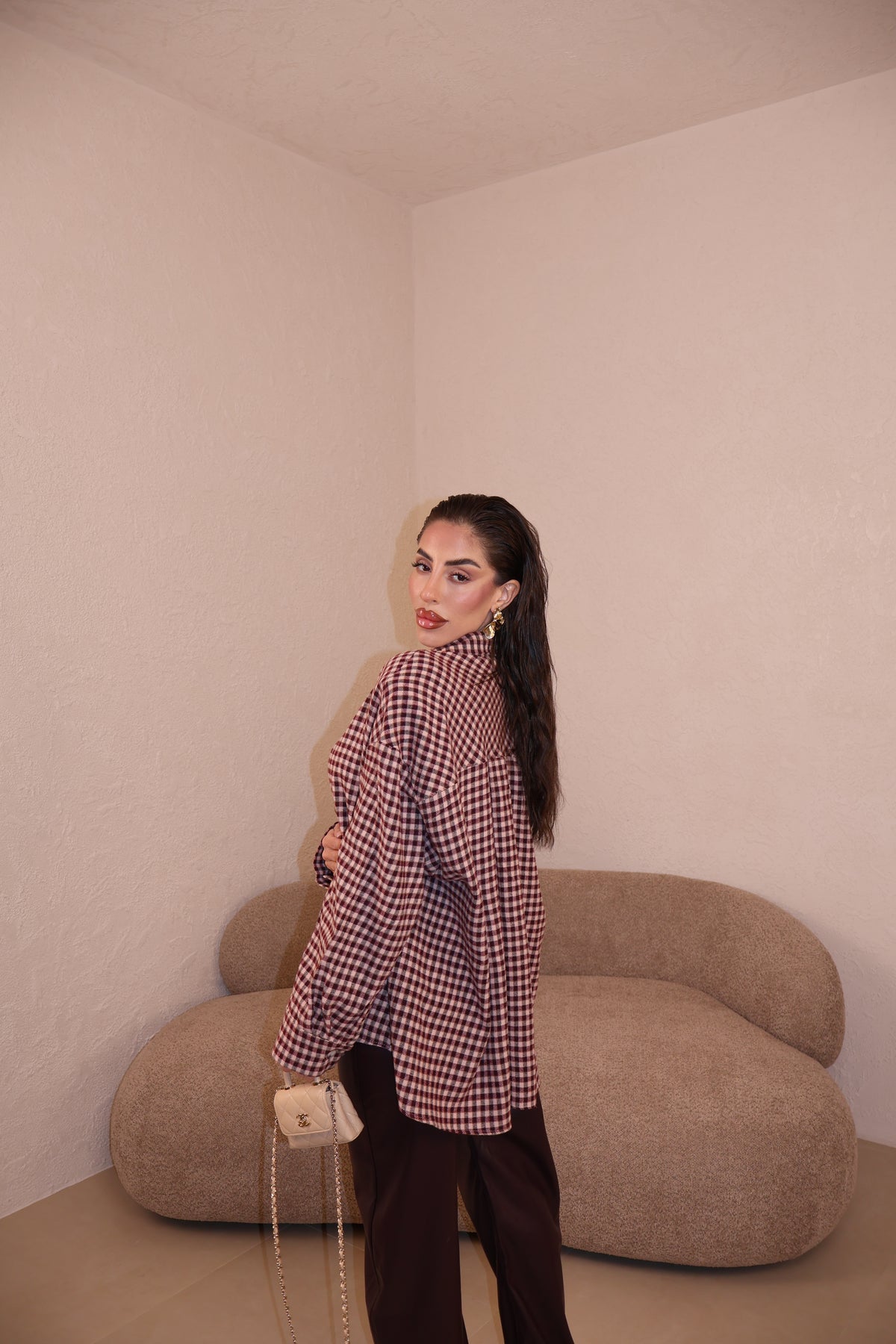 Camicia over in flanella a quadri vichy. Spalline imbottite. Taglia unica.