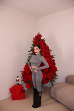 Coordinato a costina composto da leggings effetto push-up e maglia crop con cerniera. Taglia unica.