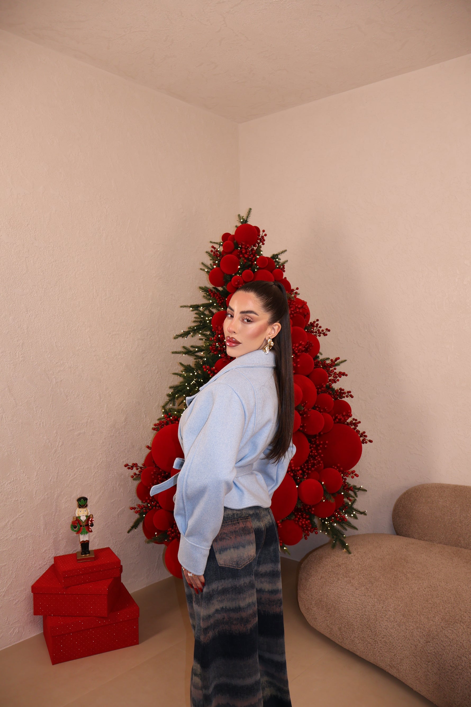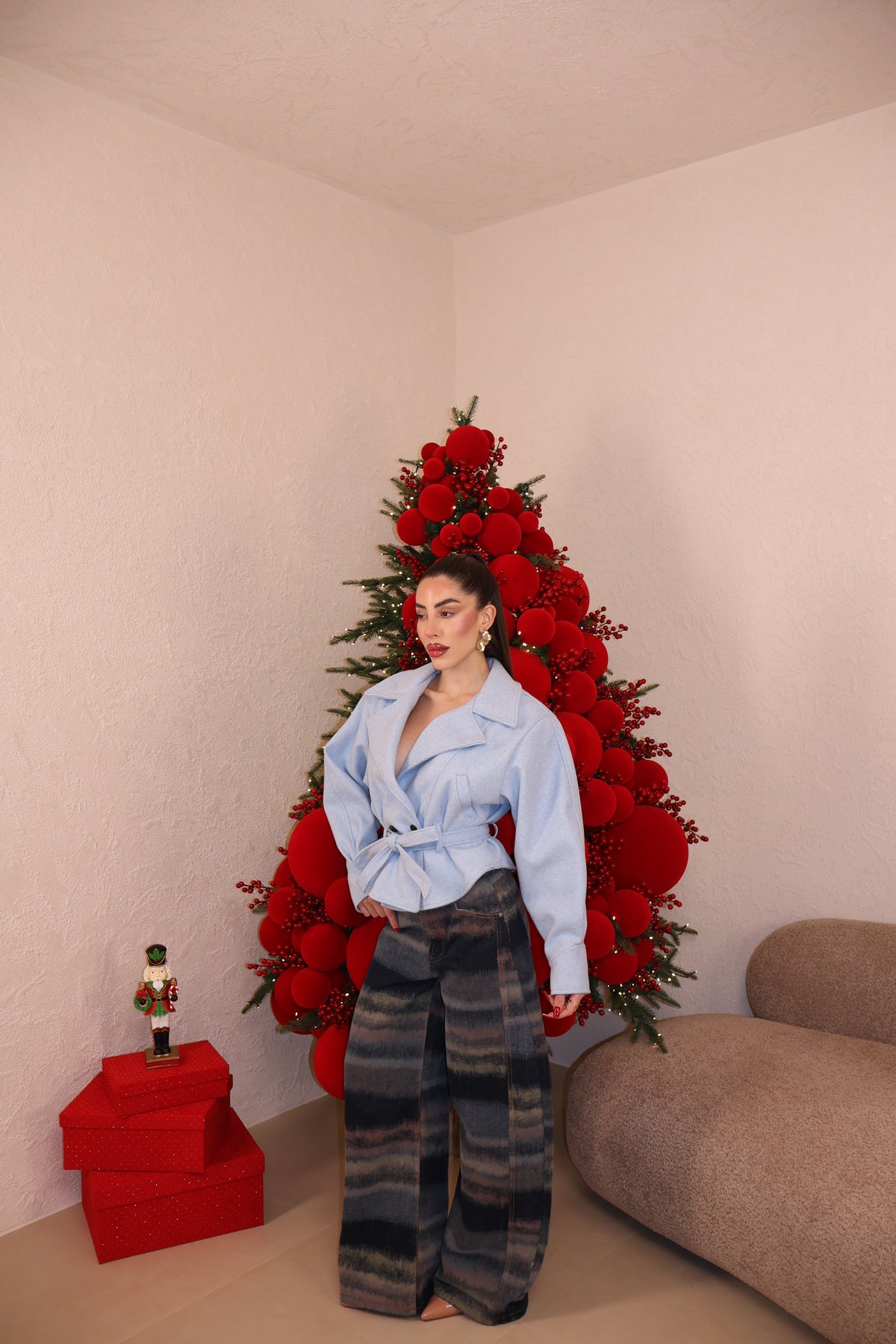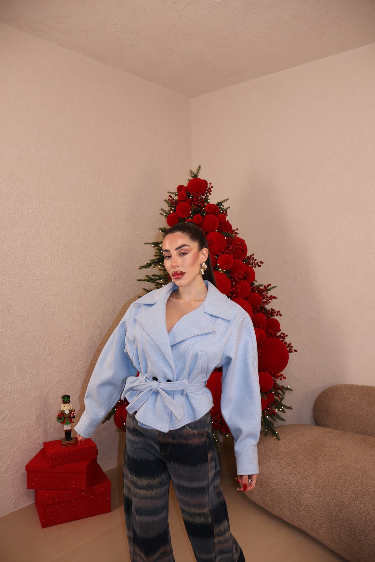 Giacca corta in panno con cintura in vita. Taglia unica.
