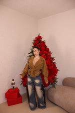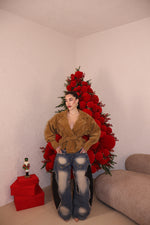 Jeans modello balloon con dettaglisfrangiati e bottoni. Vestibilità regolare. La modella indossa taglia S.