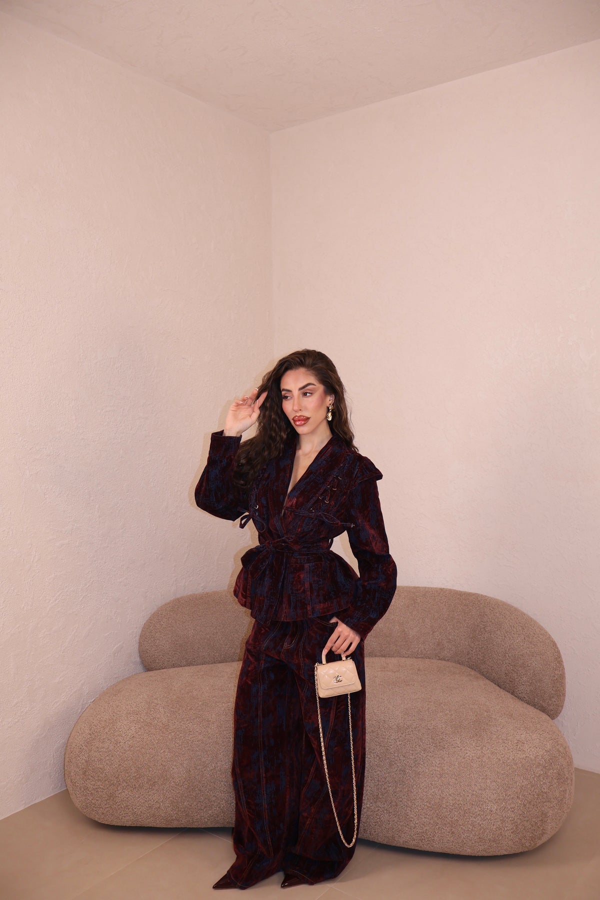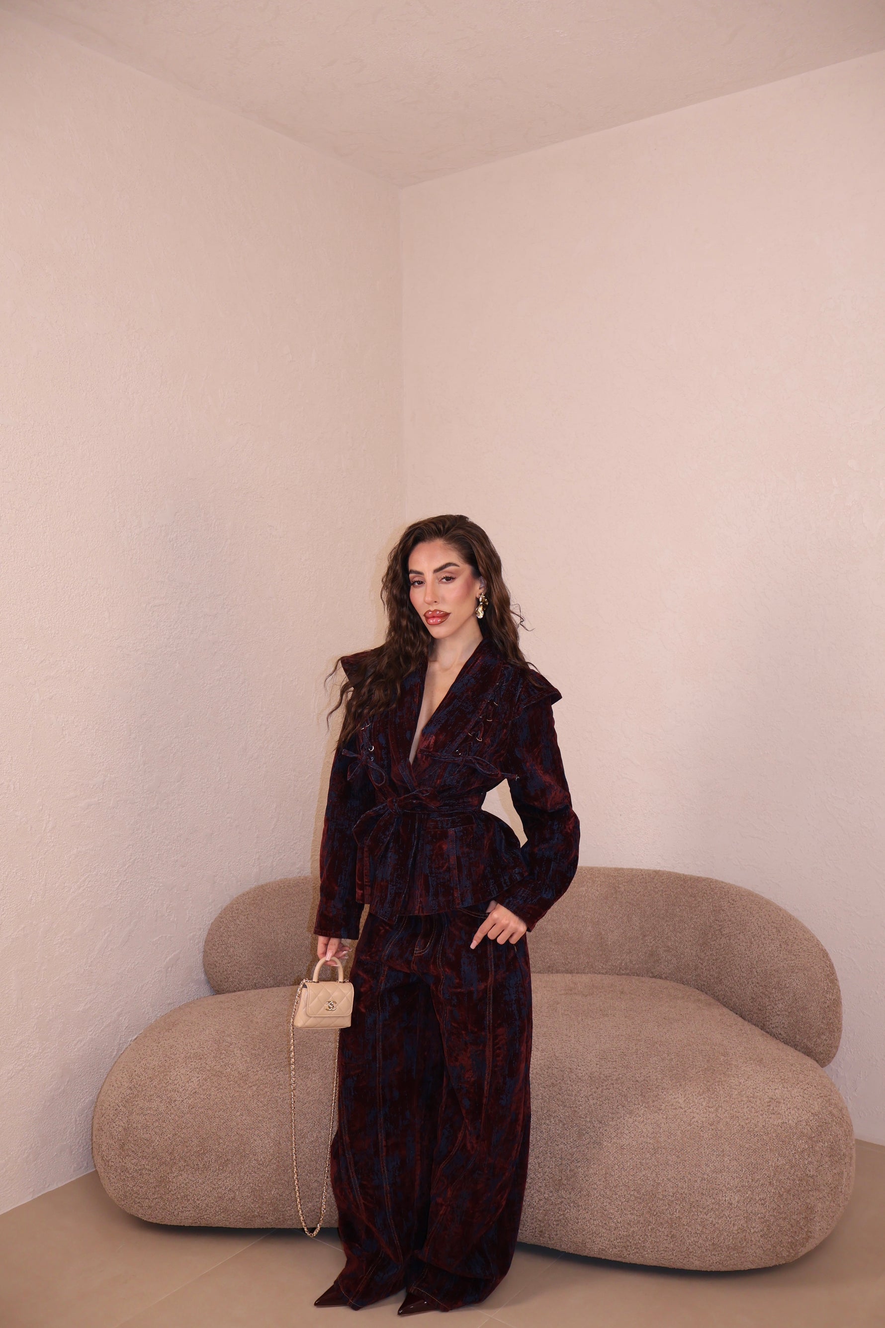 Il pantalone a palazzo ha passanti, l’elastico e piccoli spacchi lateralmente. Veste morbido/ leggermente largo. Con i tacchi è pazzesco. Grazie di tutto.❤️