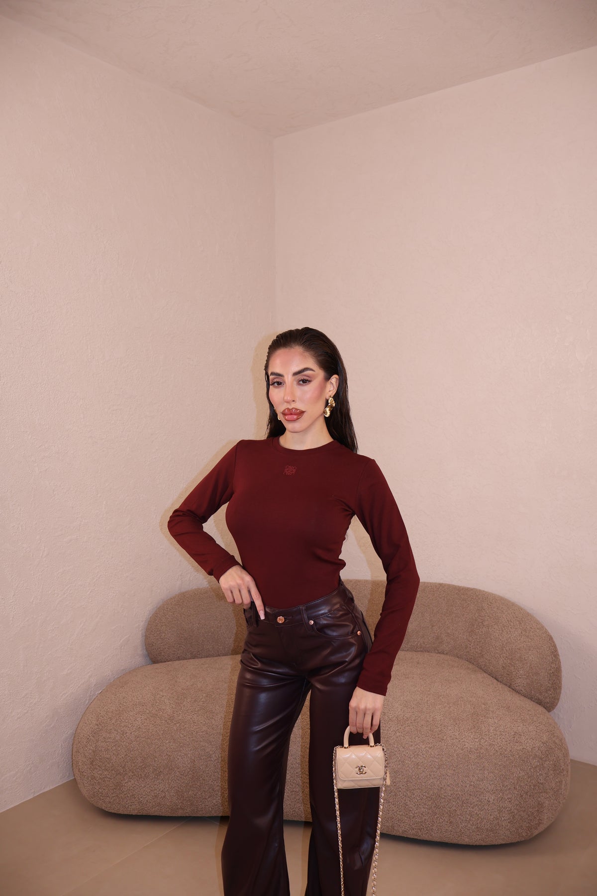 Prezzo unitario / perMaglia in cotone caldo con dettaglio simbolo frontale. La modella indossa taglia S.