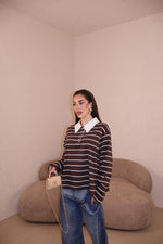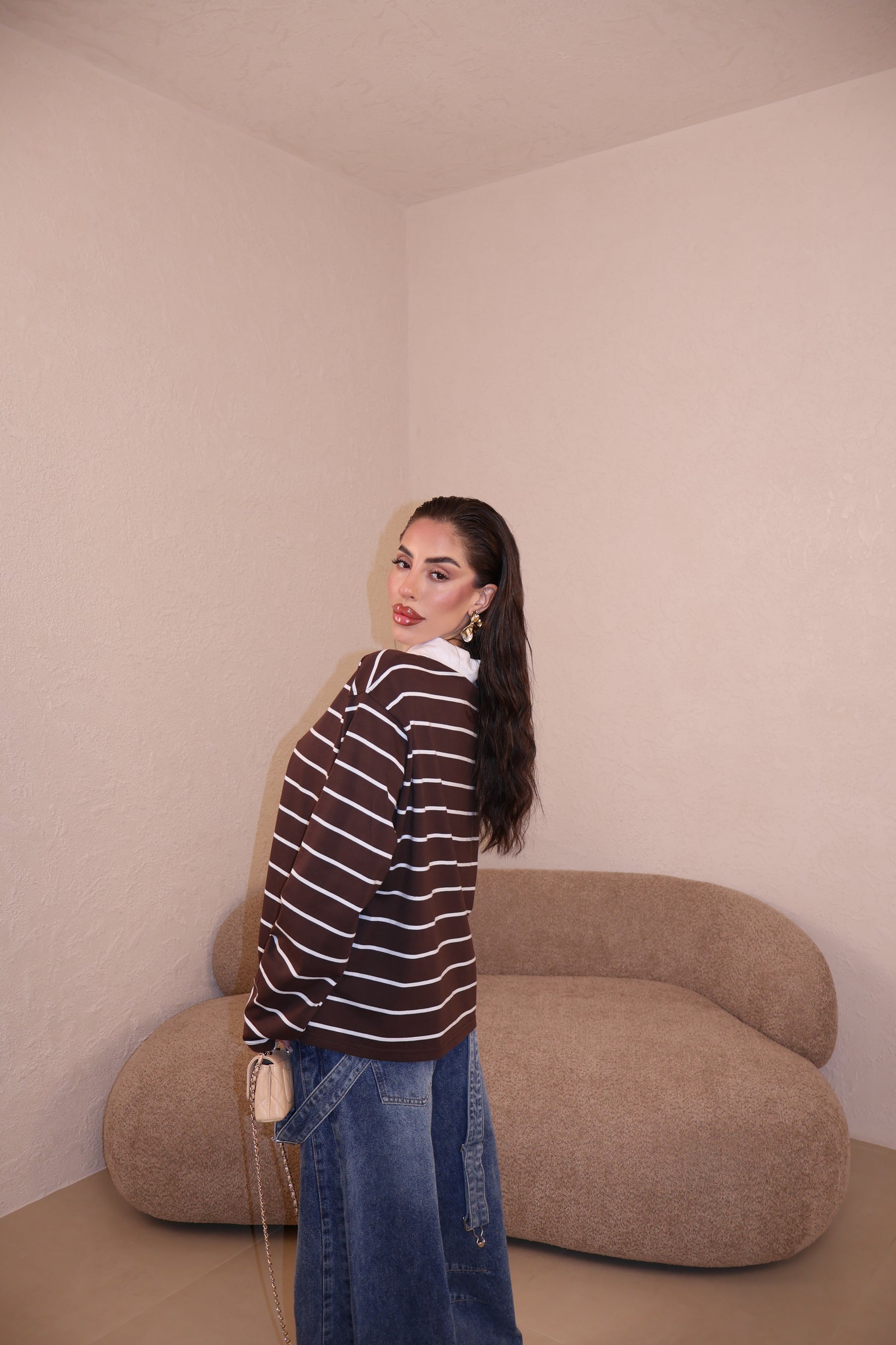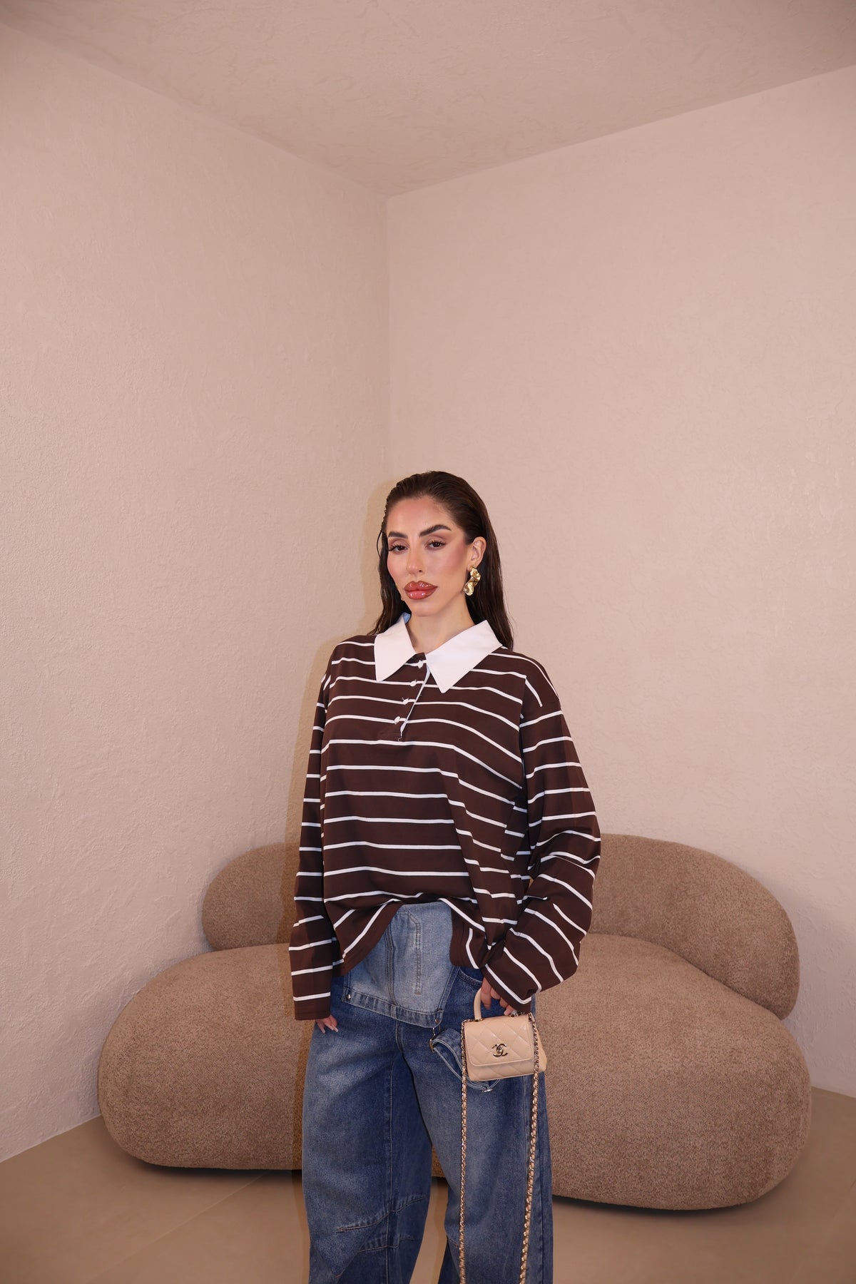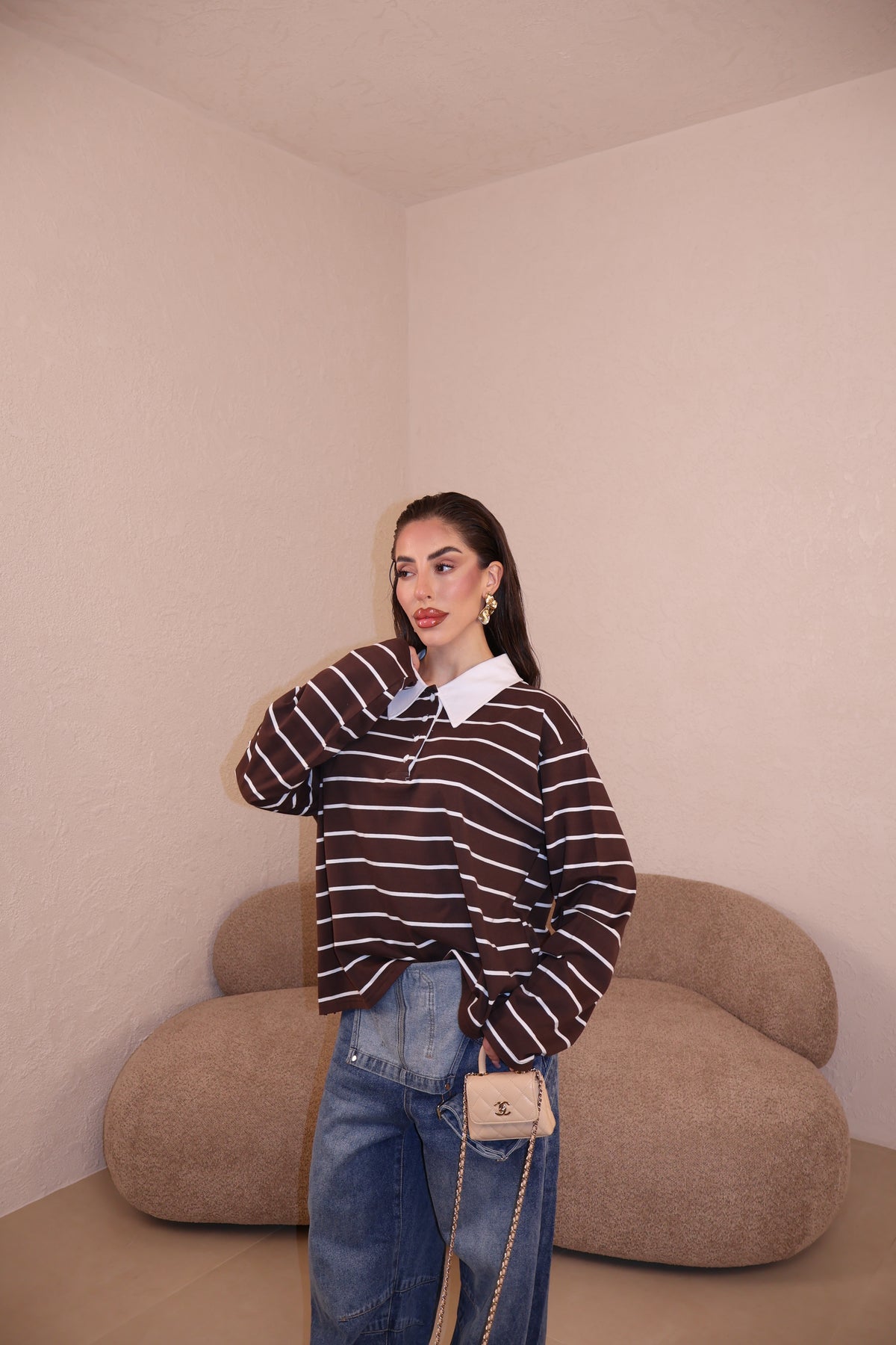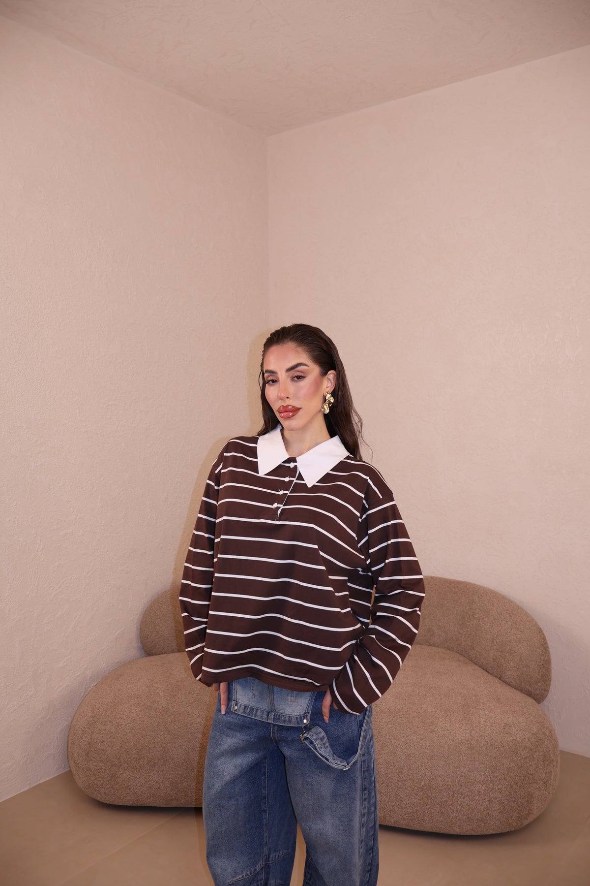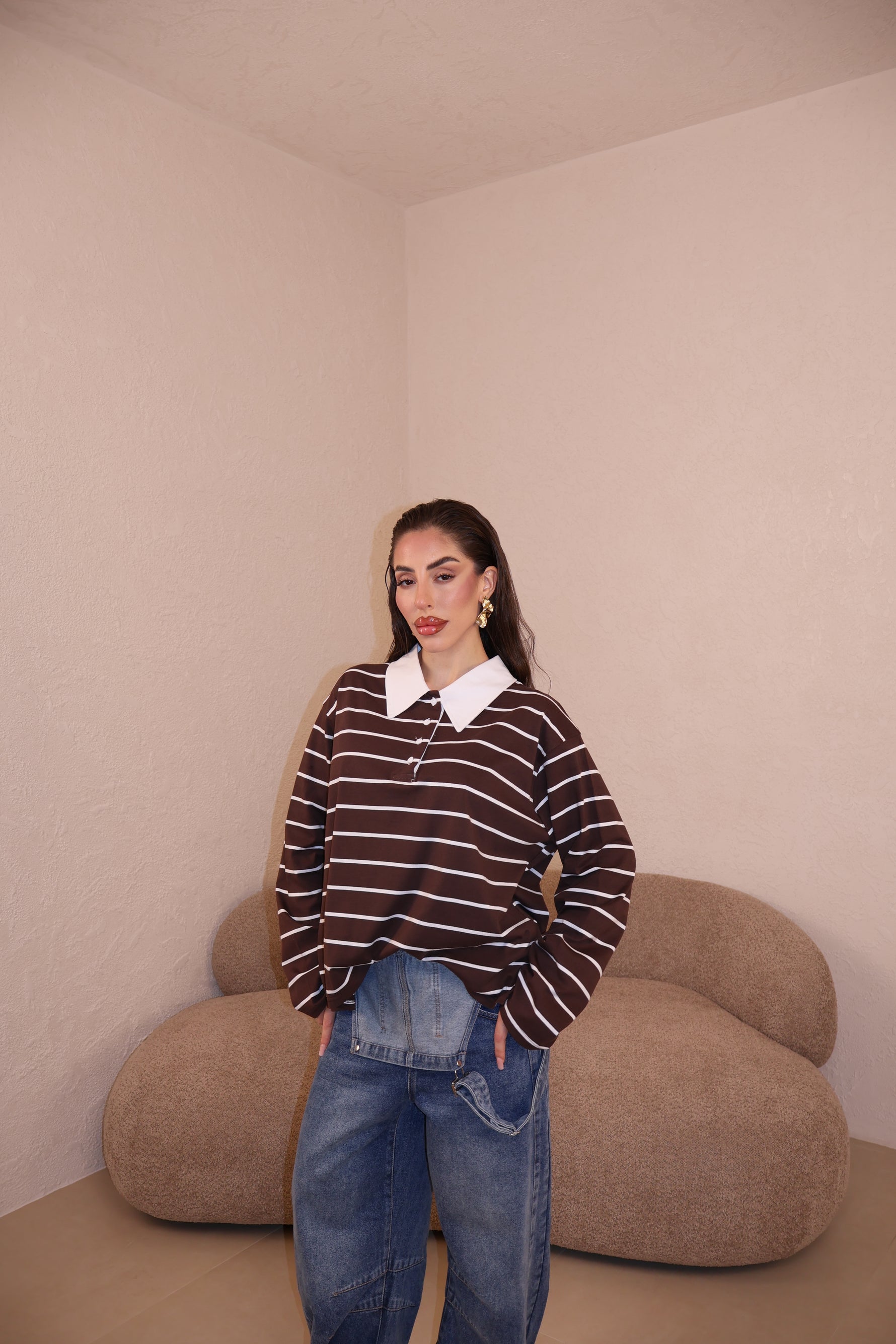 Polo a righe con bottoncini e colletto. Taglia unica.