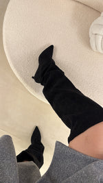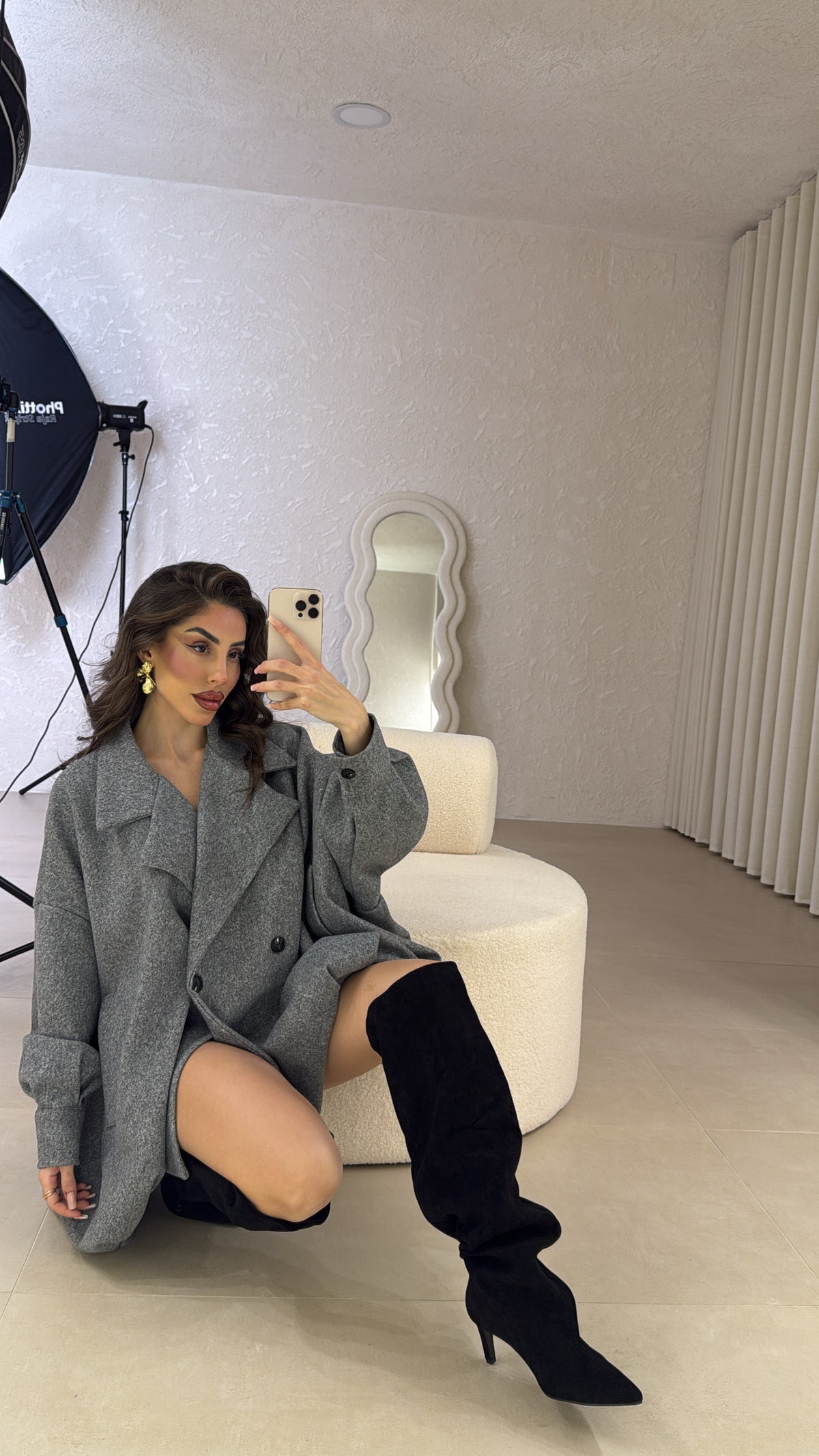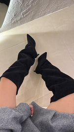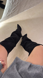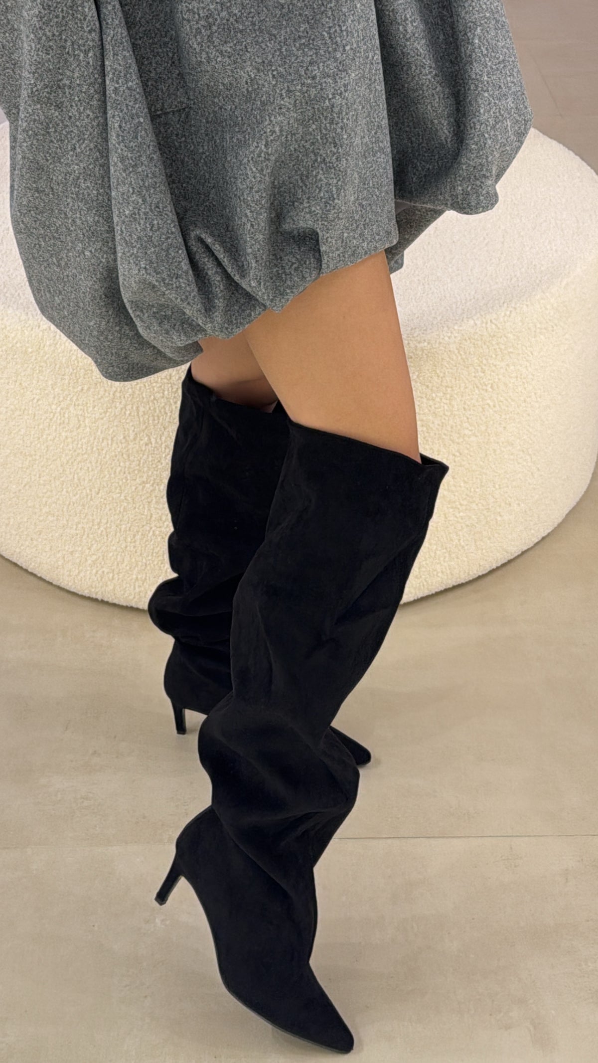 Stivale in ecocamoscio con gambale alto e morbido. Calzata facile e regolare. Modello a punta.