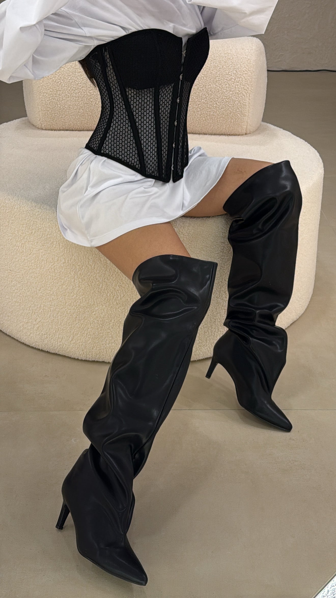 Prezzo unitario / perStivale in ecopelle con gambale alto e morbido. Calzata facile e regolare. Modello a punta.
