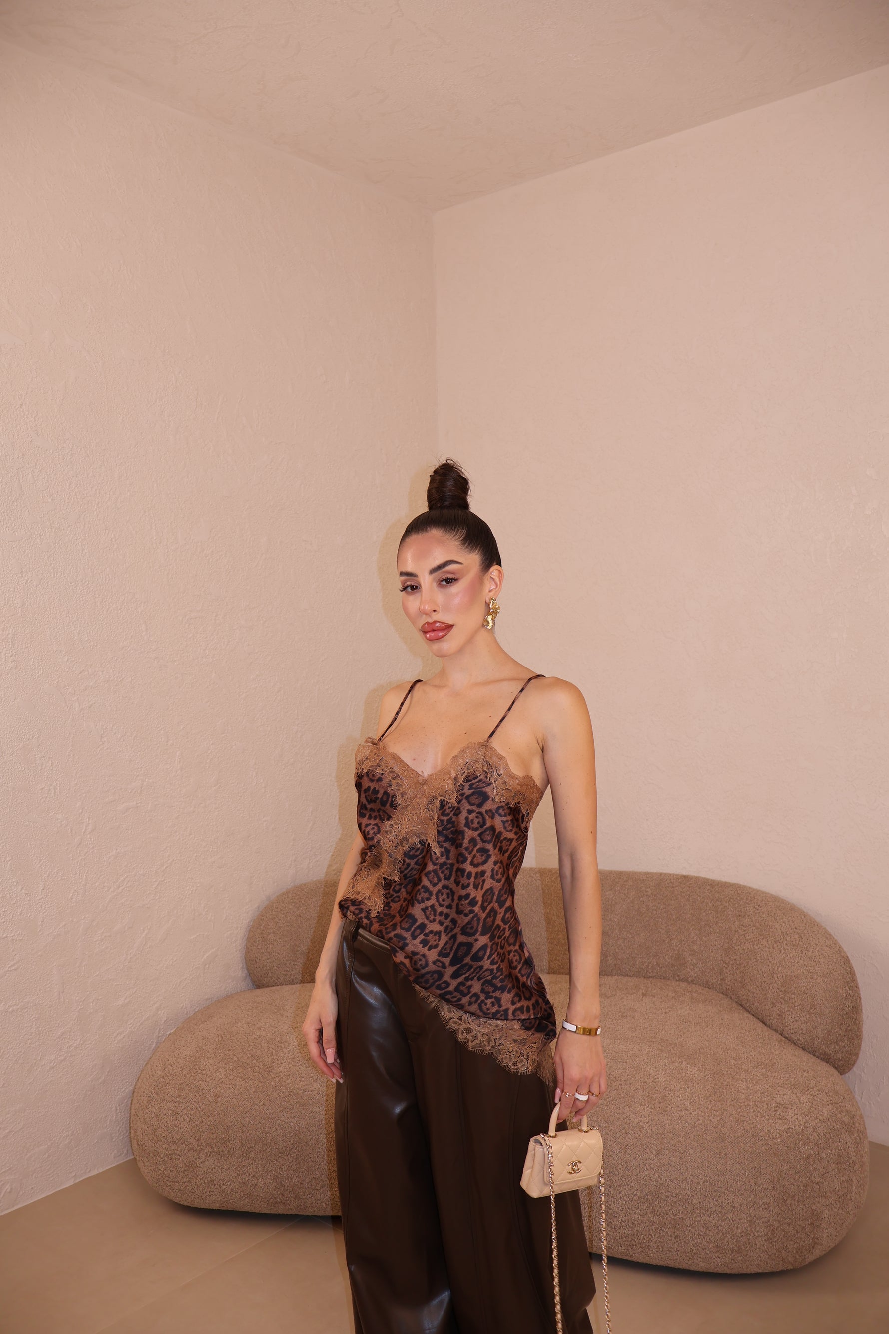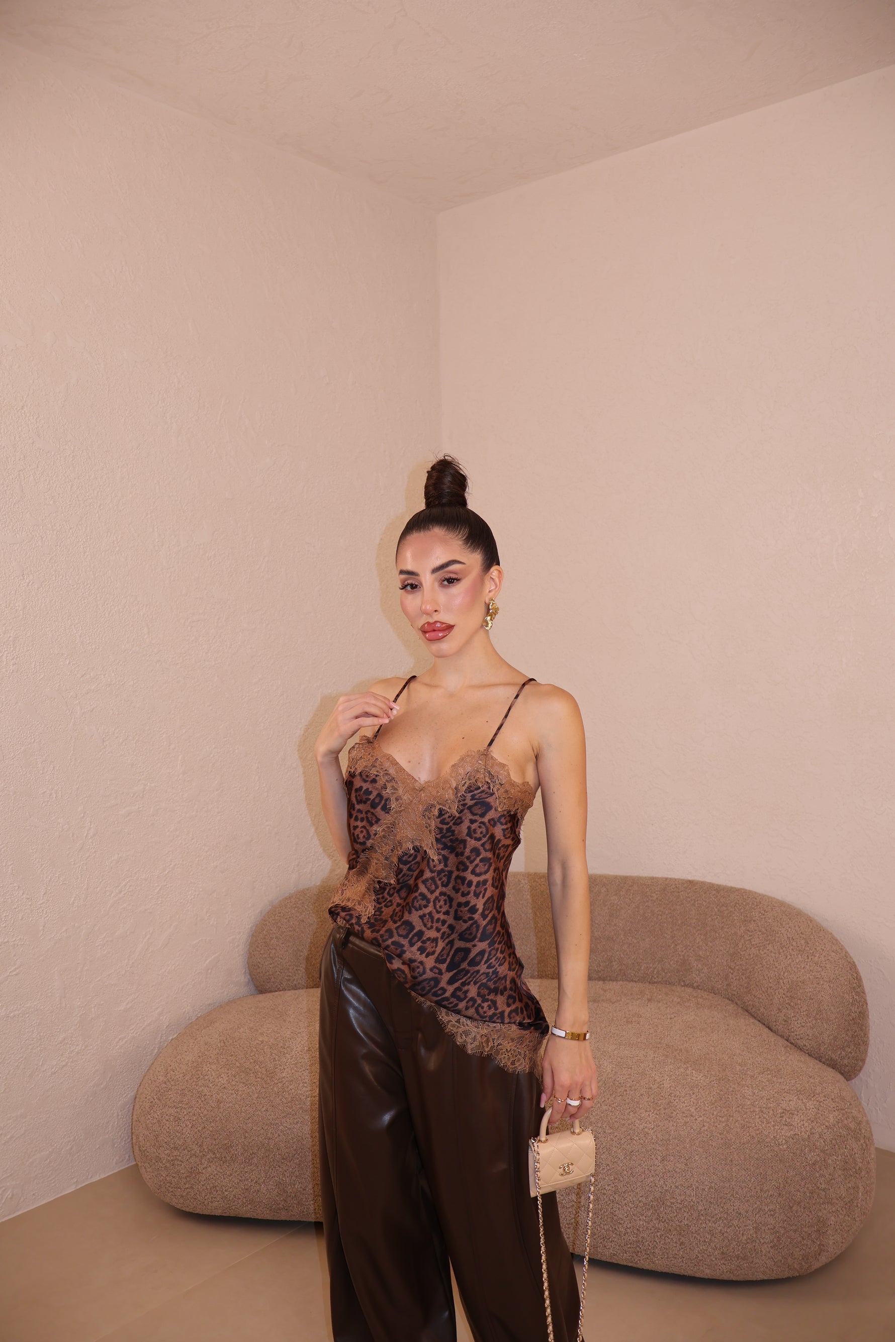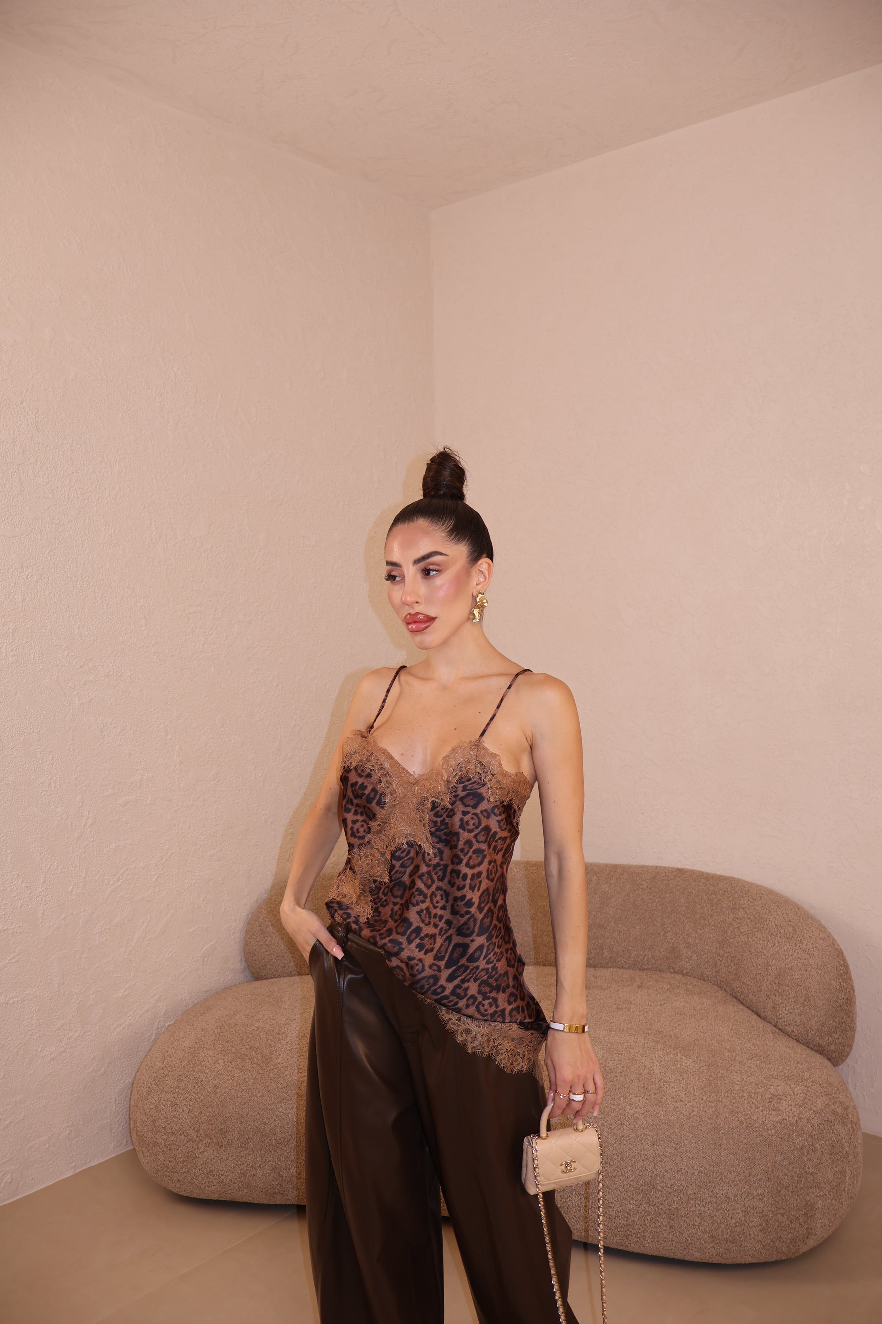 Canotta in raso con dettagli in pizzo. La modella indossa taglia S/M.