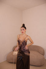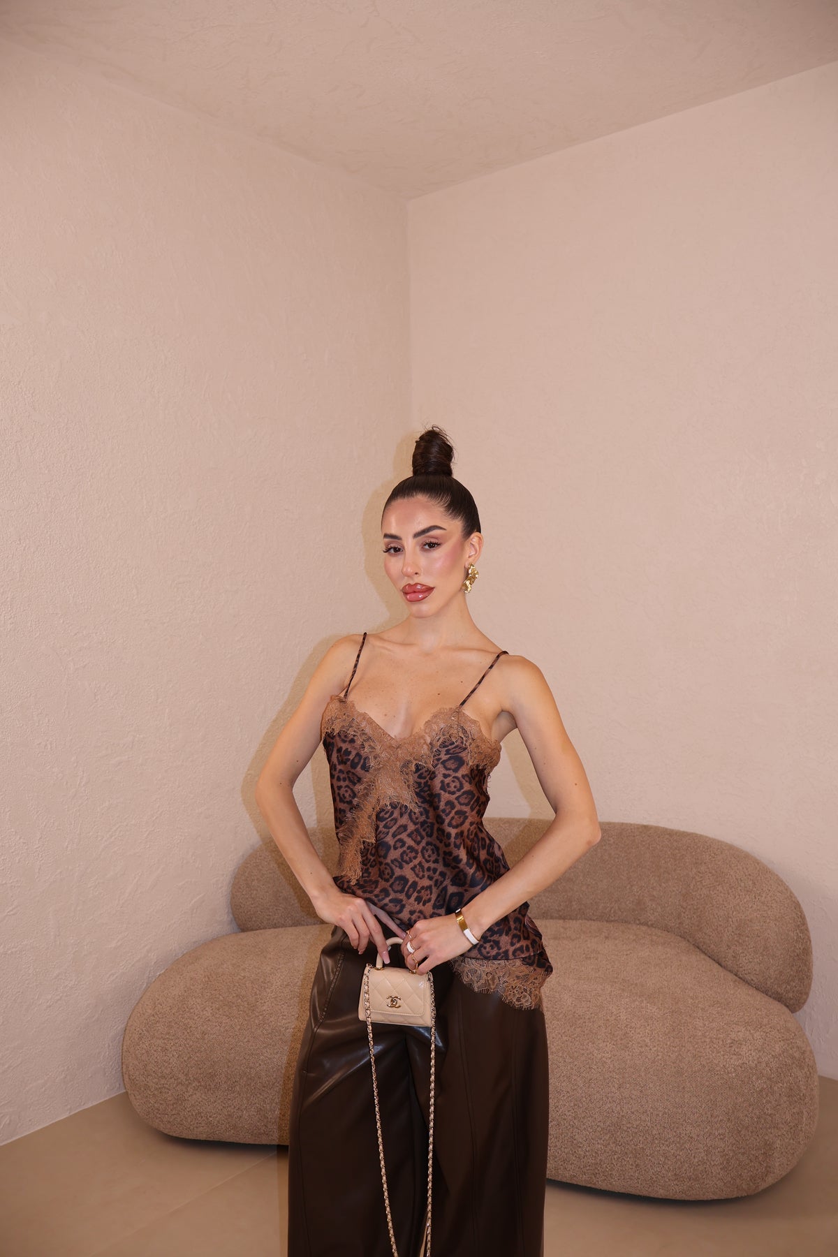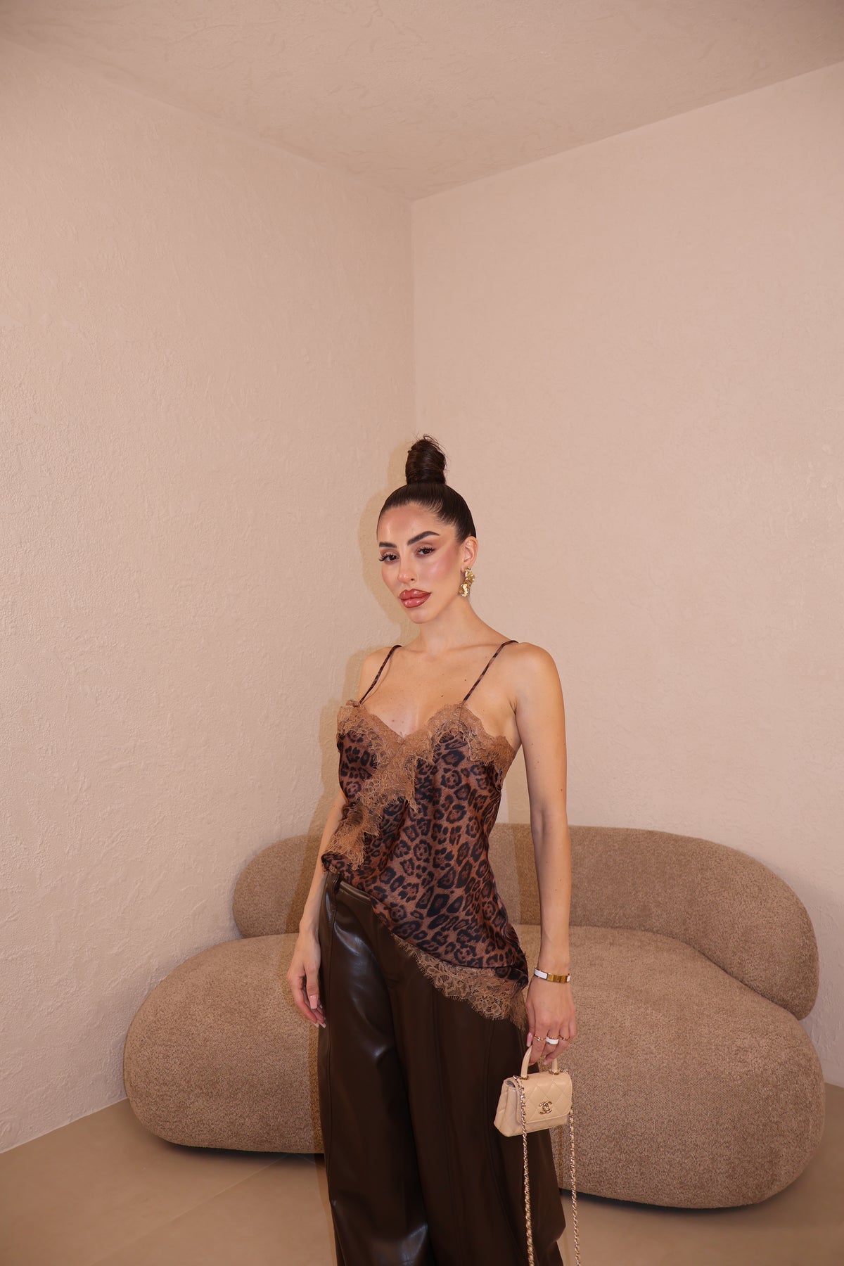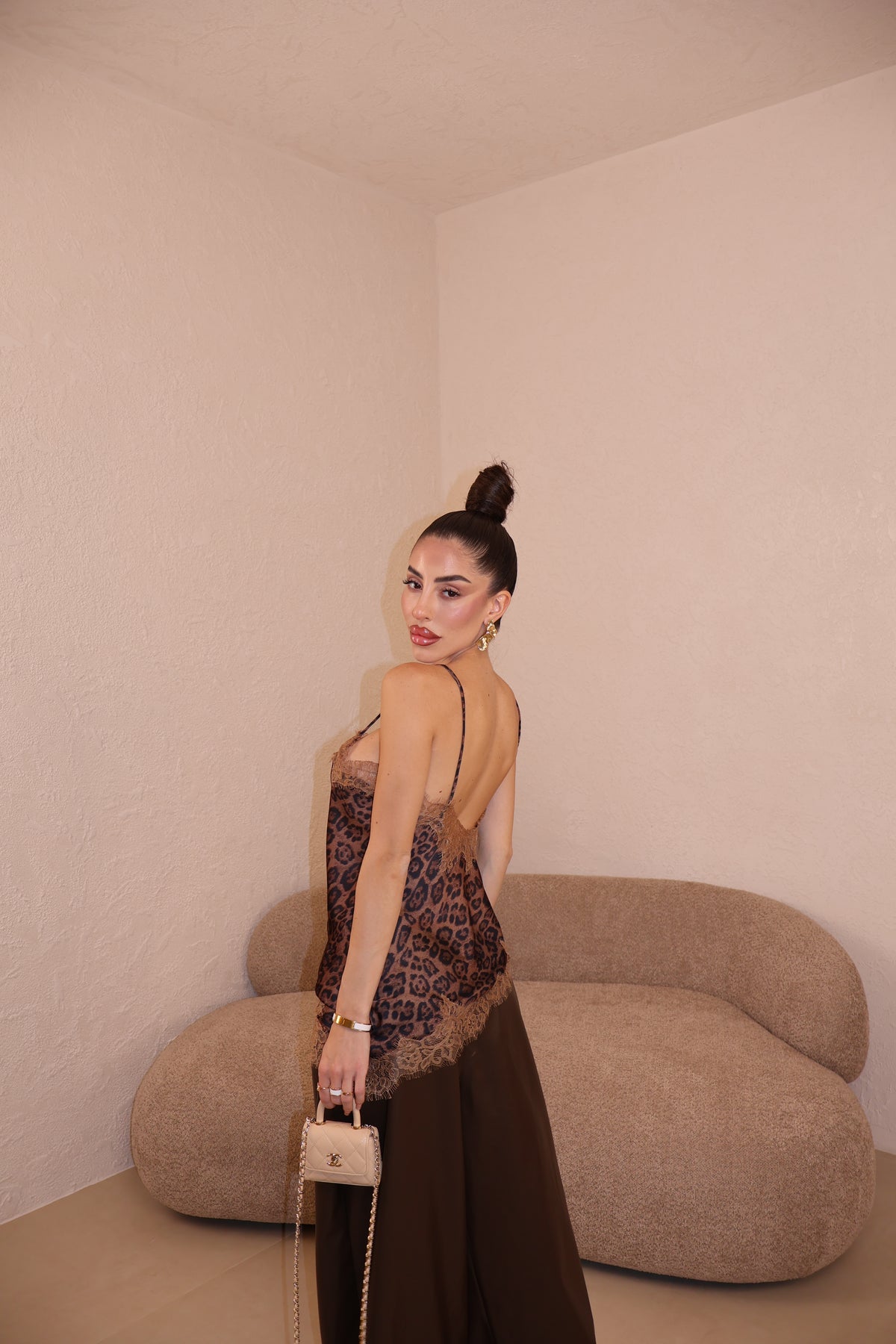 Canotta in raso con dettagli in pizzo. La modella indossa taglia S/M.