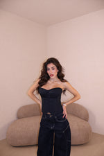 Prezzo unitario / perCorsetto gessato con cerniera laterale e laccetti regolabili sul retro. La modella indossa taglia S.