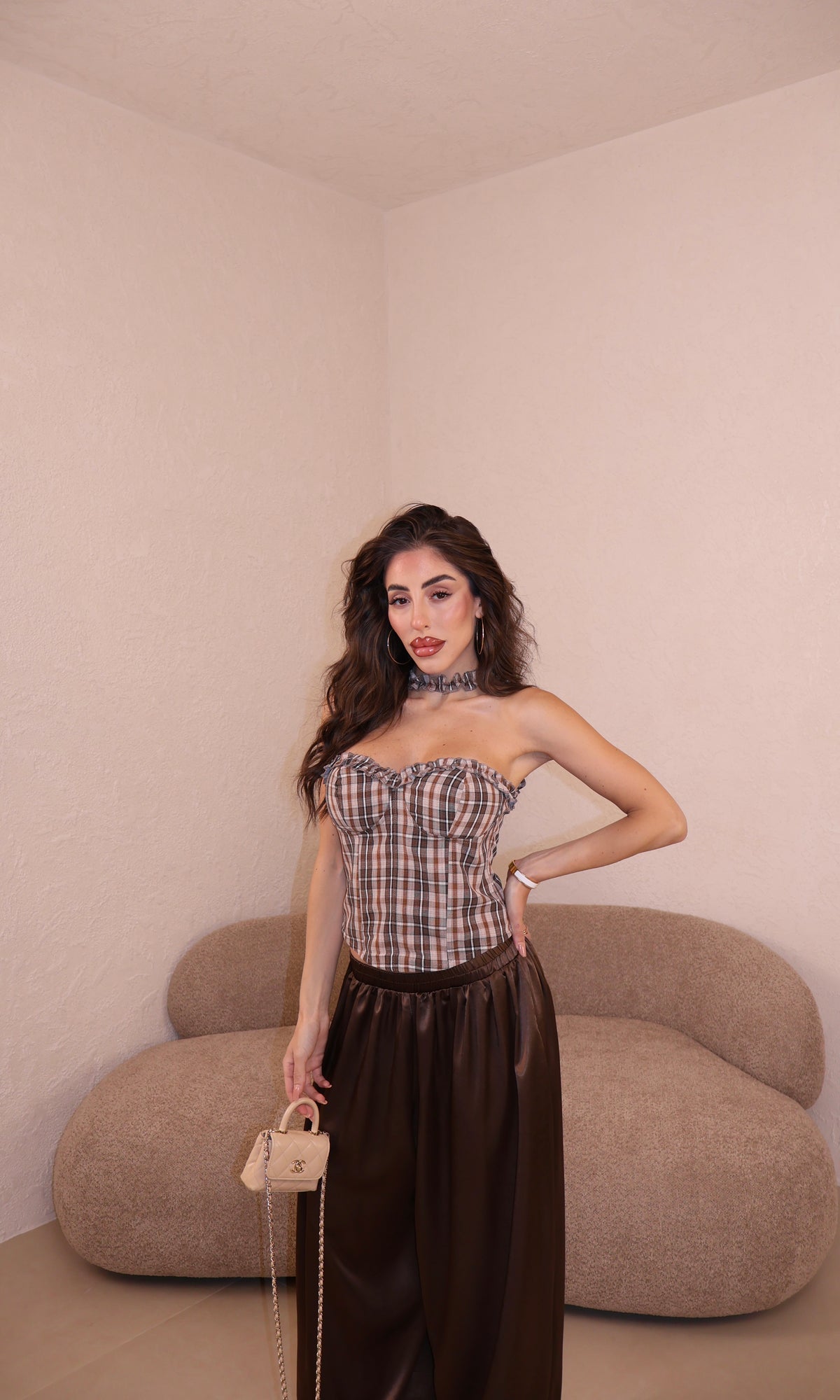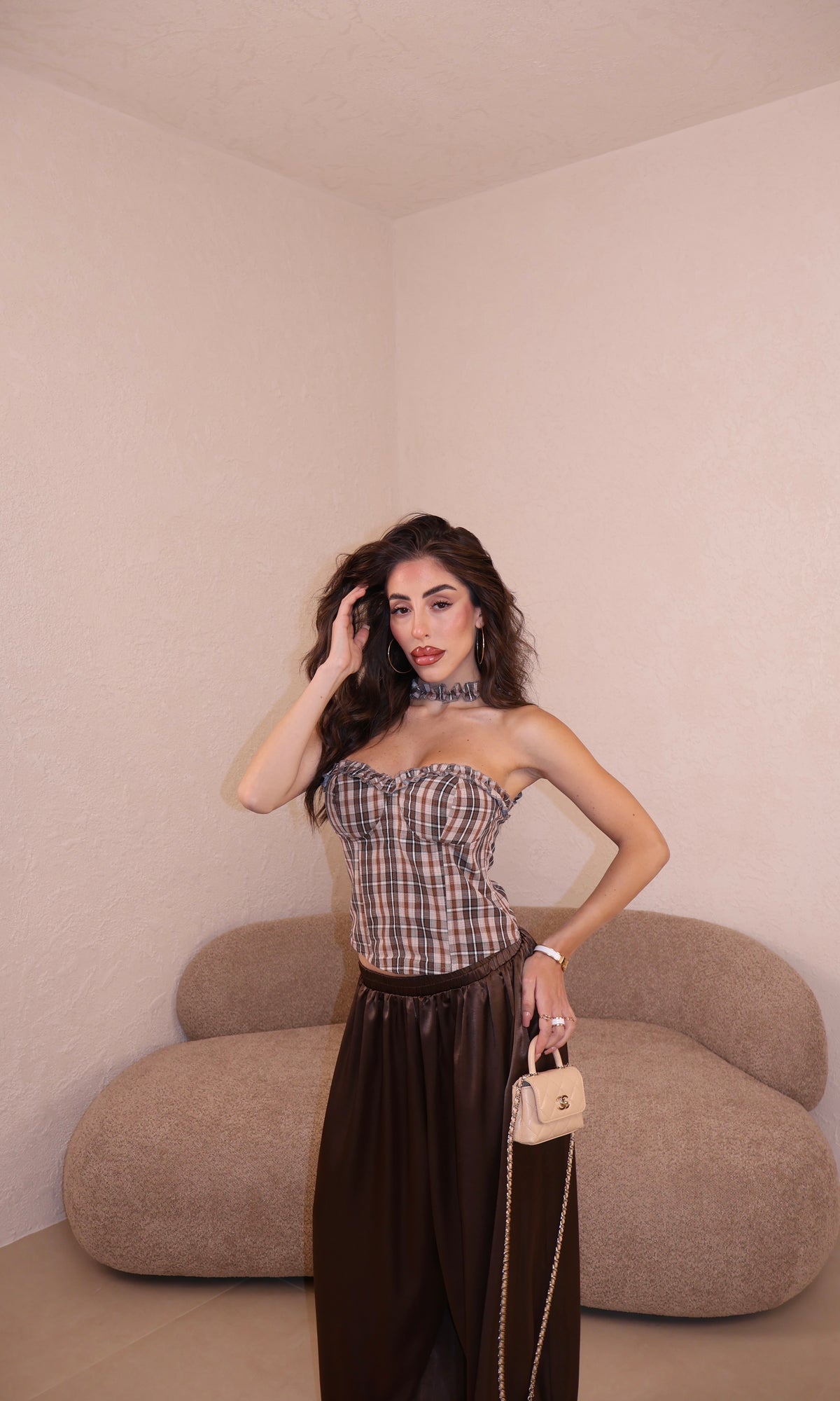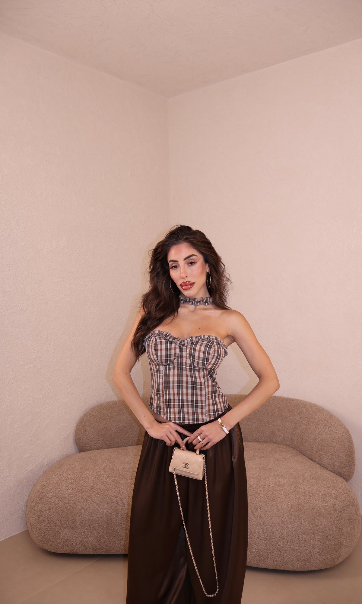 Corsetto nella fantasia a quadretti con collarino. La modella indossa taglia S/M.