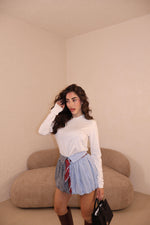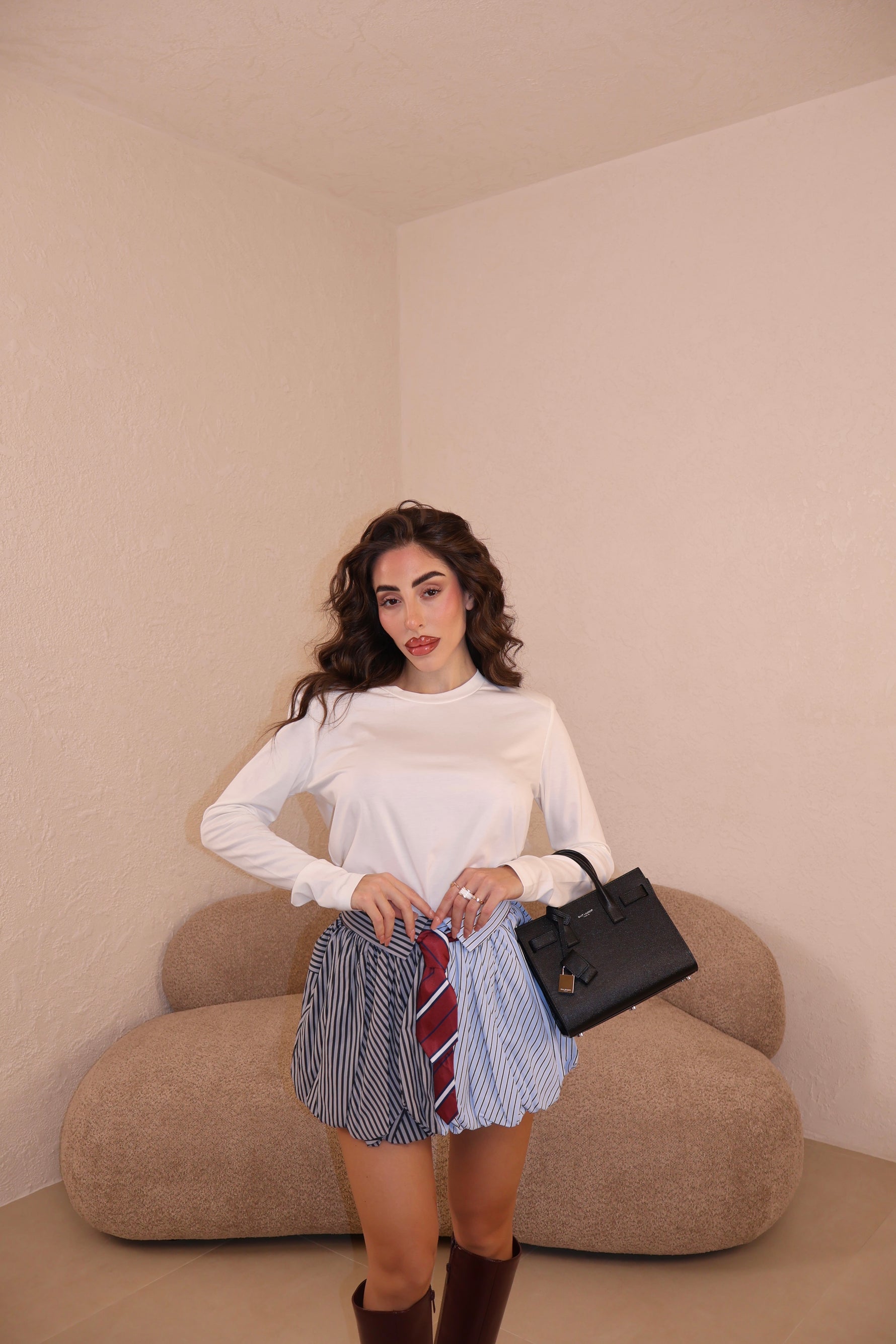 Maglia in cotone con spalline imbottite. La modella indossa taglia S/M.