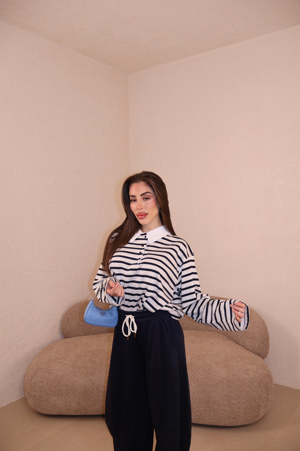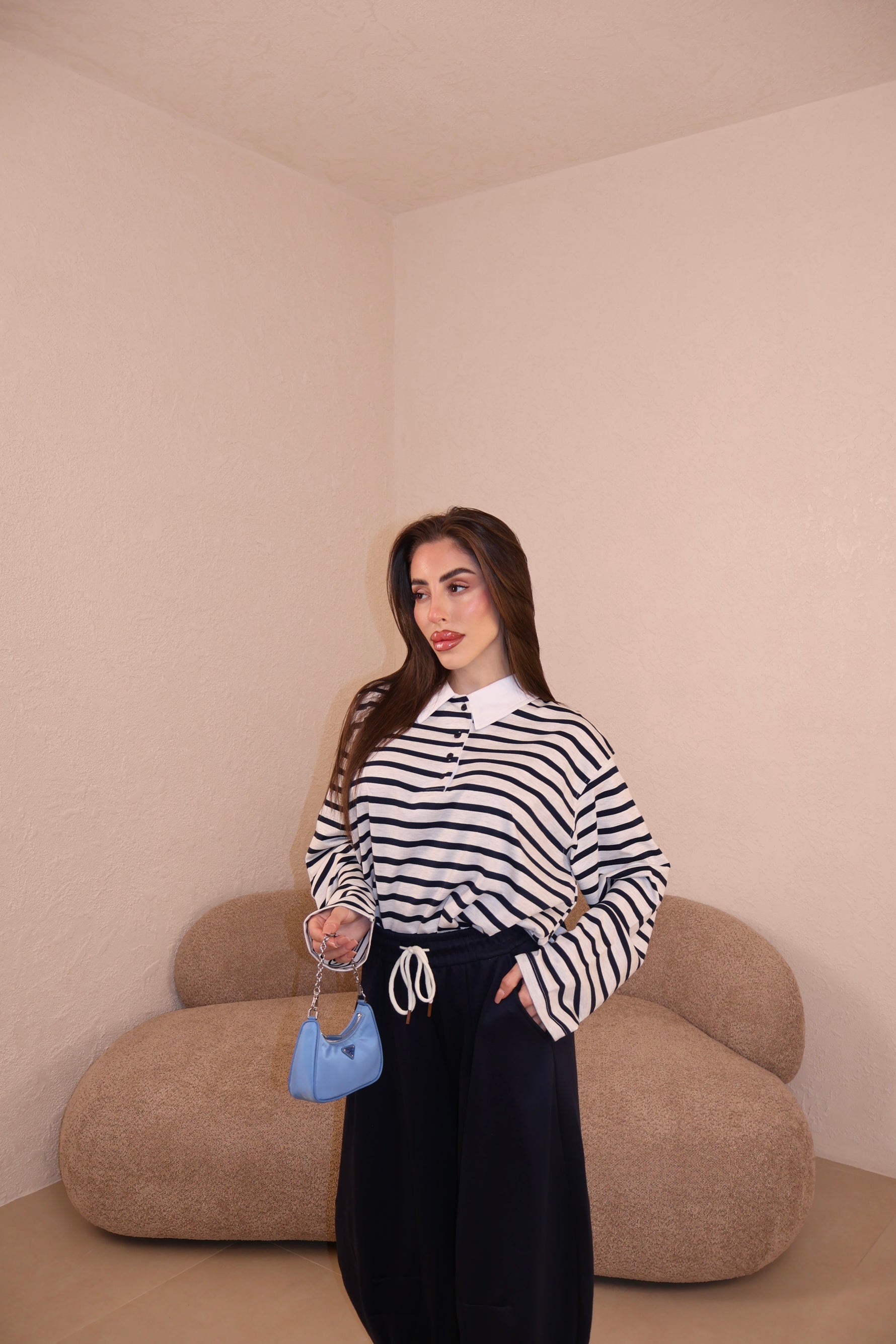 Il pantalone a palazzo ha passanti, l’elastico e piccoli spacchi lateralmente. Veste morbido/ leggermente largo. Con i tacchi è pazzesco. Grazie di tutto.❤️