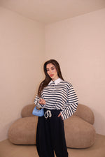 Polo a righe con bottoncini e colletto. Taglia unica.
