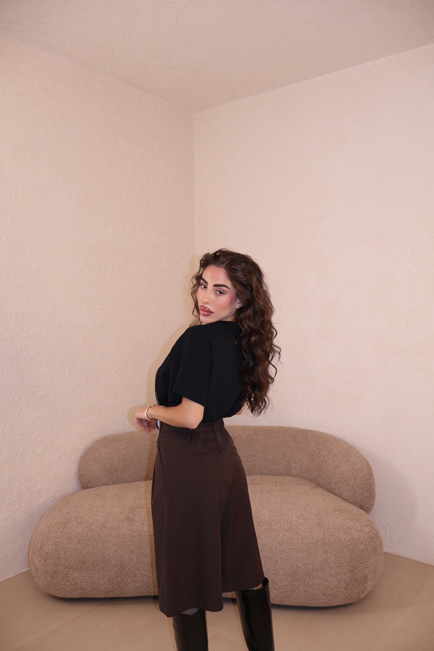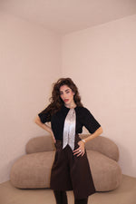 Il pantalone a palazzo ha passanti, l’elastico e piccoli spacchi lateralmente. Veste morbido/ leggermente largo. Con i tacchi è pazzesco. Grazie di tutto.❤️